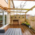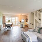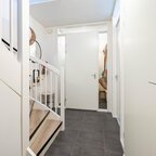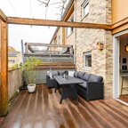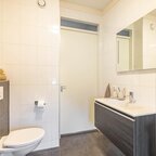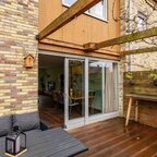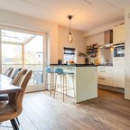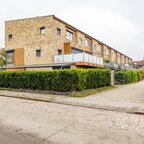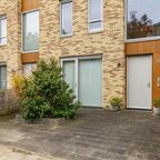 Modern vormgegeven, duurzaam met energielabel A en met een robuuste uitstraling: zo kunnen we deze eengezinswoning uit 2011 het beste omschrijven. Het huis biedt volop leefruimte, verdeeld over drie woonlagen, waarbij er een slaapkamer is op de begane grond en de woonkamer zich op de eerste verdieping bevindt. Met een voortuin en dakterras ontbreekt het niet aan buitenruimte. De inpandige garage geeft optimale bergruimte en er is altijd plek voor de auto op eigen terrein. Achter de huizen ligt een gezamenlijk binnenterrein met speelveld, voorzien van speeltoestellen voor kinderen en extra parkeerplaatsen.Het Noorderplantsoen ligt op loopafstand, net als alle uitgebreide voorzieningen van winkelcentrum Paddepoel, dat de komende jaren volledig gemoderniseerd zal worden. Ook Zernike is in no time bereikbaar en niet te vergeten het stadscentrum.Indeling: entree/hal met trapopgang en modern toilet. De slaapkamer aan de voorzijde is ca. 11 m² groot en biedt rechtstreeks toegang tot de voortuin. De bijkeuken met handige opstelling voor wasmachine, droger en de cv-ketel is ca. 5 m², en hiervandaan heb je toegang tot de achterzijde met oprit en carport, waar twee auto's geplaatst kunnen worden. De garage is ca. 18 m² groot en heeft een roldeur.Eerste verdieping: meteen kom je de royale woonruimte binnen van ca. 49 m²: een riante living met open keuken. De houten vloer doet warm aan en is sfeerbepalend voor deze ruimte. Er zijn grote raampartijen aan zowel de voor- als de achterzijde, wat het ruimtelijke gevoel versterkt. De keuken in U-vormige opstelling heeft een werkeiland waaraan je plaats kunt nemen. Het geheel heeft een neutrale uitstraling en is voorzien van een 5-pits gaskookplaat met afzuigkap, koelkast, combi-oven en vaatwasser, afgewerkt met een composiet werkblad dat goed past bij de stijl. Aan de achterzijde, bij de eethoek, is er een schuifpui naar het dakterras. Een fijne buitenruimte van ca. 18 m², gelegen op het westen, dus in de middag en avond een prettig plekje om van de zon te genieten. Vooral in combinatie met de pergola met overhangende druiven waan je je direct in mediterrane sferen.Tweede verdieping: overloop met aansluitend toegang tot de drie slaapkamers van ca. 5,5 m², 15 m² en 15 m². Verder is op deze woonlaag de badkamer te vinden, met daarin een douchecabine, tweede hangtoilet en wastafelmeubel met spiegelkastjes.* modern, energiezuinig en compleet