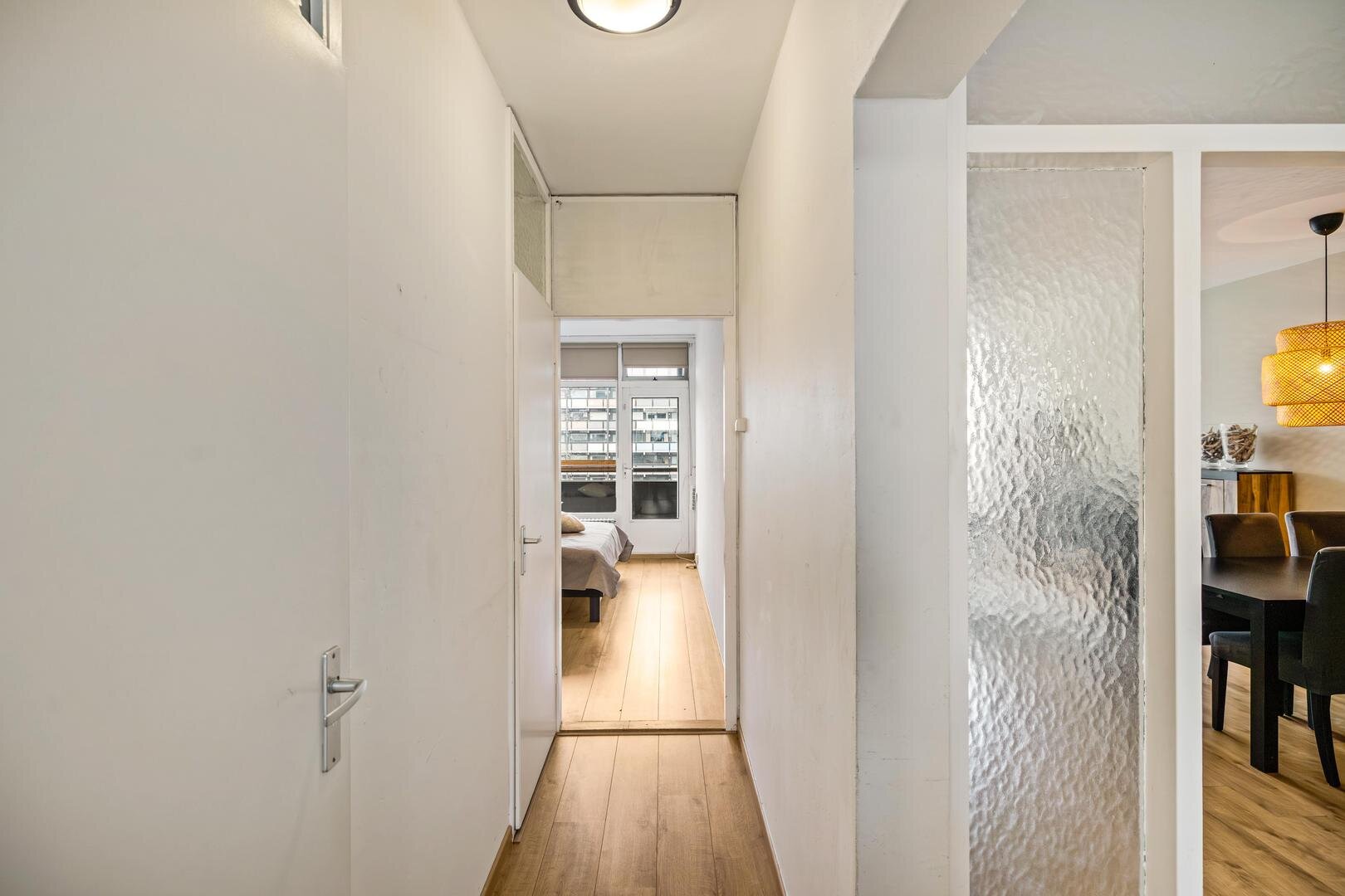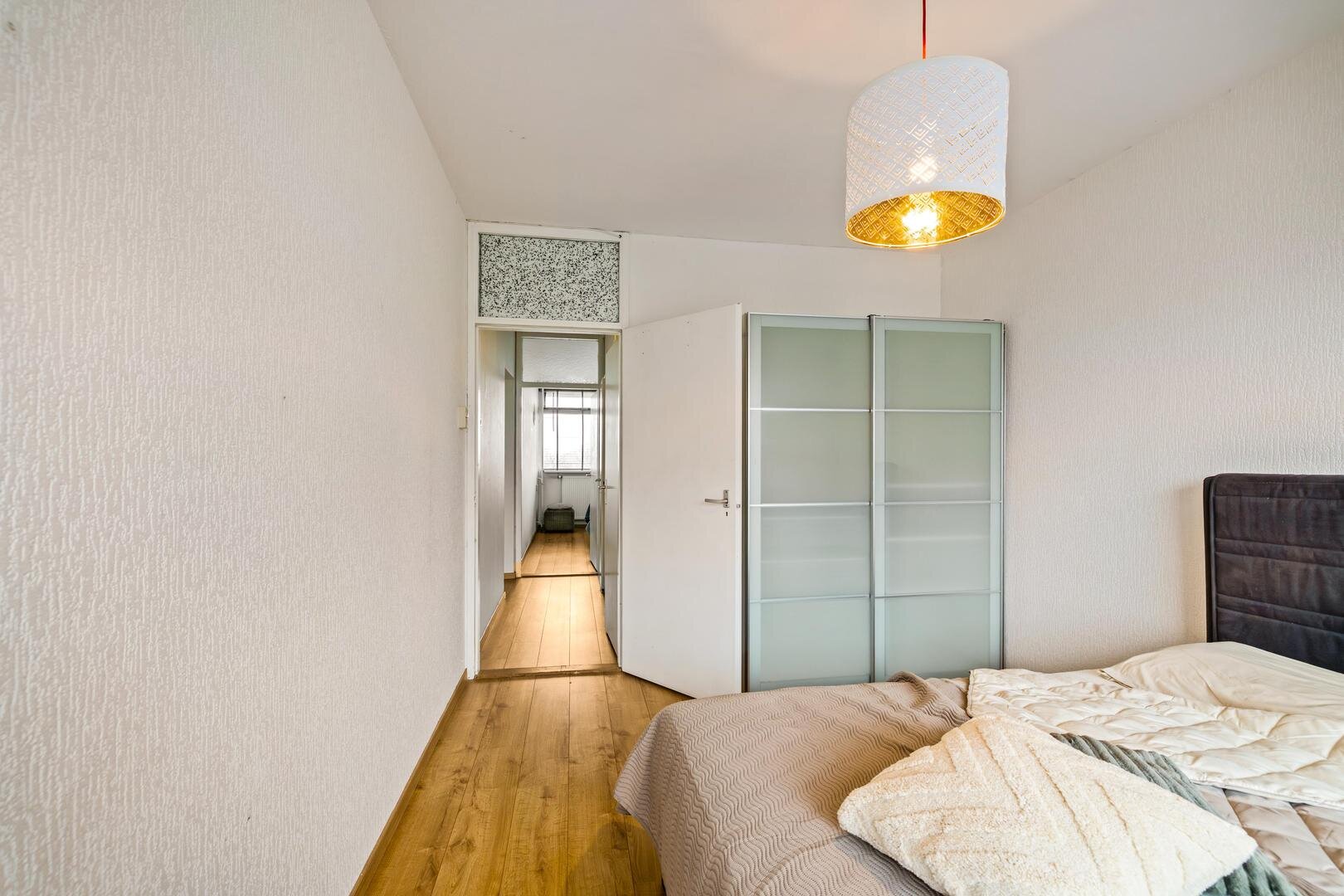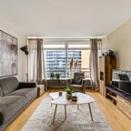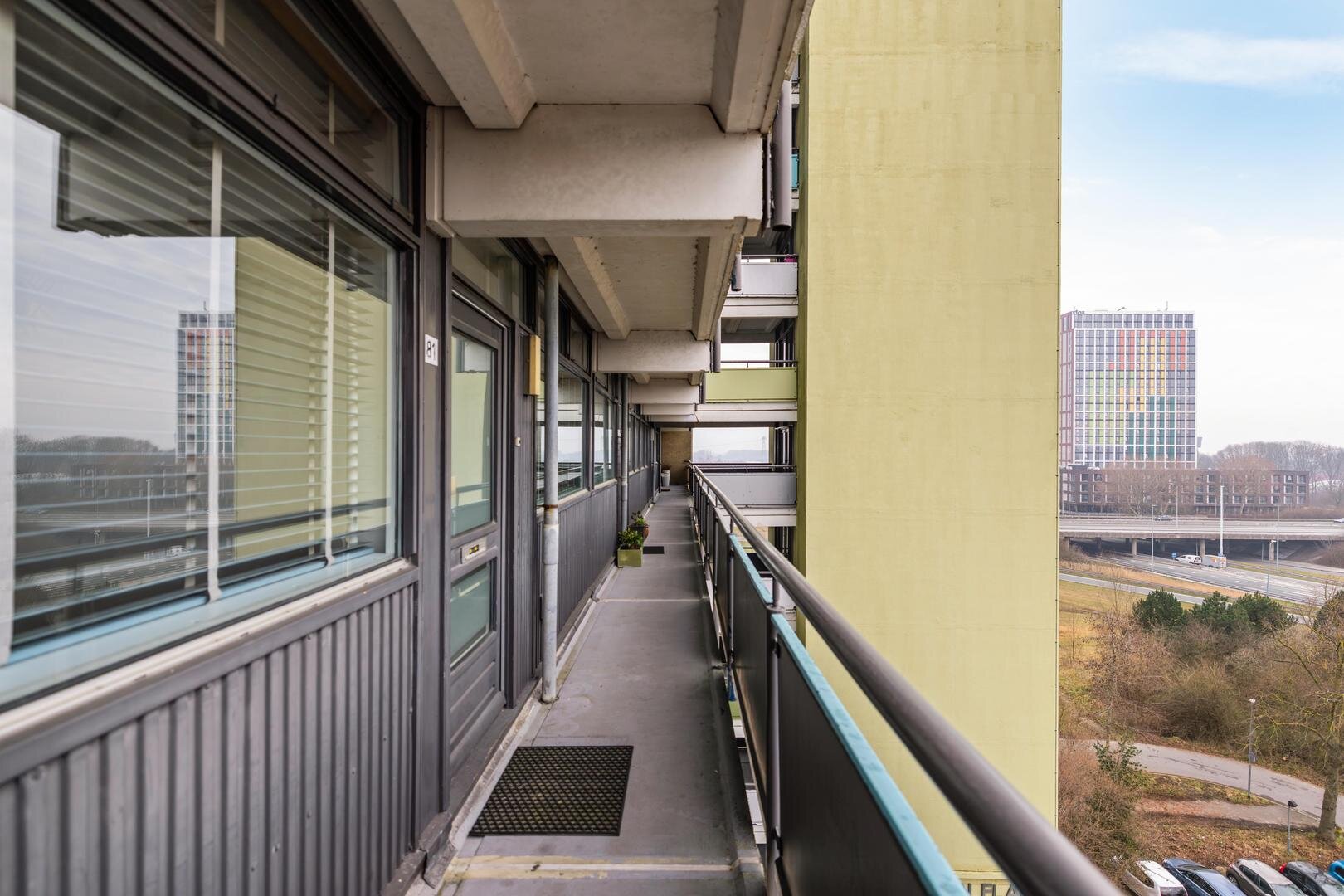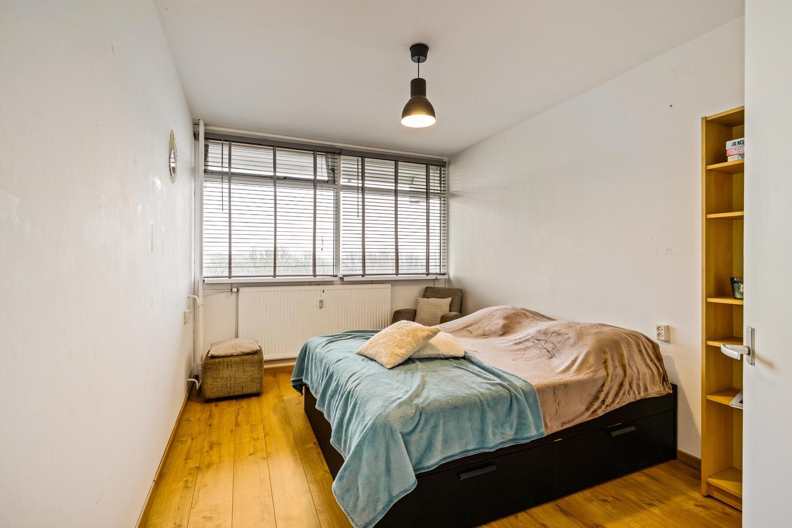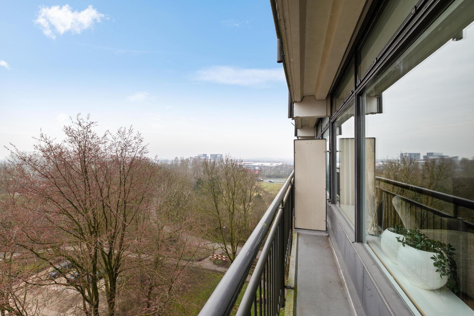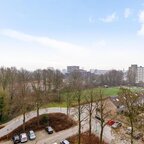 Centrale hal met intercom, brievenbussen, trappenhuis en twee liften.zevende verdieping : Entree met vaste kast en meterkast. Vanuit hier kom je in de hal met toegang tot de berging van 3m² en toegang tot de dichte ruime keuken van 8,5m² voorzien van een keukenblok, wasmachine, droger, vaatwasser gasfornuis met oven en een koelvriescombinatie wat allemaal achter blijft! Vanuit de ruime lichte woonkamer van ca. 26 m² heb je een heerlijk vrij uitzicht over de wijk. De woonkamer beschikt ook over grote raampartijen wat bijdraagt aan het ruimtelijke gevoel. Vanuit de hal zijn ook het toilet met fonteintje en de moderne badkamer met douche en wastafel bereikbaar.Tot slot telt de woning 2 ruime slaapkamers van ca. 13 m² met aan de achterzijde toegang tot het balkon gelegen op het westen.* Heerlijk wonen met vrij uitzicht