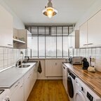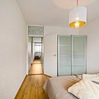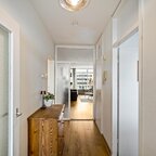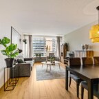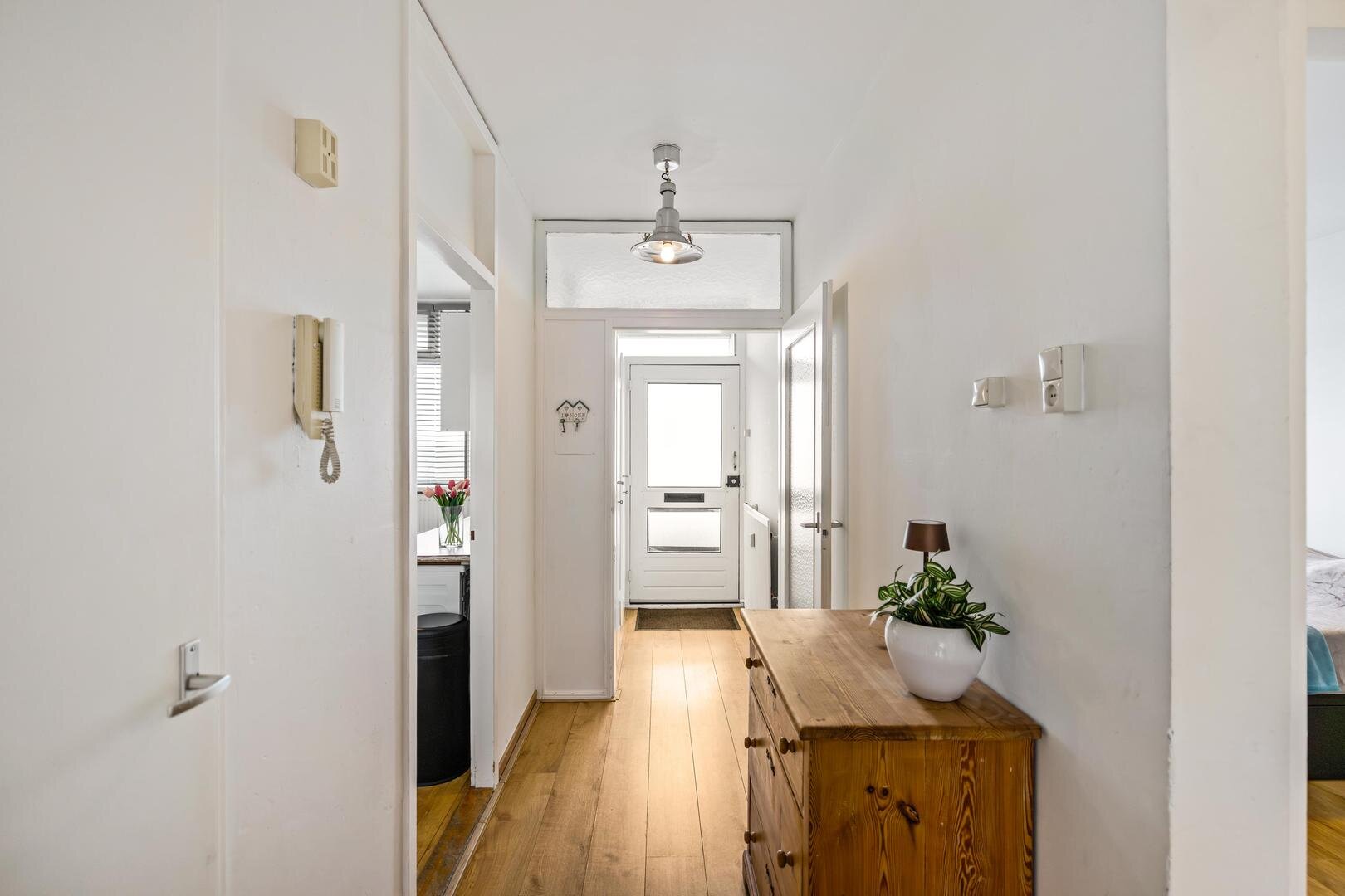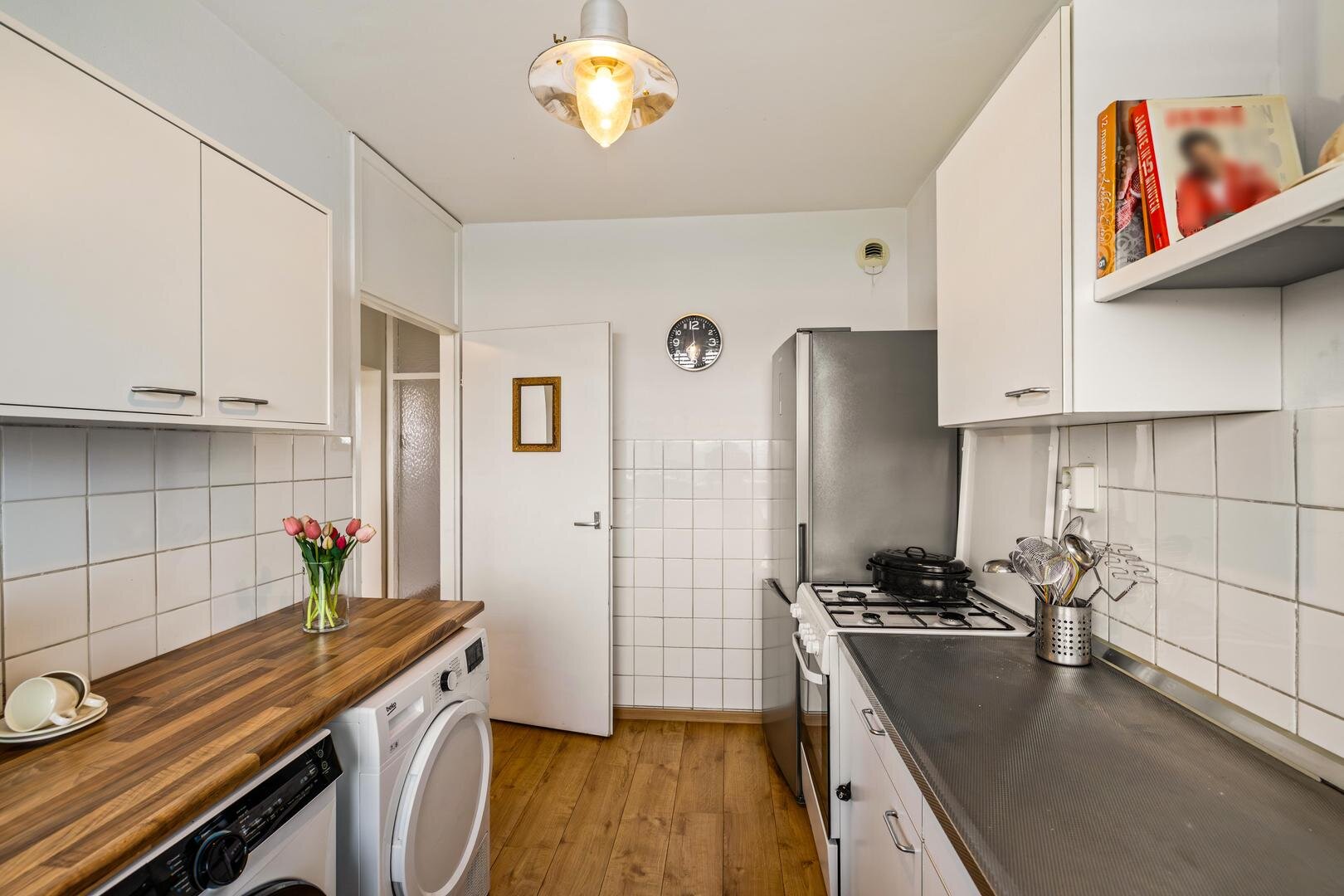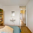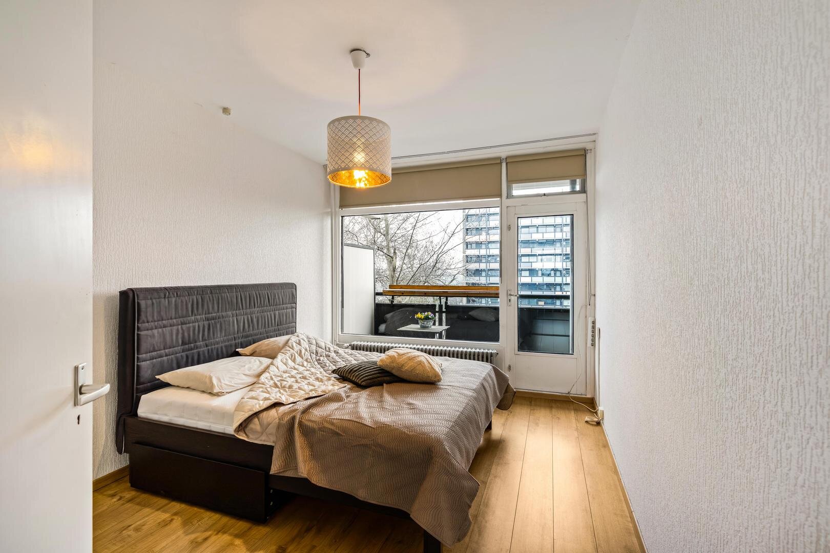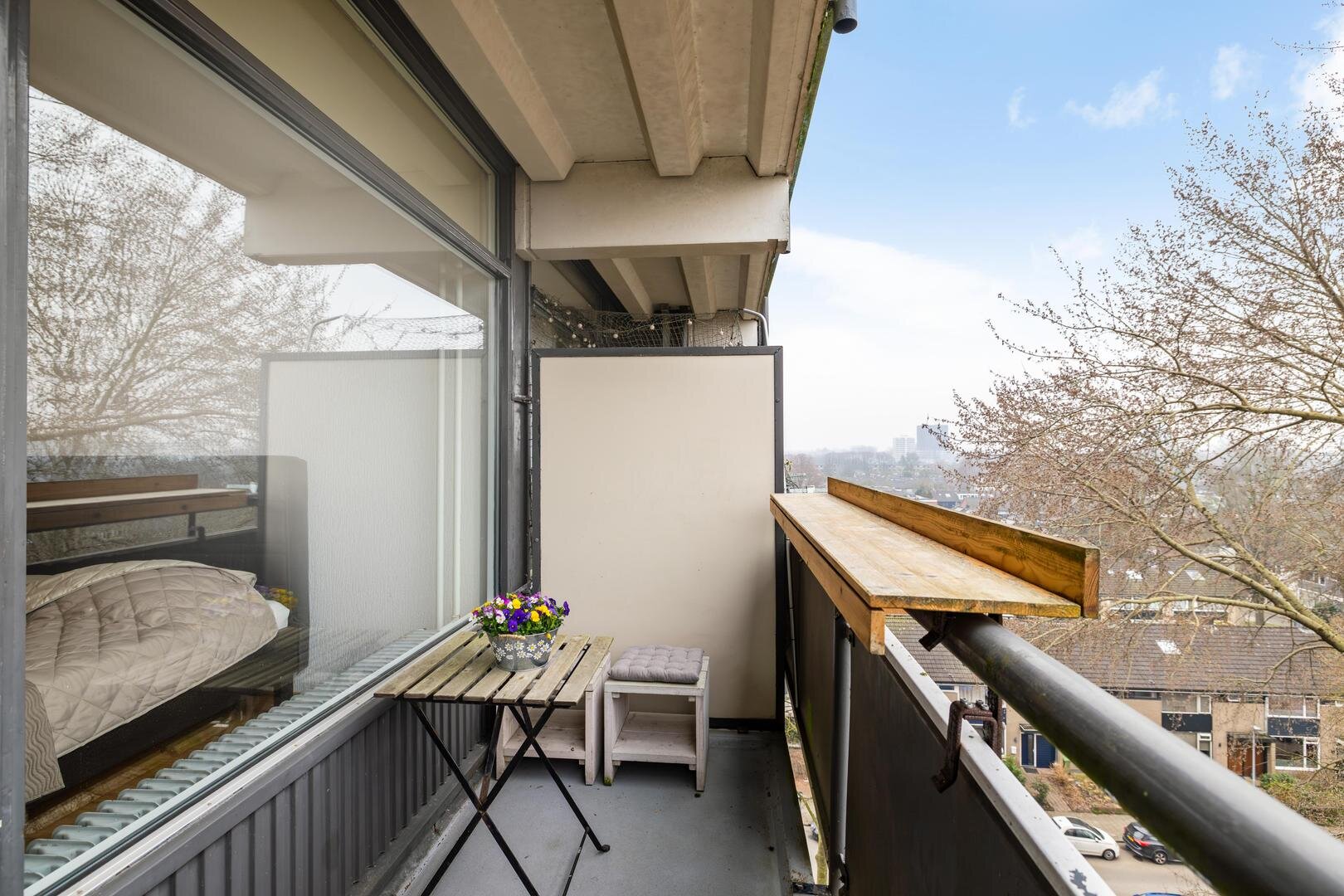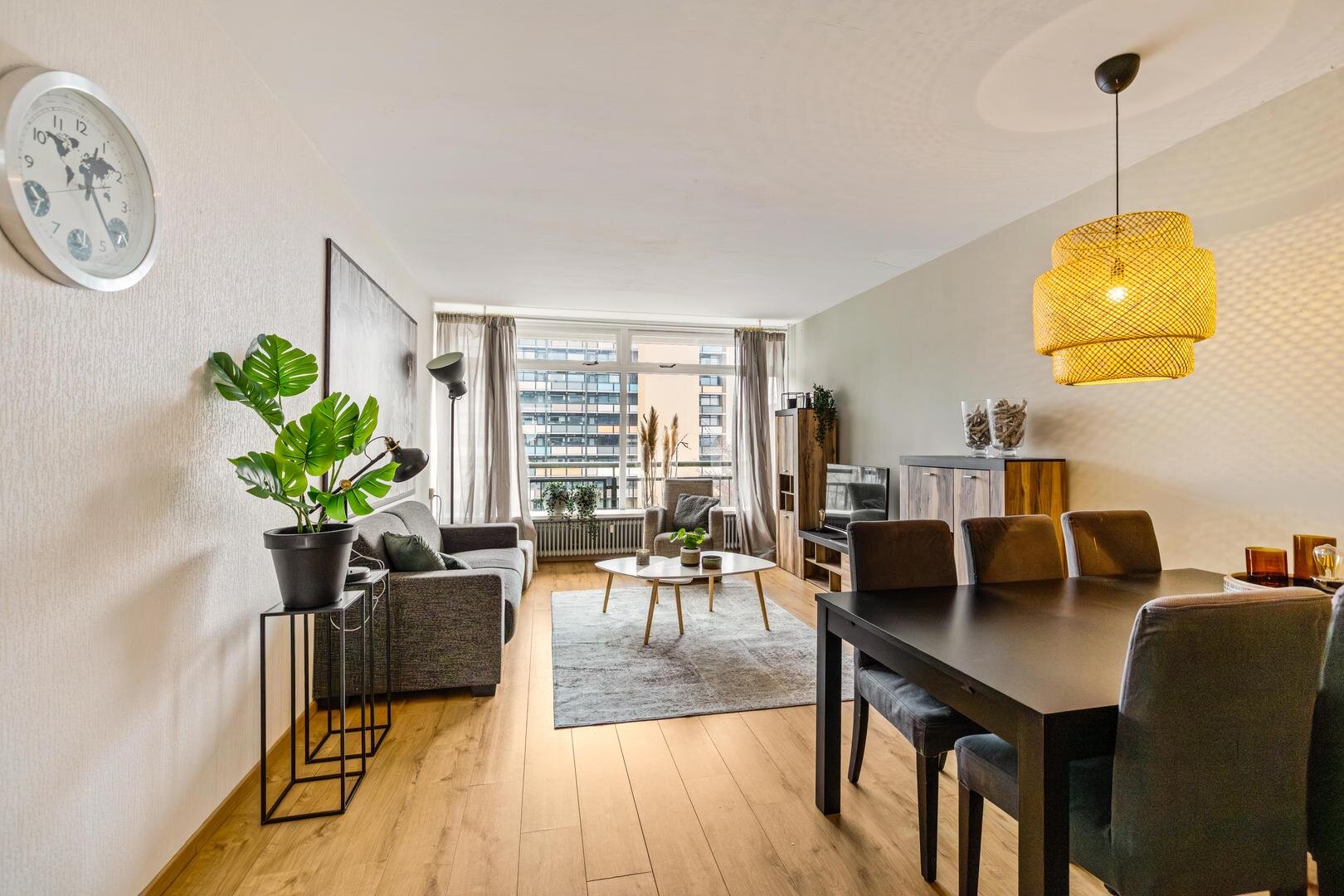 Centrale hal met intercom, brievenbussen, trappenhuis en twee liften.zevende verdieping : Entree met vaste kast en meterkast. Vanuit hier kom je in de hal met toegang tot de berging van 3m² en toegang tot de dichte ruime keuken van 8,5m² voorzien van een keukenblok, wasmachine, droger, vaatwasser gasfornuis met oven en een koelvriescombinatie wat allemaal achter blijft! Vanuit de ruime lichte woonkamer van ca. 26 m² heb je een heerlijk vrij uitzicht over de wijk. De woonkamer beschikt ook over grote raampartijen wat bijdraagt aan het ruimtelijke gevoel. Vanuit de hal zijn ook het toilet met fonteintje en de moderne badkamer met douche en wastafel bereikbaar.Tot slot telt de woning 2 ruime slaapkamers van ca. 13 m² met aan de achterzijde toegang tot het balkon gelegen op het westen.* Heerlijk wonen met vrij uitzicht
