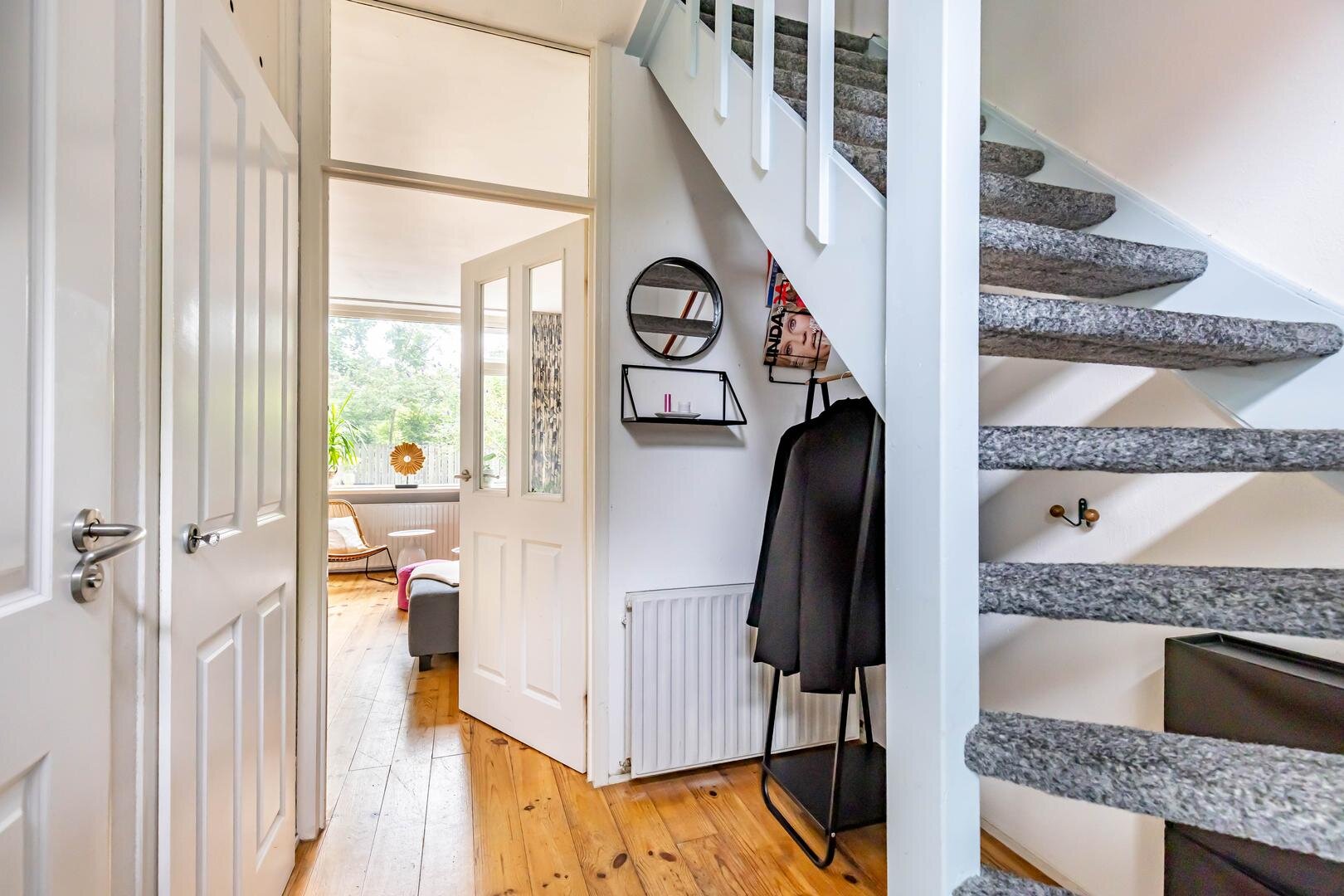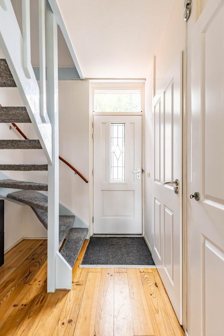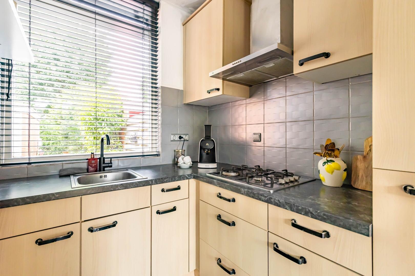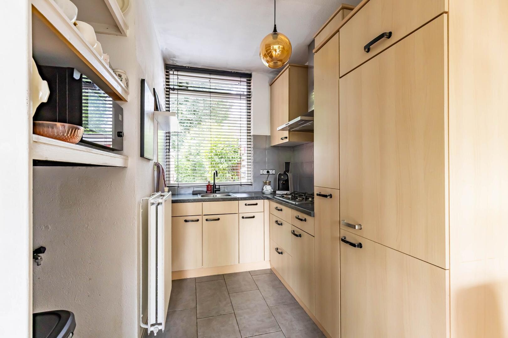 Begane grond: entree/hal met meterkast, toilet, trapopgang naar boven en toegang tot de tuingerichte en lichte woonkamer van circa 21 m². De open keuken van ca. 4 m² is in een hoekvorm opgesteld en voorzien van een 4-pits kookplaat, afzuigkap, koelkast en de mogelijkheid voor een vaatwasser.Eerste verdieping: