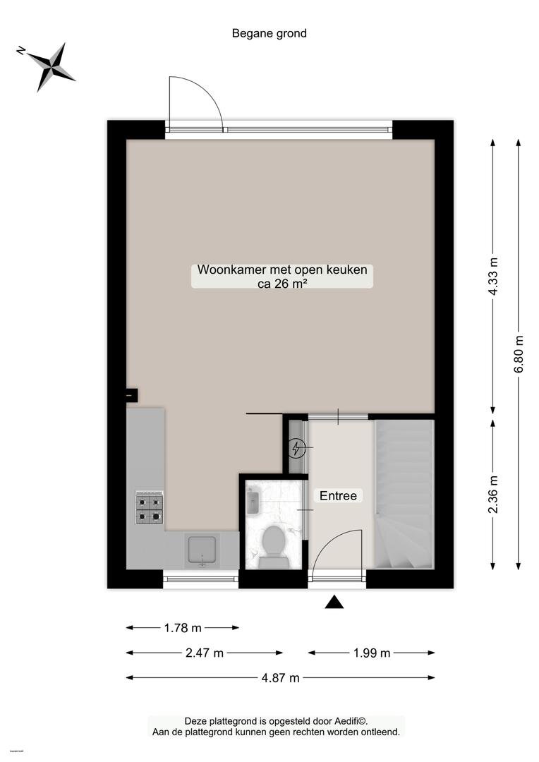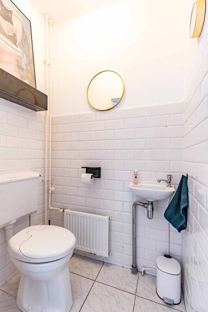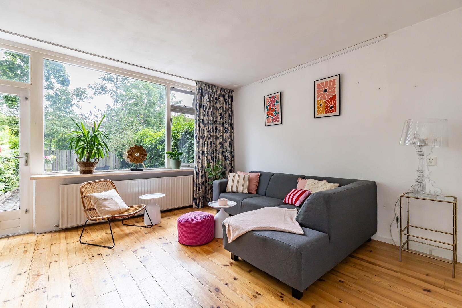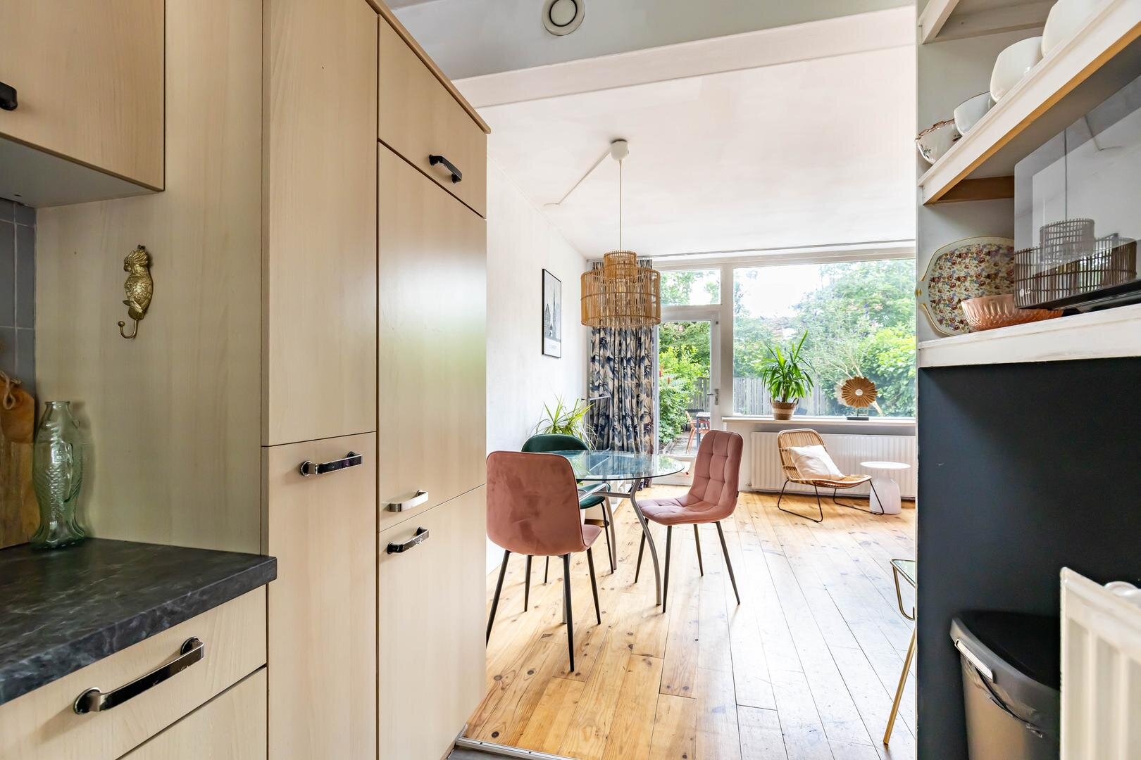 Begane grond: entree/hal met meterkast, toilet, trapopgang naar boven en toegang tot de tuingerichte en lichte woonkamer van circa 21 m². De open keuken van ca. 4 m² is in een hoekvorm opgesteld en voorzien van een 4-pits kookplaat, afzuigkap, koelkast en de mogelijkheid voor een vaatwasser.Eerste verdieping: