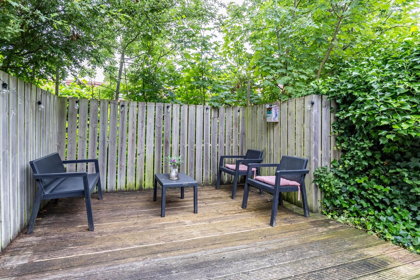 Via een vlizotrap bereik je de ruime bergzolder van circa 29 m² met de CV opstelling, perfect voor het opbergen van seizoensspullen of andere opslag.Tuin: