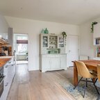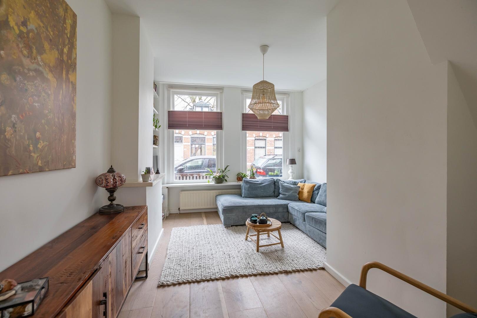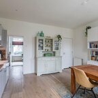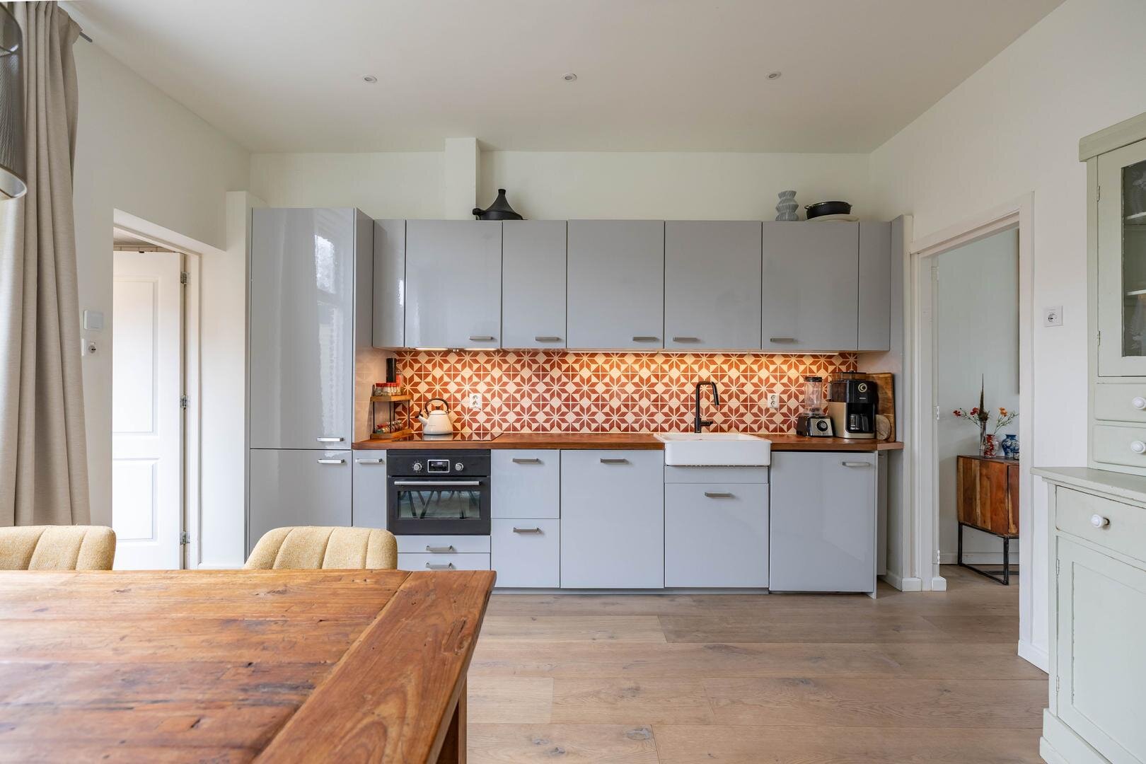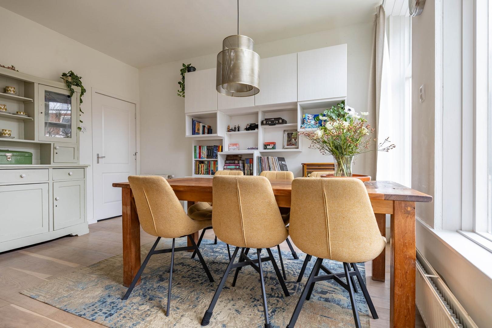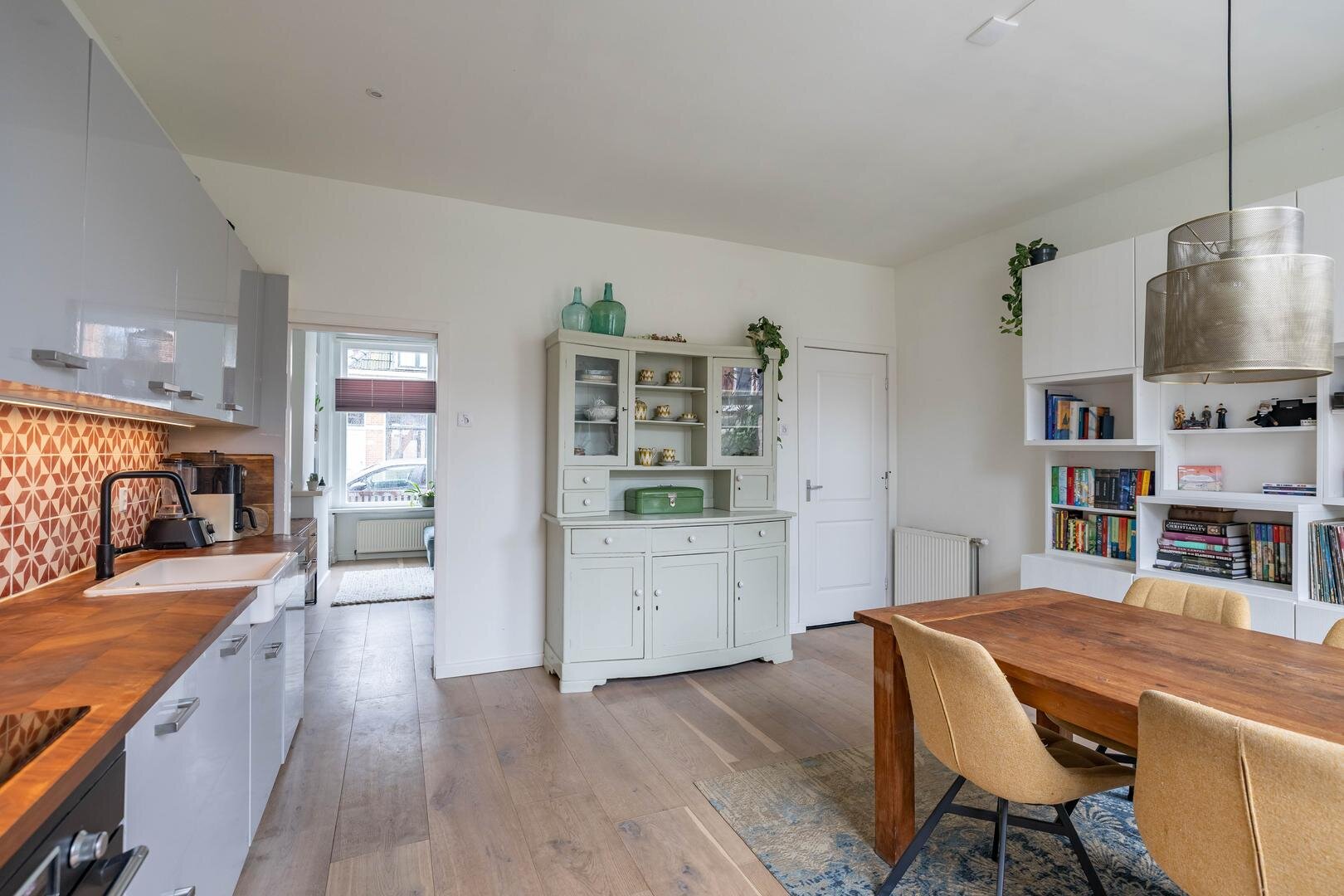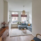 Entree met meterkast en separaat toilet, met toegang tot de ruime leefkeuken. De halfopen keuken van ca. 20,5 m² is voorzien van een moderne en smaakvolle keukenopstelling. De keuken beschikt over een 4-pits inductiekookplaat, afzuigkap, vaatwasser, koel-vriescombinatie en wasmachineaansluiting. De lichte woonkamer van 15 m² heeft een fijne, authentieke sfeer, mede dankzij de houten vloeren op de begane grond. Aan de achterzijde bevindt zich de moderne badkamer, voorzien van een inloopdouche, wastafel en de cv-opstelling.Eerste verdieping