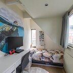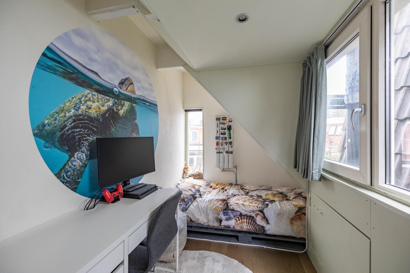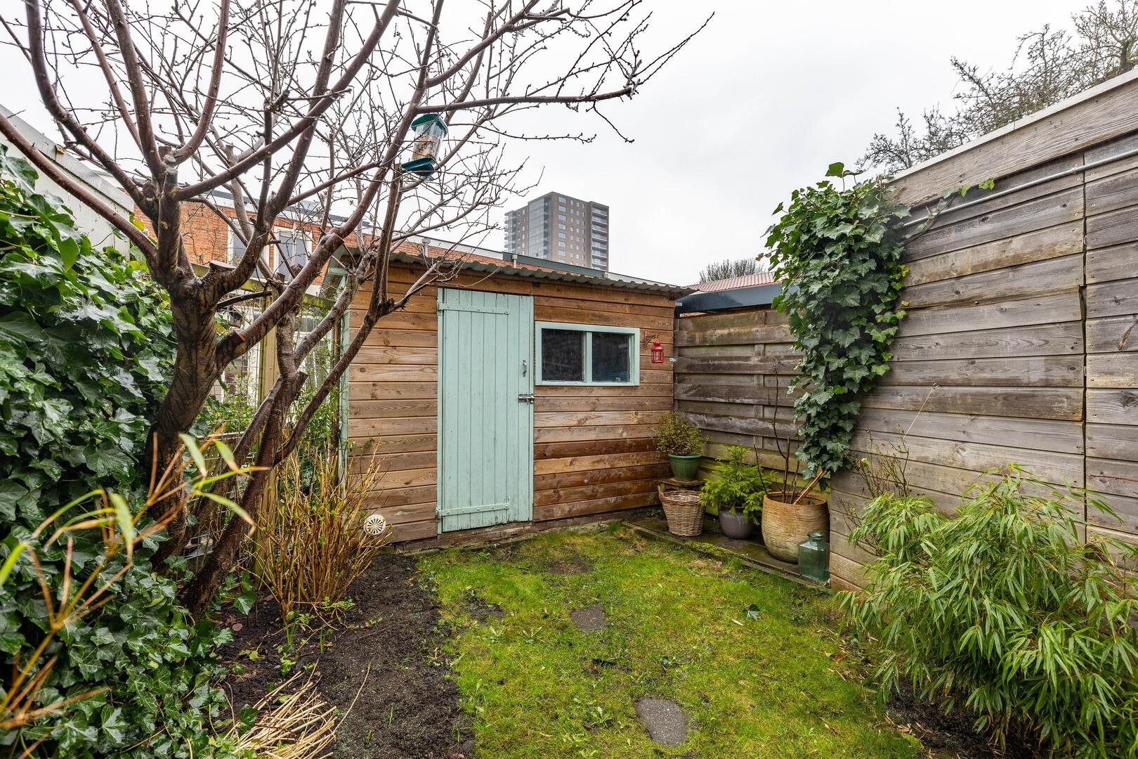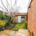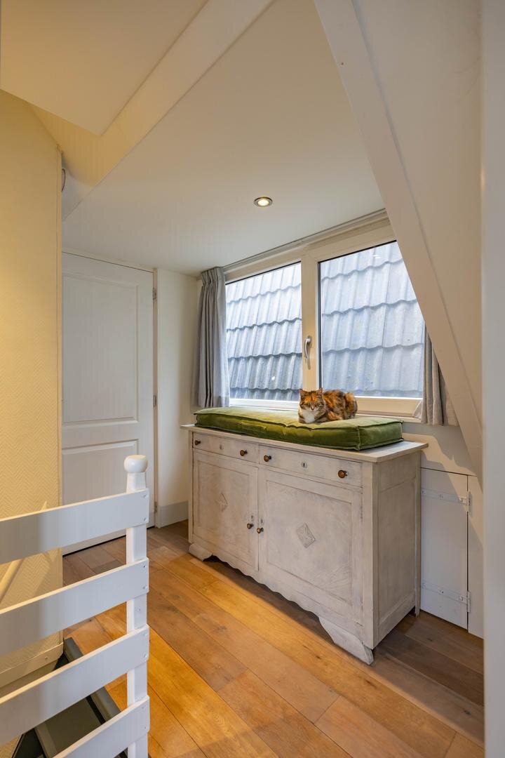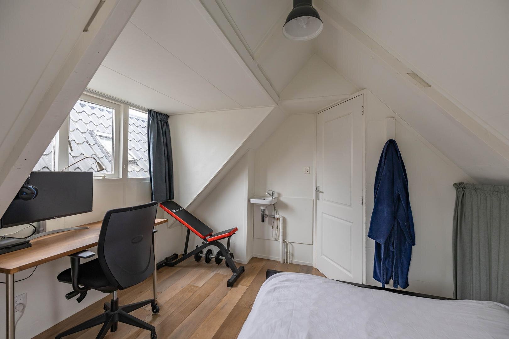 Op deze verdieping bevinden zich drie slaapkamers. De slaapkamer aan de voorzijde is 8 m² en voorzien van een dakkapel, waardoor de kamer licht en ruim aanvoelt. Aan de achterzijde bevinden zich nog een kamer van 5,5 m², eveneens met dakkapel, en een slaapkamer van 4 m², die ook goed te gebruiken is als werkkamer. Daarnaast is het mogelijk om van de twee kleinere kamers één grote slaapkamer te maken.In de knusse stadstuin bevindt zich nog een praktische berging.* Charmante en knusse schipperswoning met karakteristieke elementen