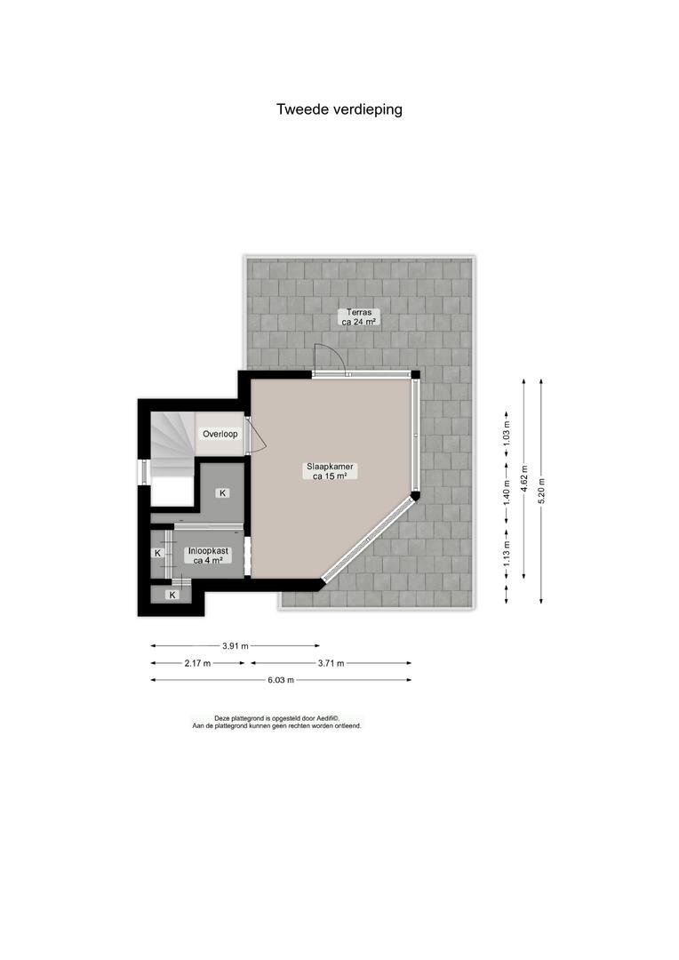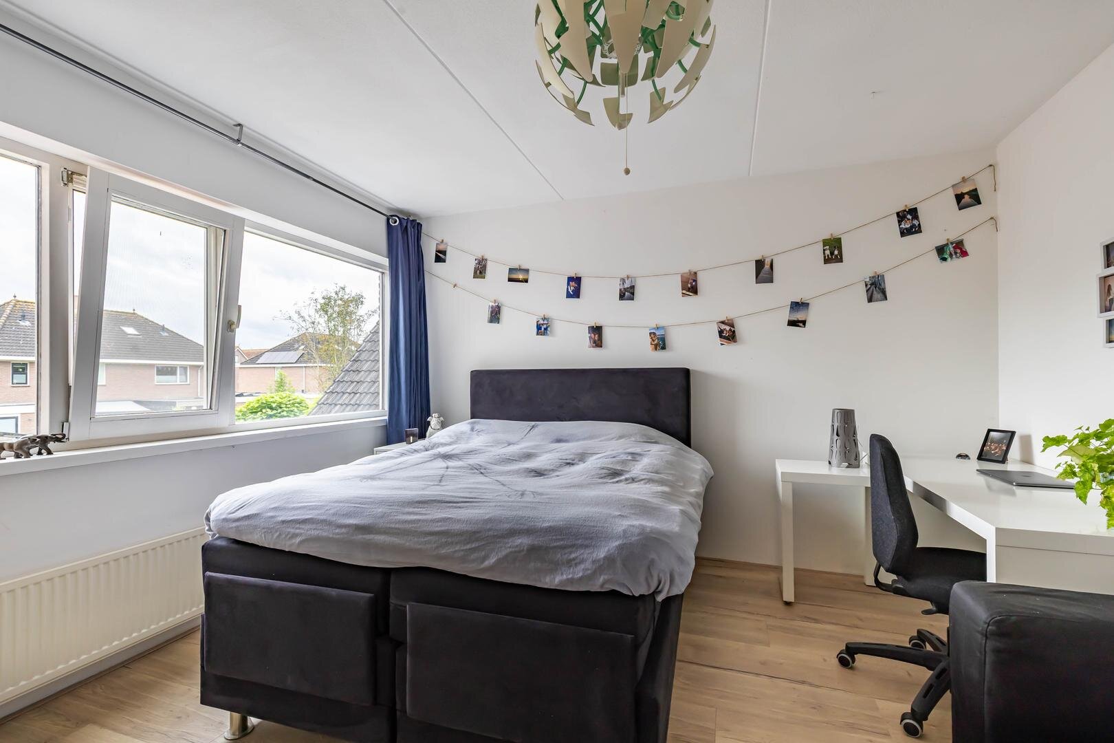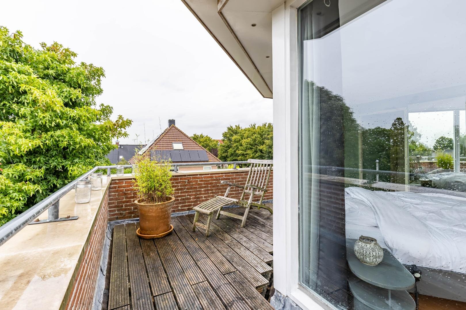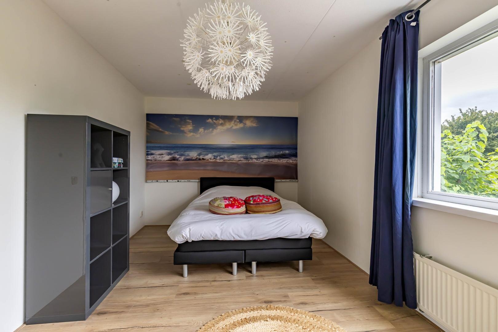 op de bovenste woonlaag vinden we een overloop met aangrenzend de ruime inloop kast v.v. vaste kasten en er is nog een ruime slaapkamer aanwezig van ca. 15m², badend in het licht dankzij de raampartijen rondom én met toegang tot het dakterras van ca. 24m². Hier heb je volop ruimte en prachtig uitzicht over de wijk.Naast de indrukwekkende leefruimte binnenshuis biedt ook de tuin – rondom het huis gelegen – veel woongenot. Met een perceel van ca. 434 m² heb je de hele dag door keuze uit zon of schaduw.
