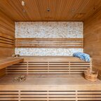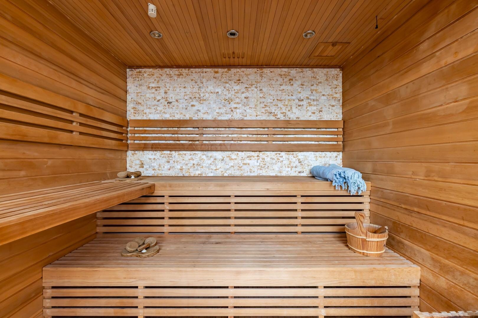 Deze ruimte grenst direct aan de indrukwekkende wellnessruimte van ca. 21 m². Afgewerkt met beton ciré op de wanden straalt deze ruimte pure luxe uit. Er is een ruime jacuzzi, een aparte douchehoek, het derde toilet, een dubbele wastafel en natuurlijk de Finse sauna. Deze wellness is in 2015 gerealiseerd in de uitbouw boven de garage – een ruimte puur gericht op ontspanning.Tweede verdieping: