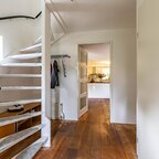 Overloop met toegang tot vier slaapkamers. De kamer aan de achterzijde (ca. 15 m²) beschikt over een grote vaste kastenwand. Twee andere slaapkamers zijn ca. 15 m² en 17 m² groot.