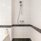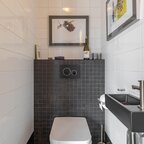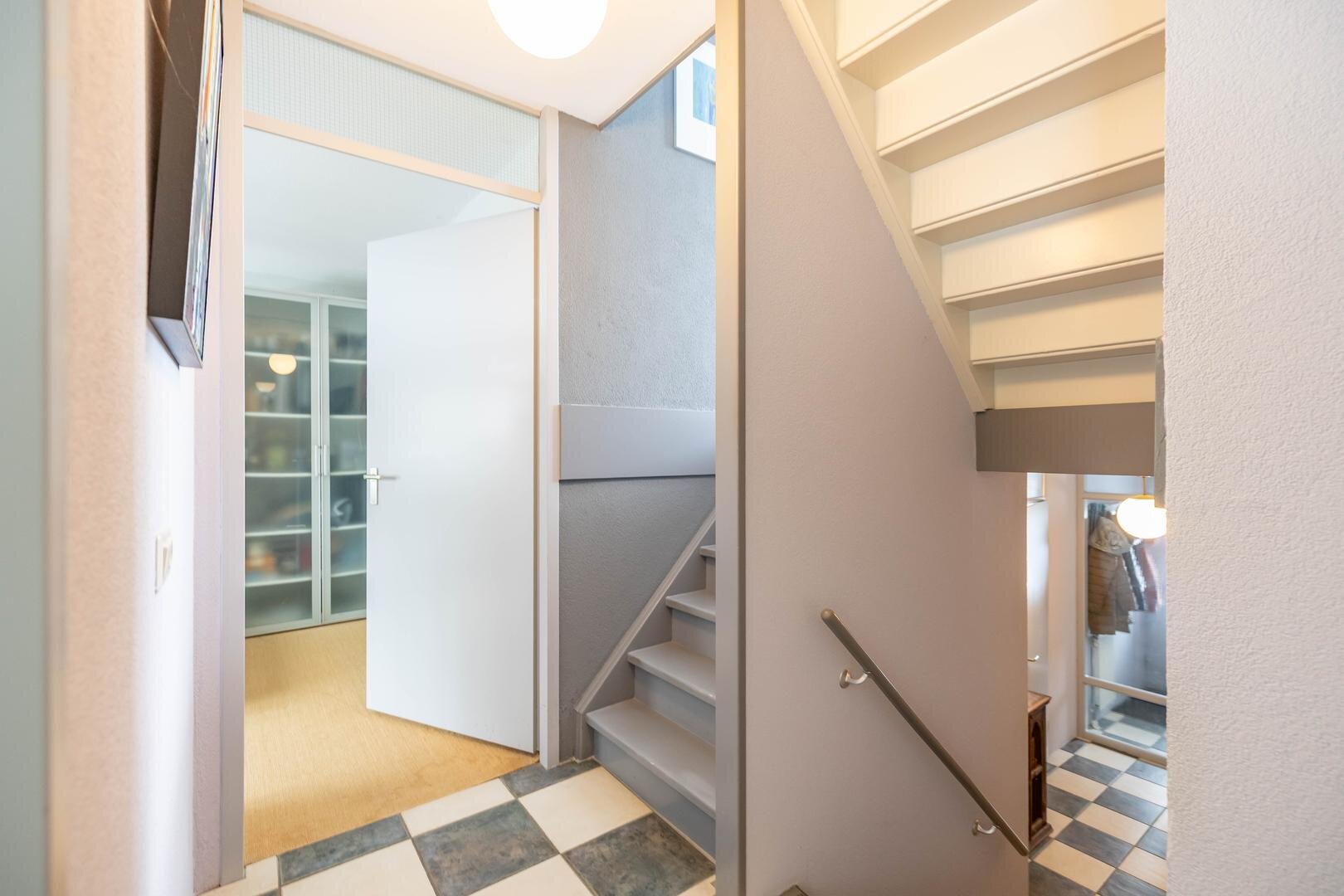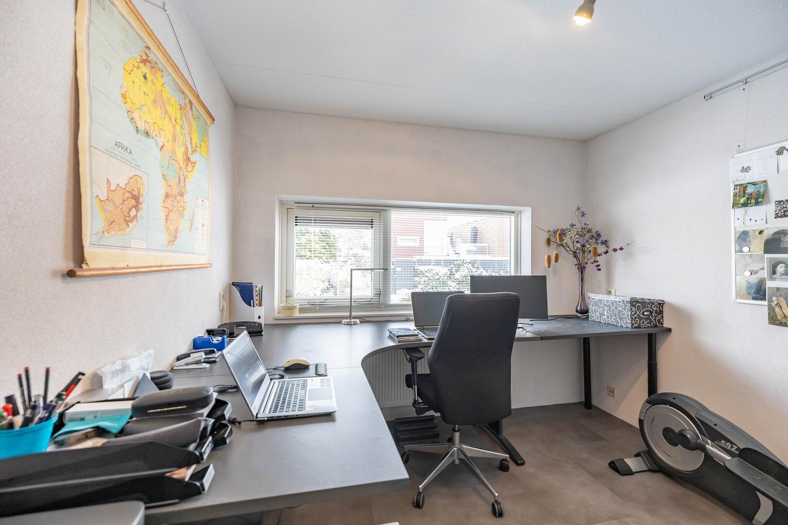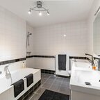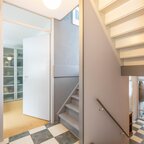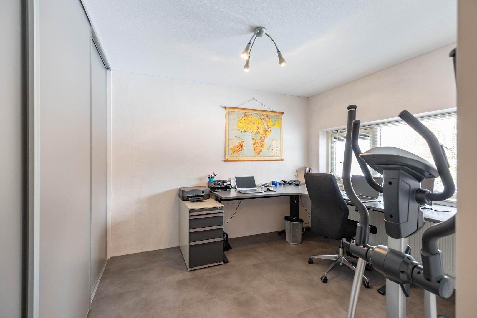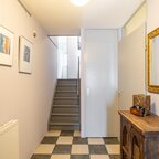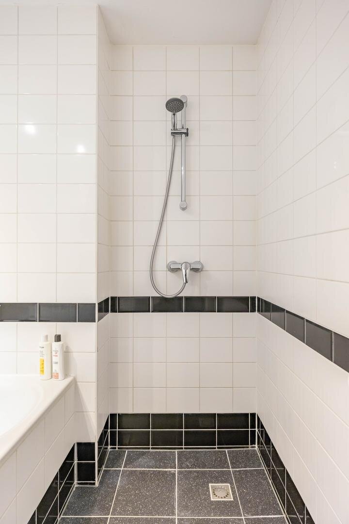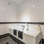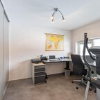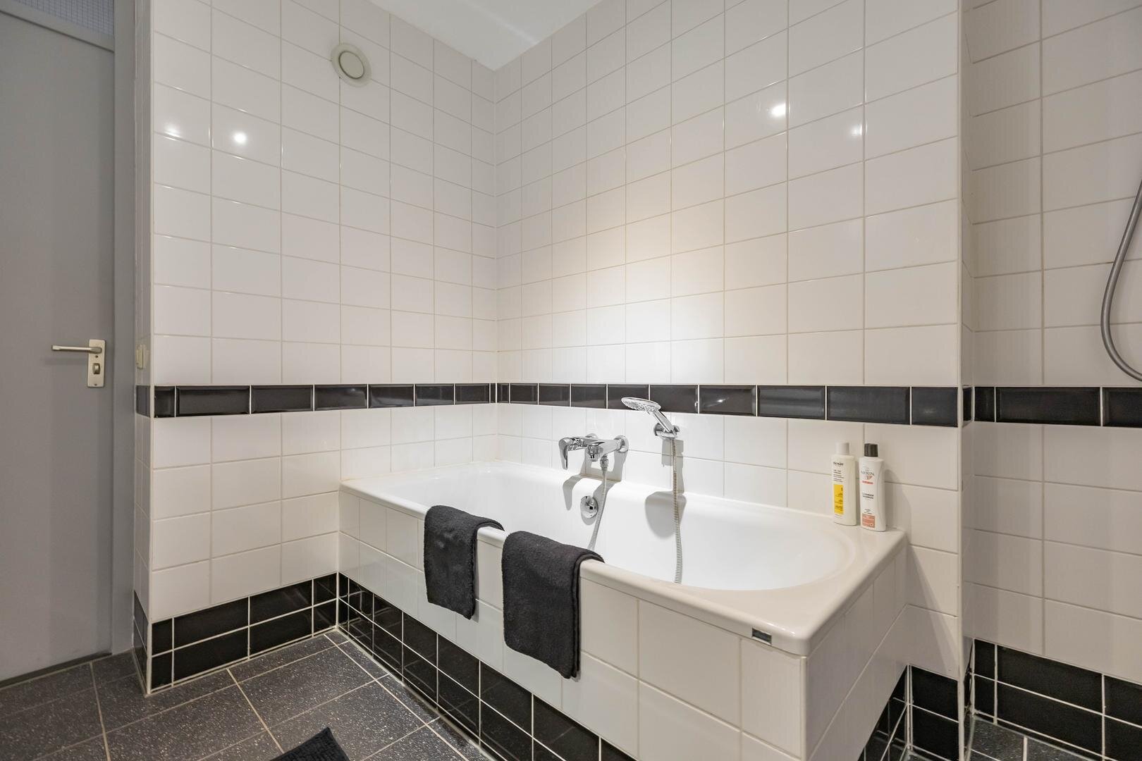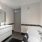 We komen binnen in de entree/hal met vanuit hier toegang tot de inpandige garage van ca. 23 m², waar de wasopstelling is geplaatst en een aansluiting zit voor een elektrische auto. Verder bevindt zich hier een ruime werk-/slaapkamer van ca. 10 m² en een nette badkamer in een elegante zwart-witte tegelcombinatie, wat een tijdloze uitstraling geeft. Hij is uitgerust met ligbad, separate douche, toilet en dubbele wastafel. Ook is er vloerverwarming aanwezig. In een kast in de hal bevindt zich tevens de meterkast met cv-installatie.Niveau 2: