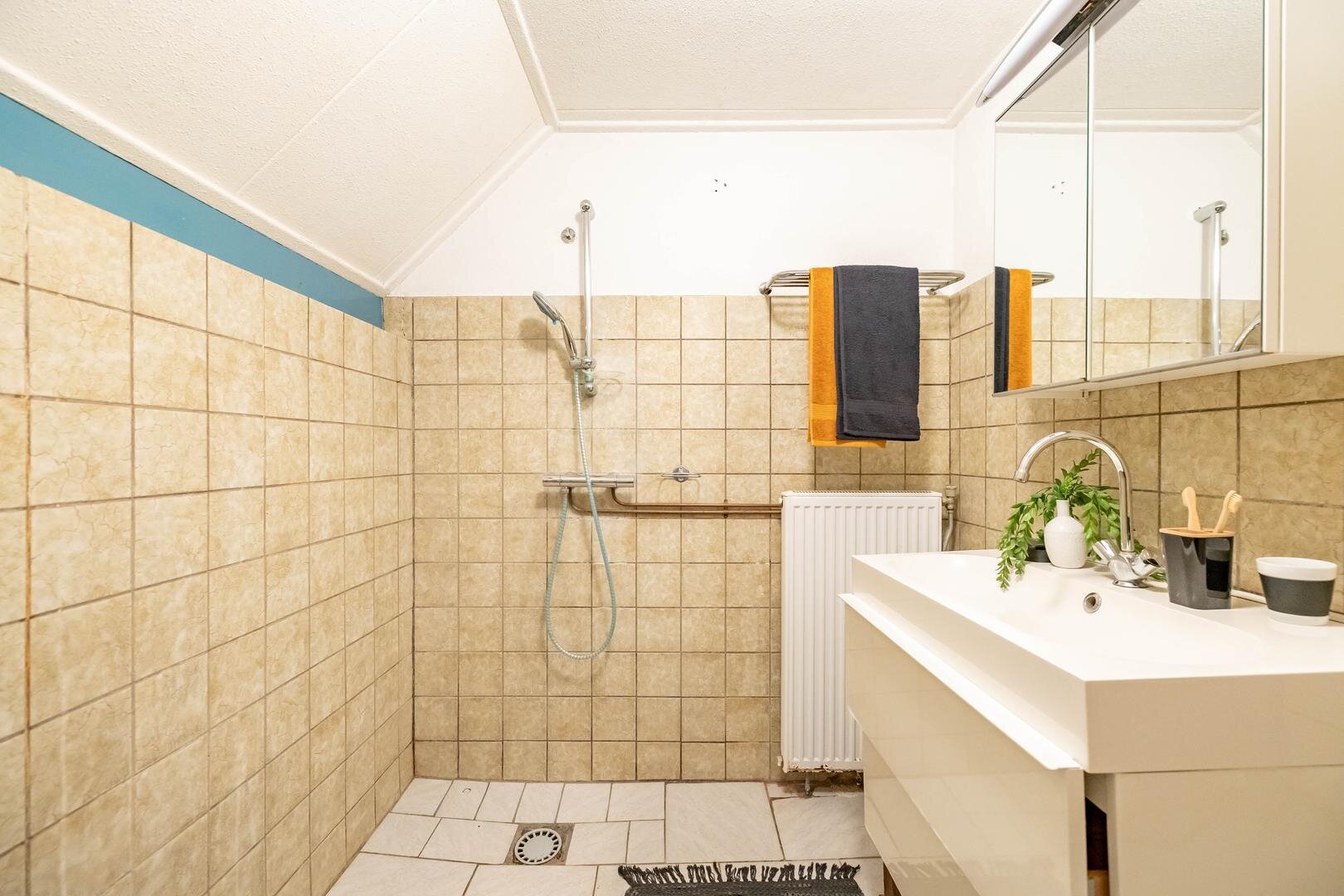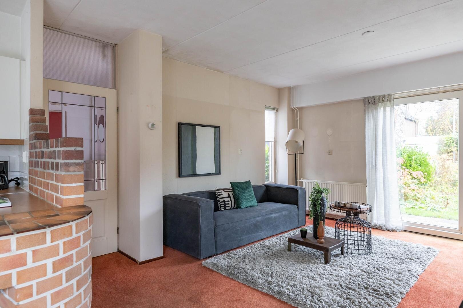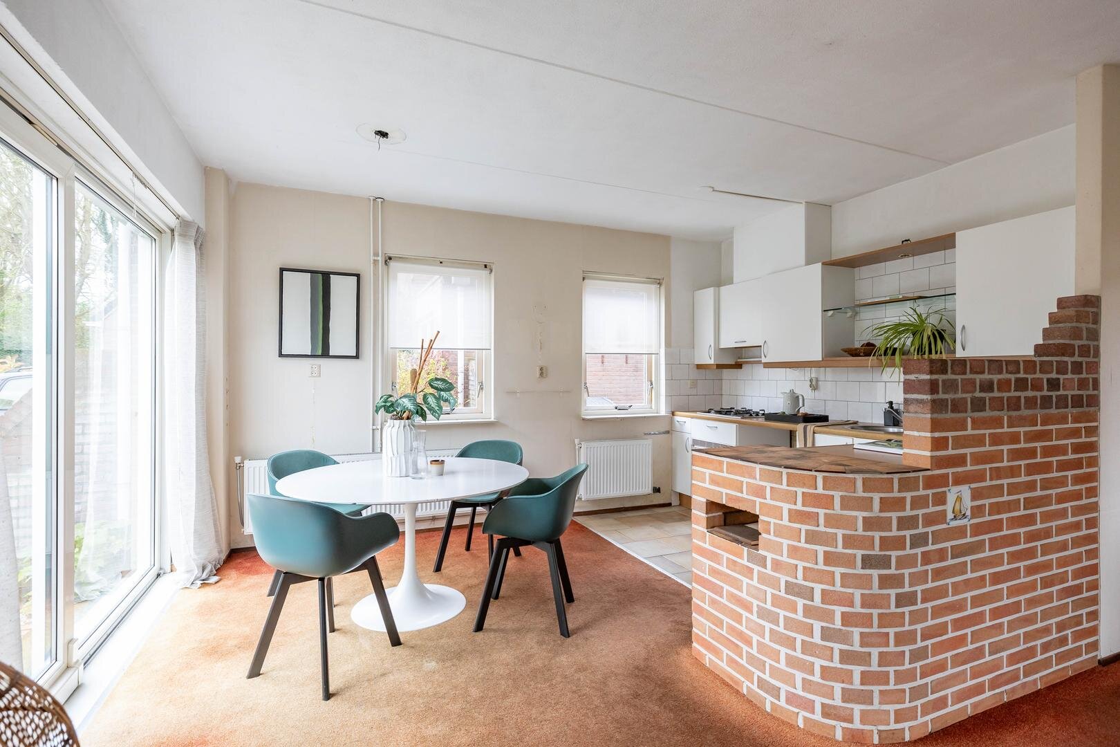 Entree met toilet, doorgang naar de garage en toegang tot de woonkamer van ca. 35 m² met open keuken. De eenvoudige maar functionele keuken is gesitueerd in een hoek. Door de grote raampartijen is het een heerlijk lichte woonkamer met veel mogelijkheden. Beide schuifpuien zijn van kunststof en voorzien van HR++ beglazing. Via de trapopgang in de entree komen we op de eerste verdieping. Hier bevinden zich drie slaapkamers: twee slaapkamers van ca. 7 m² en een ruime slaapkamer van ca. 12 m². De badkamer van ca. 5 m² is voorzien van een douche, wasmachineaansluiting en wastafel. Daarnaast is er nog een apart toilet en een ruime inloopkast van ca. 2 m².De woning beschikt over een heerlijke ruime tuin rondom de woning, waar je altijd een fijn plekje in de zon of schaduw kunt vinden. De auto parkeer je op je eigen oprit of natuurlijk in de ruime garage van ca. 16 m².Hoewel de woning verouderd is, is dat juist de kracht: dit huis zit bomvol potentie. Met een frisse blik en moderne afwerking maak je hier een eigentijdse, comfortabele woning die volledig aansluit bij jouw woonwensen.- Groene, kindvriendelijke omgeving nabij winkels, scholen, sportfaciliteiten en uitvalswegen.