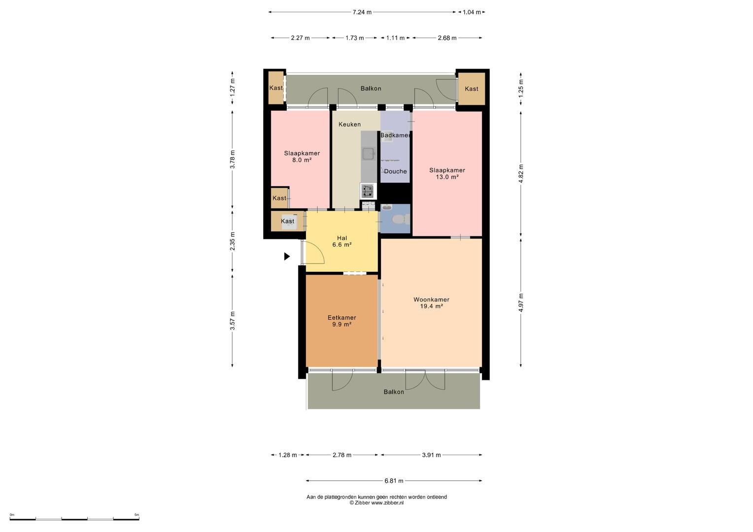 Het appartement beschikt over twee slaapkamers van circa 8 m² en 13 m², waarvan de kleinste is voorzien van een inbouwkast. De badkamer (circa 3 m²) is bereikbaar via de keuken én de grootste slaapkamer en is uitgerust met een inloopdouche en wastafel. Vanuit de keuken en beide slaapkamers is er toegang tot het balkon aan de achterzijde, gelegen op het oosten – een heerlijke plek om de dag zonnig te beginnen.* Energielabel A