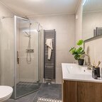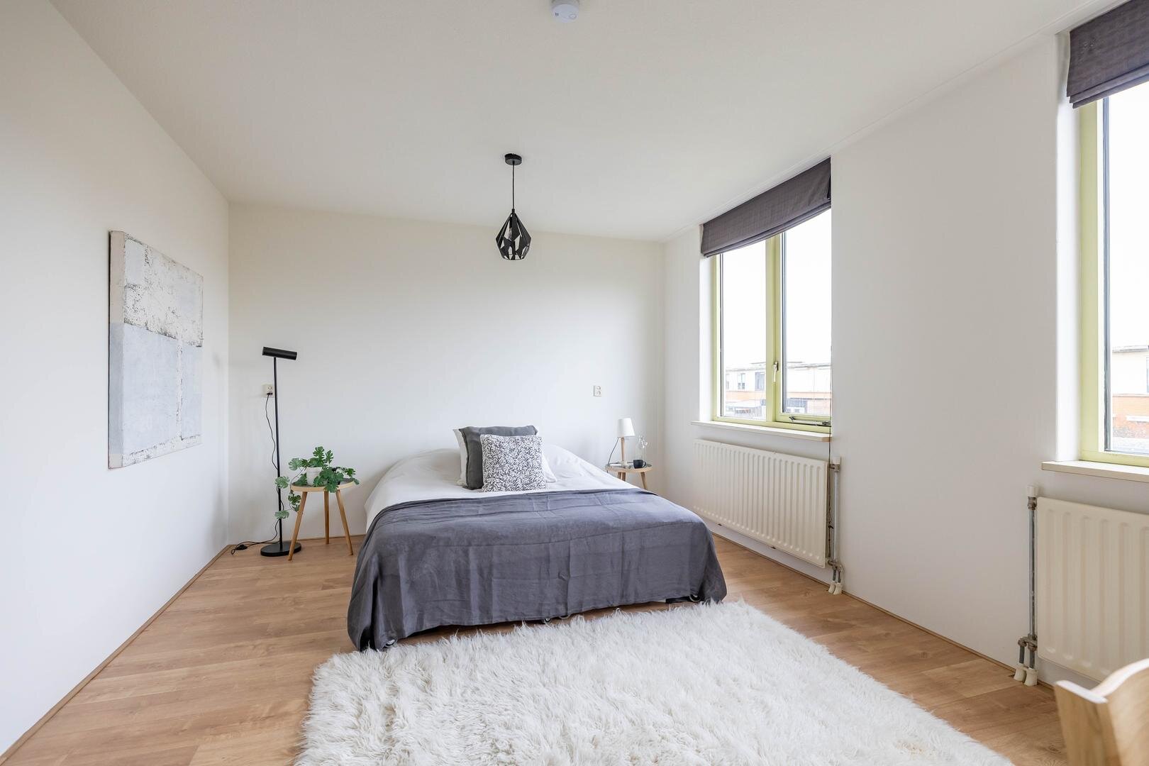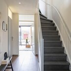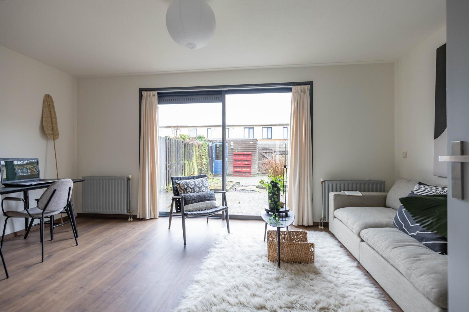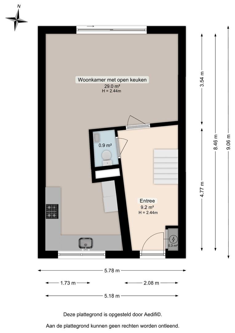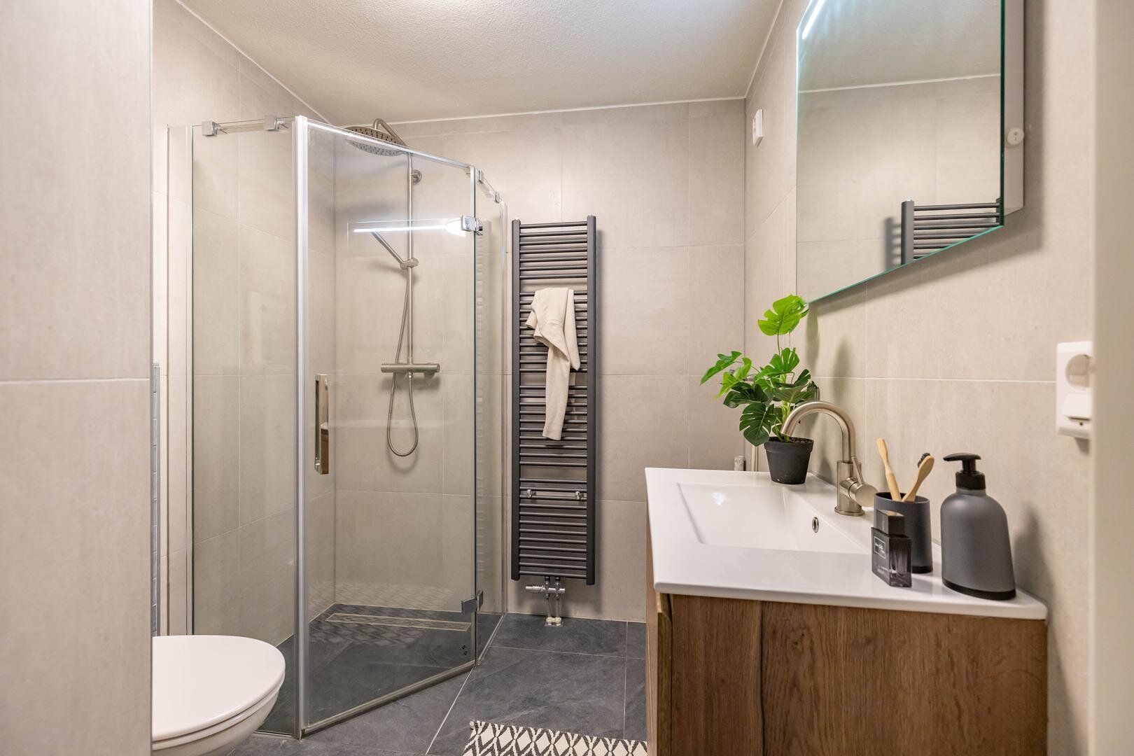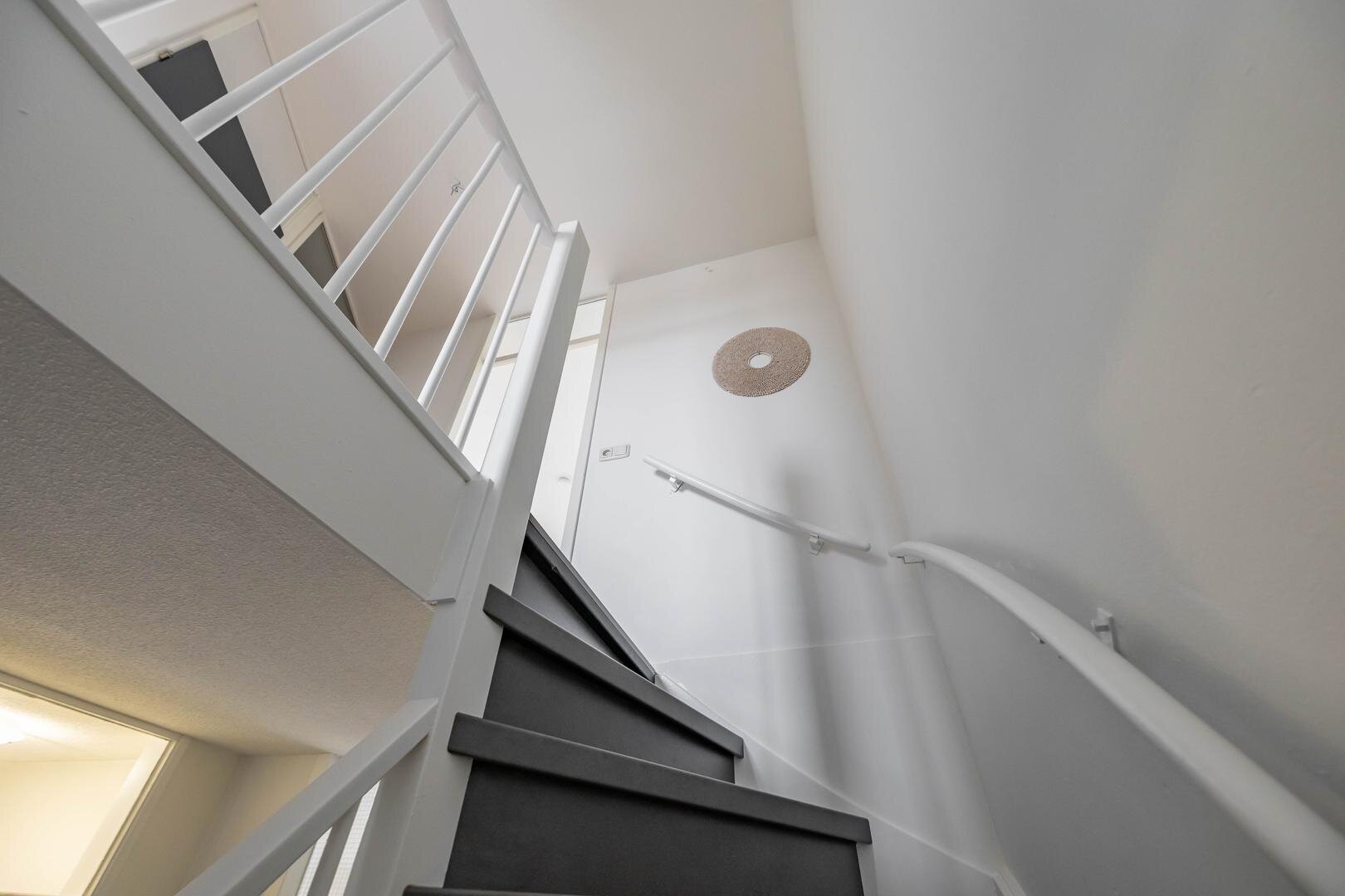Begane grond: entree/hal met meterkast, toilet met fonteintje en trapopgang naar de verdieping. De woonkamer met open keuken van ca 29m² is heerlijk licht en heeft een schuifpui richting de tuin. De hoekkeuken bevindt zich aan de voorzijde van de woning. De keuken is voorzien van diverse inbouwapparatuur te weten: een koelvriescombinatie, oven, 4-pits gasfornuis, afzuigkap en vaatwasser.Eerste verdieping: op deze verdieping zijn de twee ruime slaapkamers van ca. 14m² en 18m² te vinden. De slaapkamer aan de achterzijde is eenvoudig op te splitsen in twee kamers. De moderne badkamer van ca 4m² is voorzien van; een ruime inloopdouche, wastafel en tweede toilet. In de badkamer is de aansluiting voor het witgoed te vinden.De diepe achtertuin is gelegen op het noorden, en via de achterom te bereiken. Hier vinden we nog een aparte berging van ca 6,4 m²