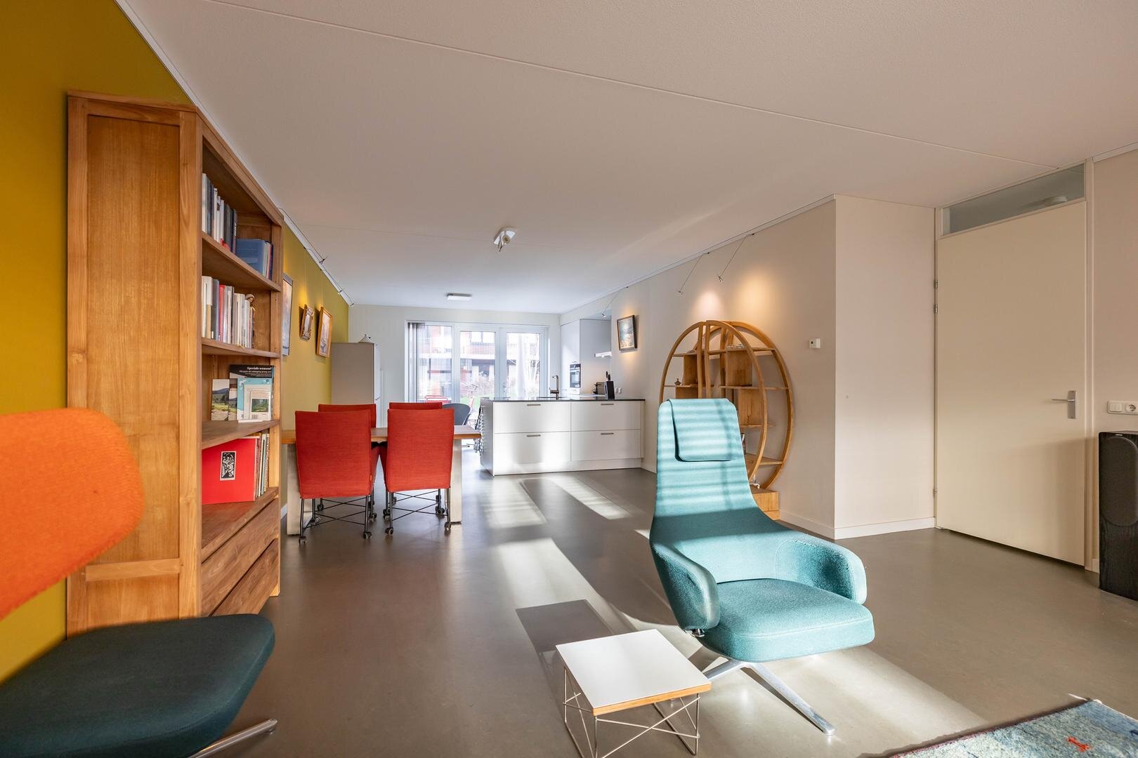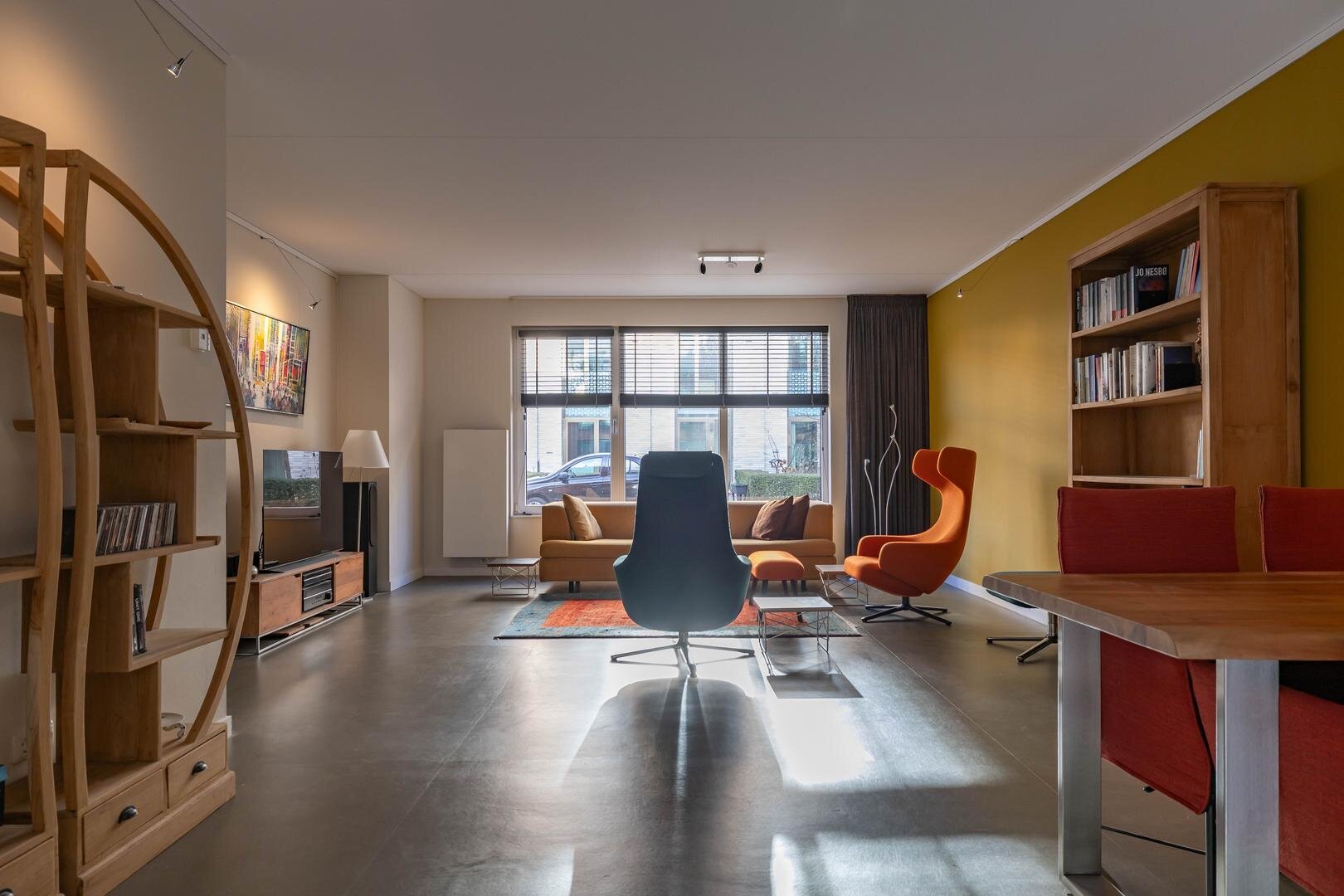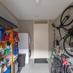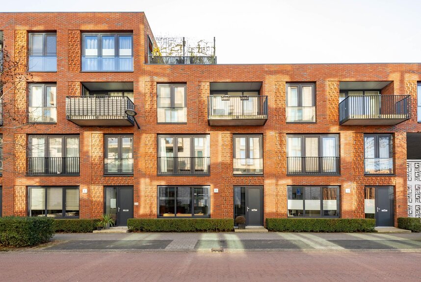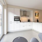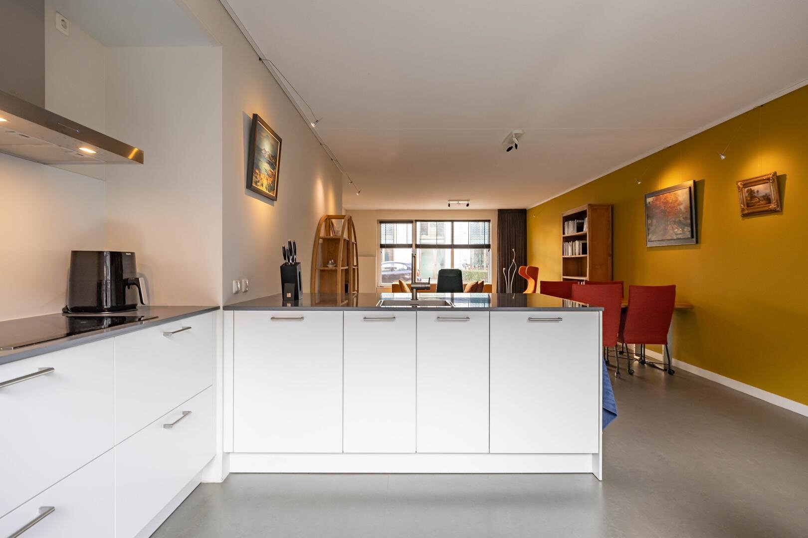 Al bij binnenkomst voel je de ruimte in de hal. Hier bevinden zich de trapopgang naar boven, het toilet, een vaste bergkast en de toegang tot de royale woonkamer van circa 39 m². Dankzij de grote raampartijen is er volop lichtinval. De hoogwaardige marmoleumvloer onderstreept het kwaliteitsniveau waarvoor is gekozen bij de bouw in 2015.De open keuken van SieMatic is circa 17 m² groot en strak uitgevoerd in een hoekopstelling met een uitgebreide keukeninrichting. Er is gekozen voor een dun composiet werkblad, een combi-oven, een inductiekookplaat met SMEG afzuigkap en een koel-/vriescombinatie. Dankzij de hoge kastenwand aan de andere zijde is er veel werk- en bergruimte.Via de openslaande deuren is er een fijne verbinding met de tuin. Hier beschik je over een eigen terras van circa 24 m² op het zuiden, waar je van ’s ochtends tot ’s avonds van de zon kunt genieten, maar ook van het gezamenlijke groen van de binnentuin. Dit groen valt onder het onderhoud van de VvE.Daarnaast is er op de begane grond een bijkeuken met ruimte voor de wasopstelling, extra bergruimte en eveneens toegang tot de achtergelegen buitenruimte.Verdieping