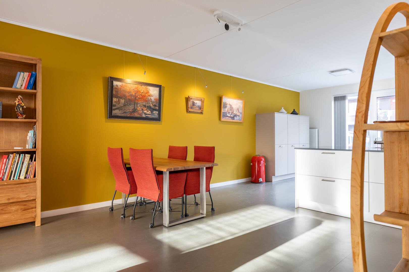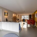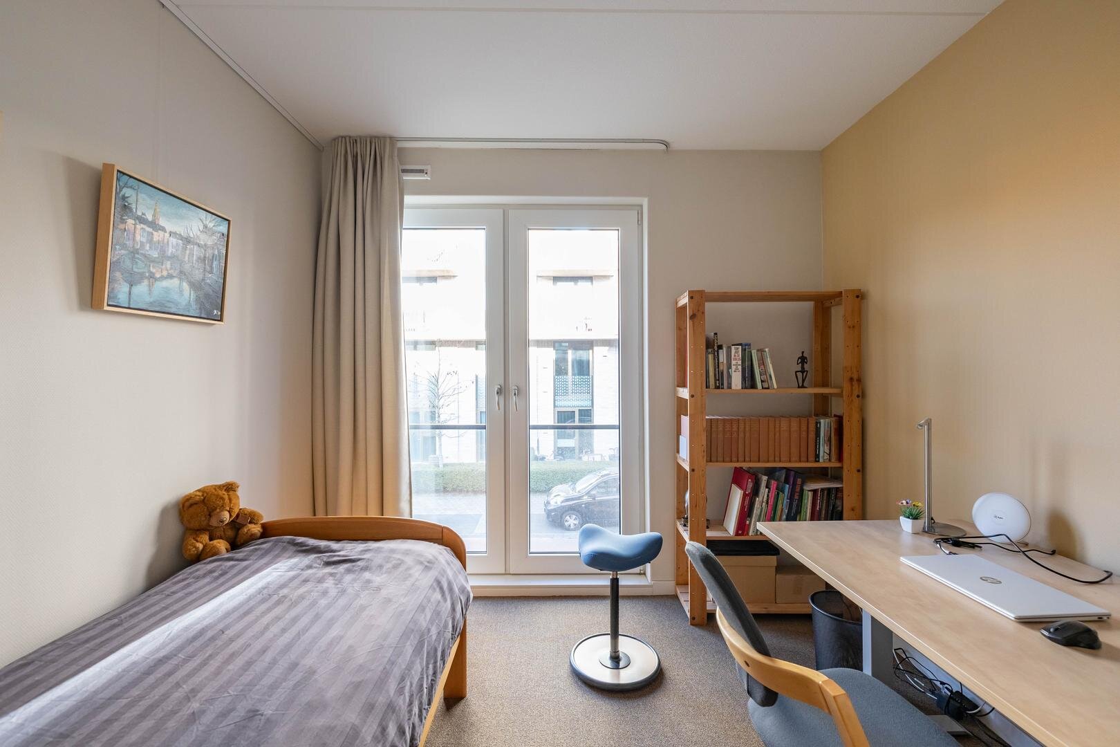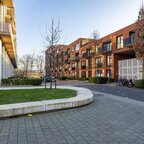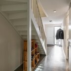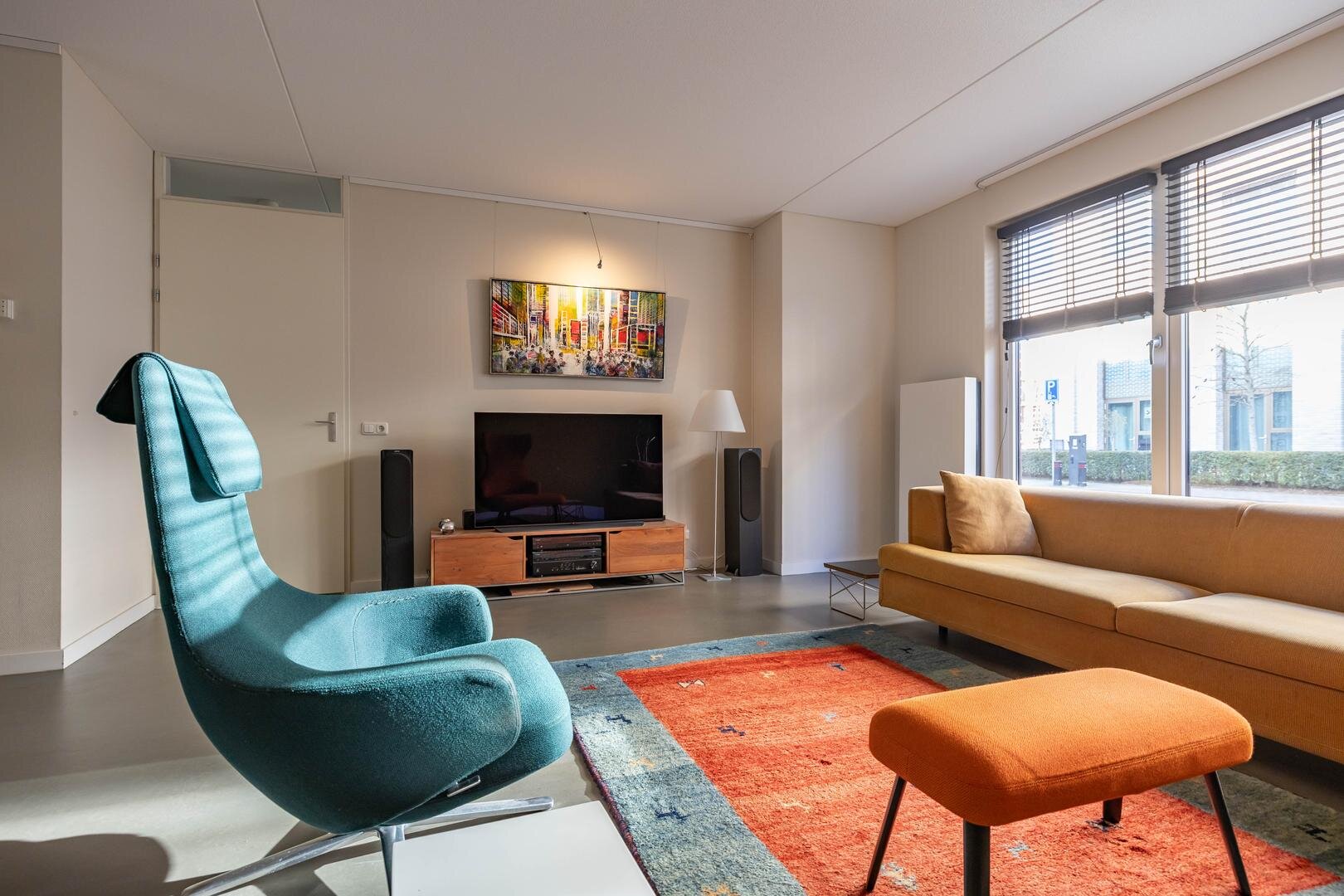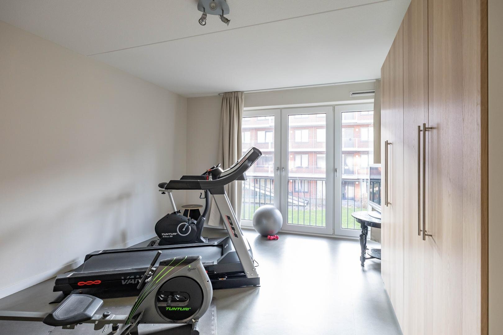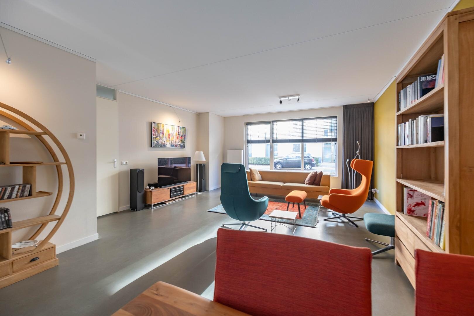 Al bij binnenkomst voel je de ruimte in de hal. Hier bevinden zich de trapopgang naar boven, het toilet, een vaste bergkast en de toegang tot de royale woonkamer van circa 39 m². Dankzij de grote raampartijen is er volop lichtinval. De hoogwaardige marmoleumvloer onderstreept het kwaliteitsniveau waarvoor is gekozen bij de bouw in 2015.De open keuken van SieMatic is circa 17 m² groot en strak uitgevoerd in een hoekopstelling met een uitgebreide keukeninrichting. Er is gekozen voor een dun composiet werkblad, een combi-oven, een inductiekookplaat met SMEG afzuigkap en een koel-/vriescombinatie. Dankzij de hoge kastenwand aan de andere zijde is er veel werk- en bergruimte.Via de openslaande deuren is er een fijne verbinding met de tuin. Hier beschik je over een eigen terras van circa 24 m² op het zuiden, waar je van ’s ochtends tot ’s avonds van de zon kunt genieten, maar ook van het gezamenlijke groen van de binnentuin. Dit groen valt onder het onderhoud van de VvE.Daarnaast is er op de begane grond een bijkeuken met ruimte voor de wasopstelling, extra bergruimte en eveneens toegang tot de achtergelegen buitenruimte.Verdieping