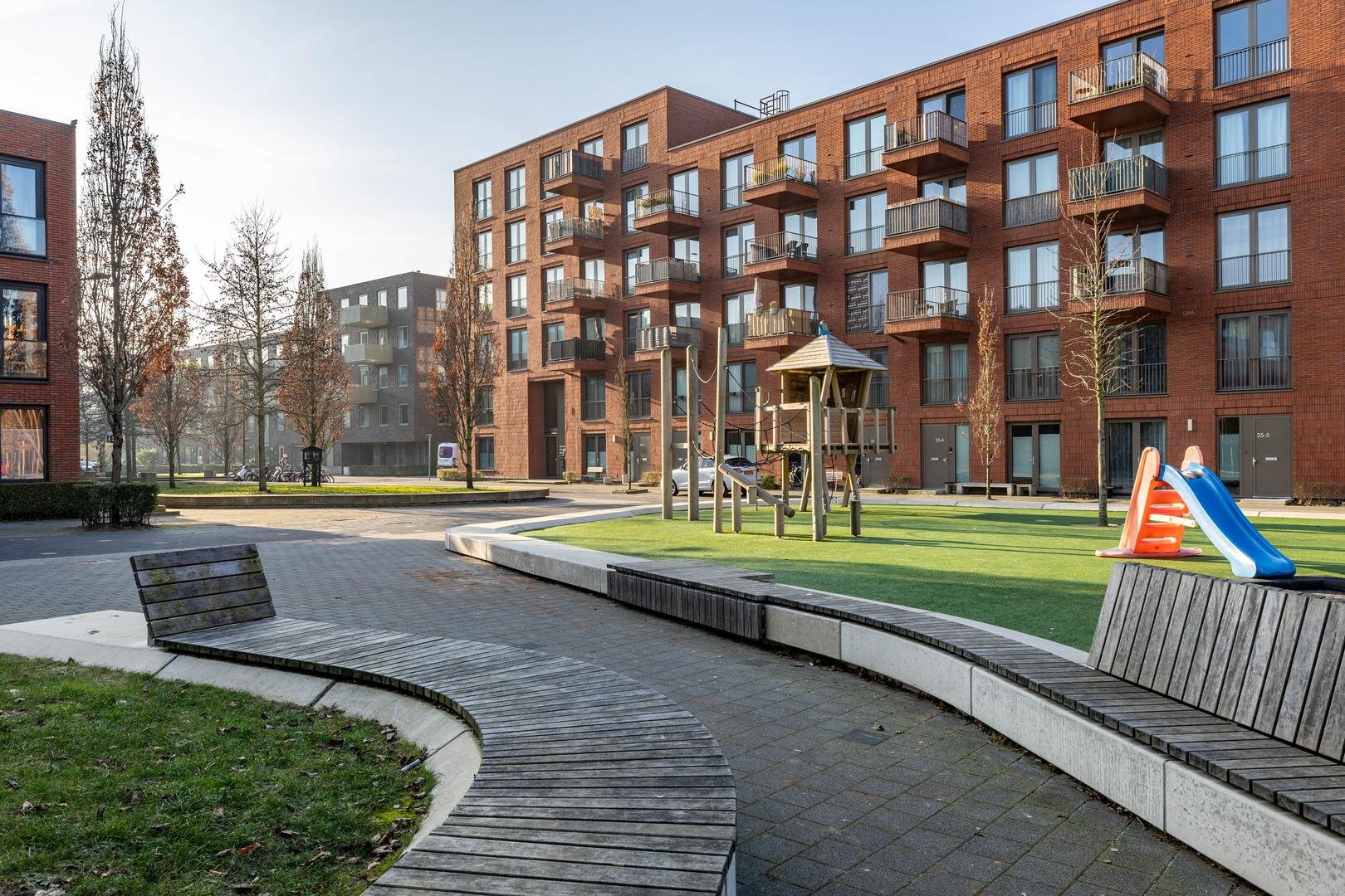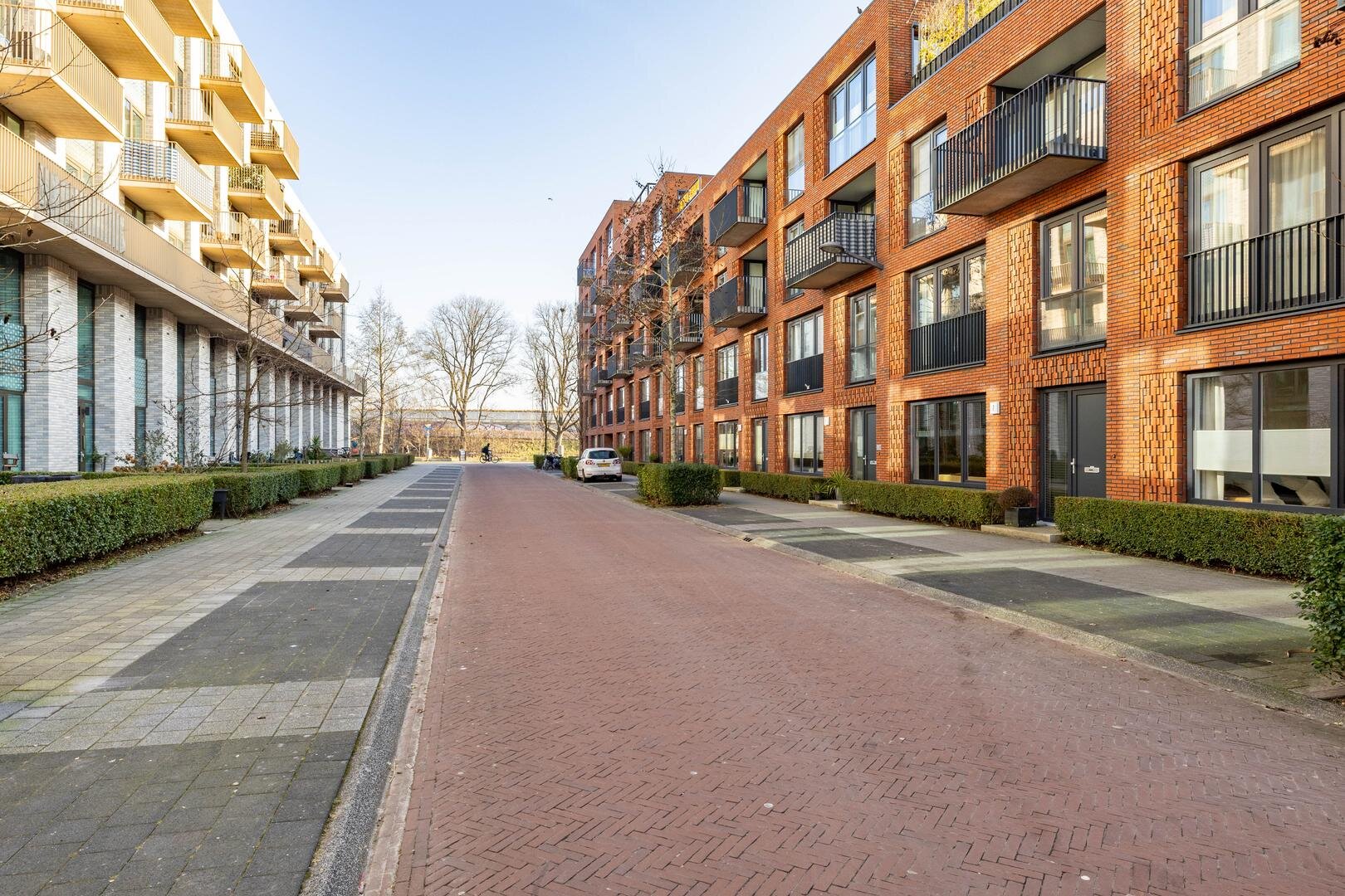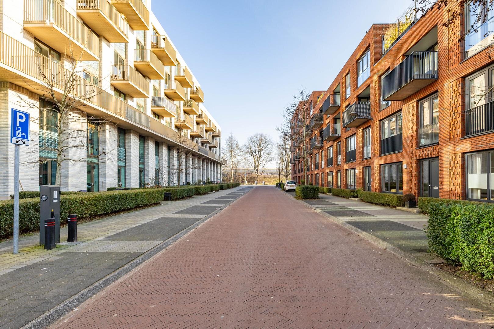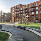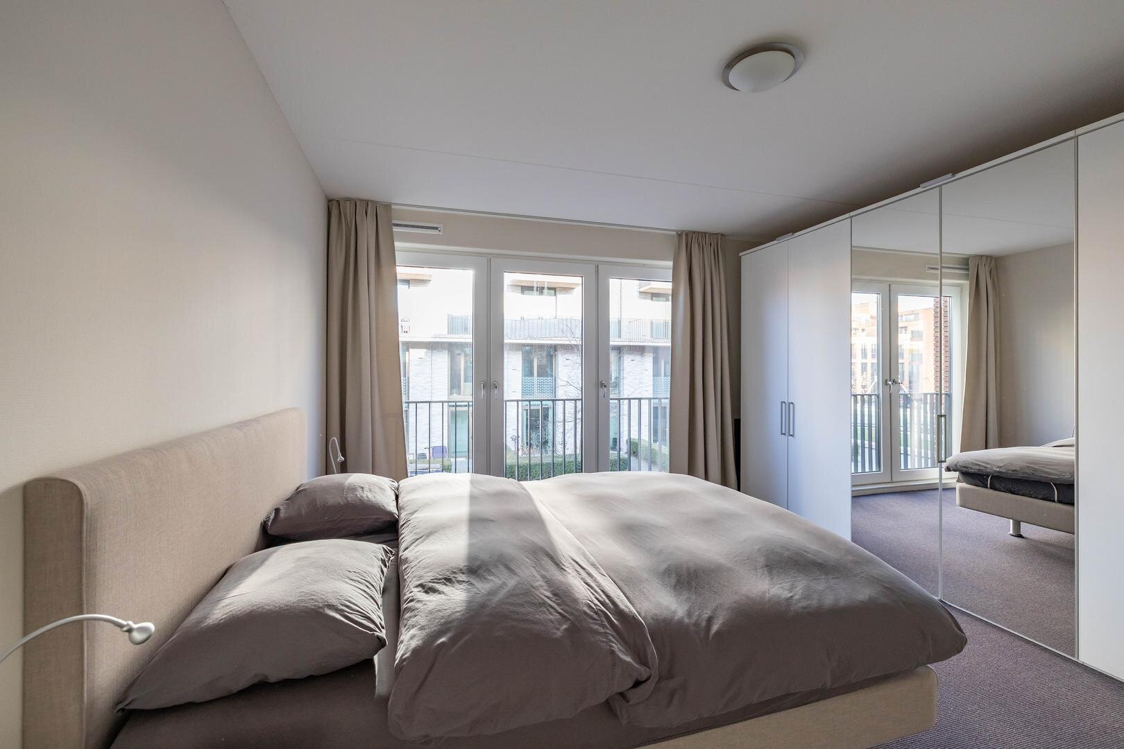 Al bij binnenkomst voel je de ruimte in de hal. Hier bevinden zich de trapopgang naar boven, het toilet, een vaste bergkast en de toegang tot de royale woonkamer van circa 39 m². Dankzij de grote raampartijen is er volop lichtinval. De hoogwaardige marmoleumvloer onderstreept het kwaliteitsniveau waarvoor is gekozen bij de bouw in 2015.De open keuken van SieMatic is circa 17 m² groot en strak uitgevoerd in een hoekopstelling met een uitgebreide keukeninrichting. Er is gekozen voor een dun composiet werkblad, een combi-oven, een inductiekookplaat met SMEG afzuigkap en een koel-/vriescombinatie. Dankzij de hoge kastenwand aan de andere zijde is er veel werk- en bergruimte.Via de openslaande deuren is er een fijne verbinding met de tuin. Hier beschik je over een eigen terras van circa 24 m² op het zuiden, waar je van ’s ochtends tot ’s avonds van de zon kunt genieten, maar ook van het gezamenlijke groen van de binnentuin. Dit groen valt onder het onderhoud van de VvE.Daarnaast is er op de begane grond een bijkeuken met ruimte voor de wasopstelling, extra bergruimte en eveneens toegang tot de achtergelegen buitenruimte.Verdieping