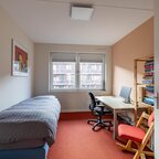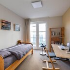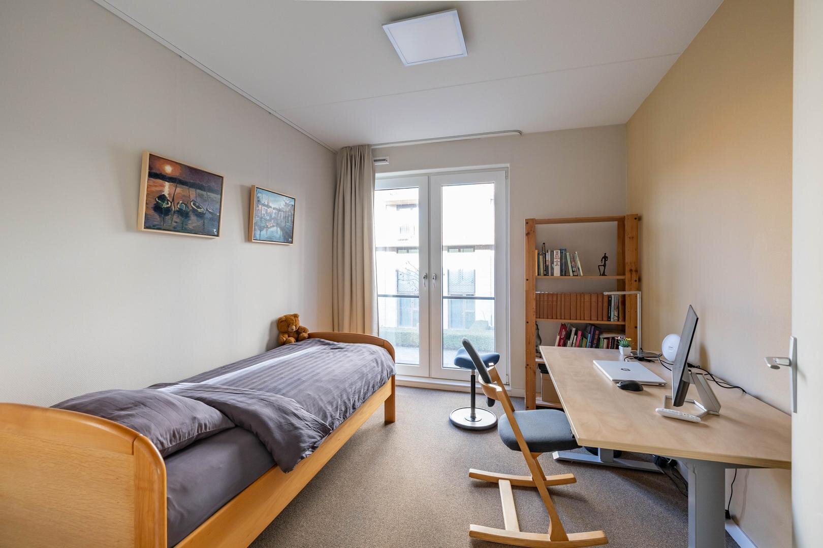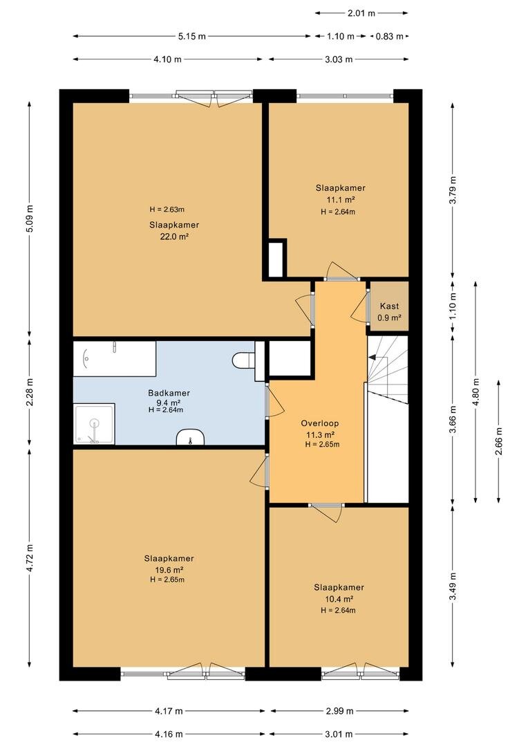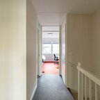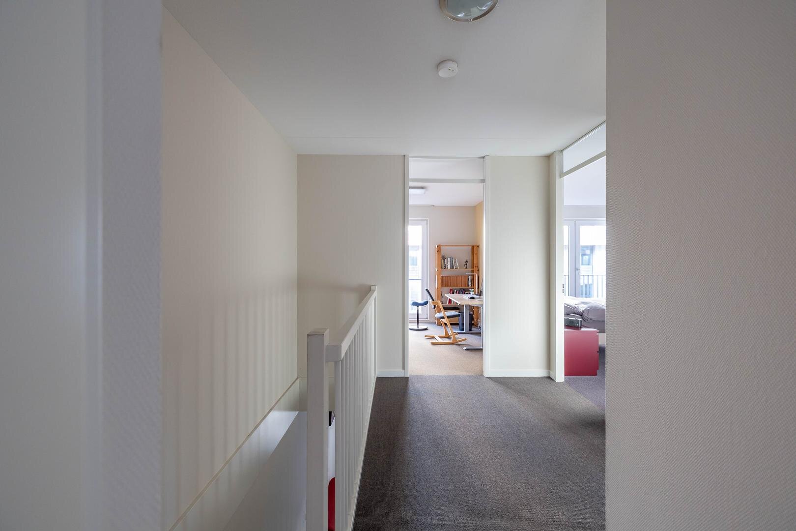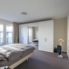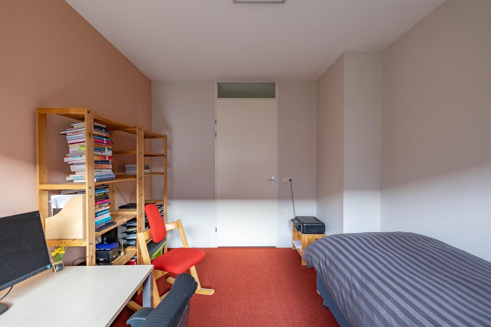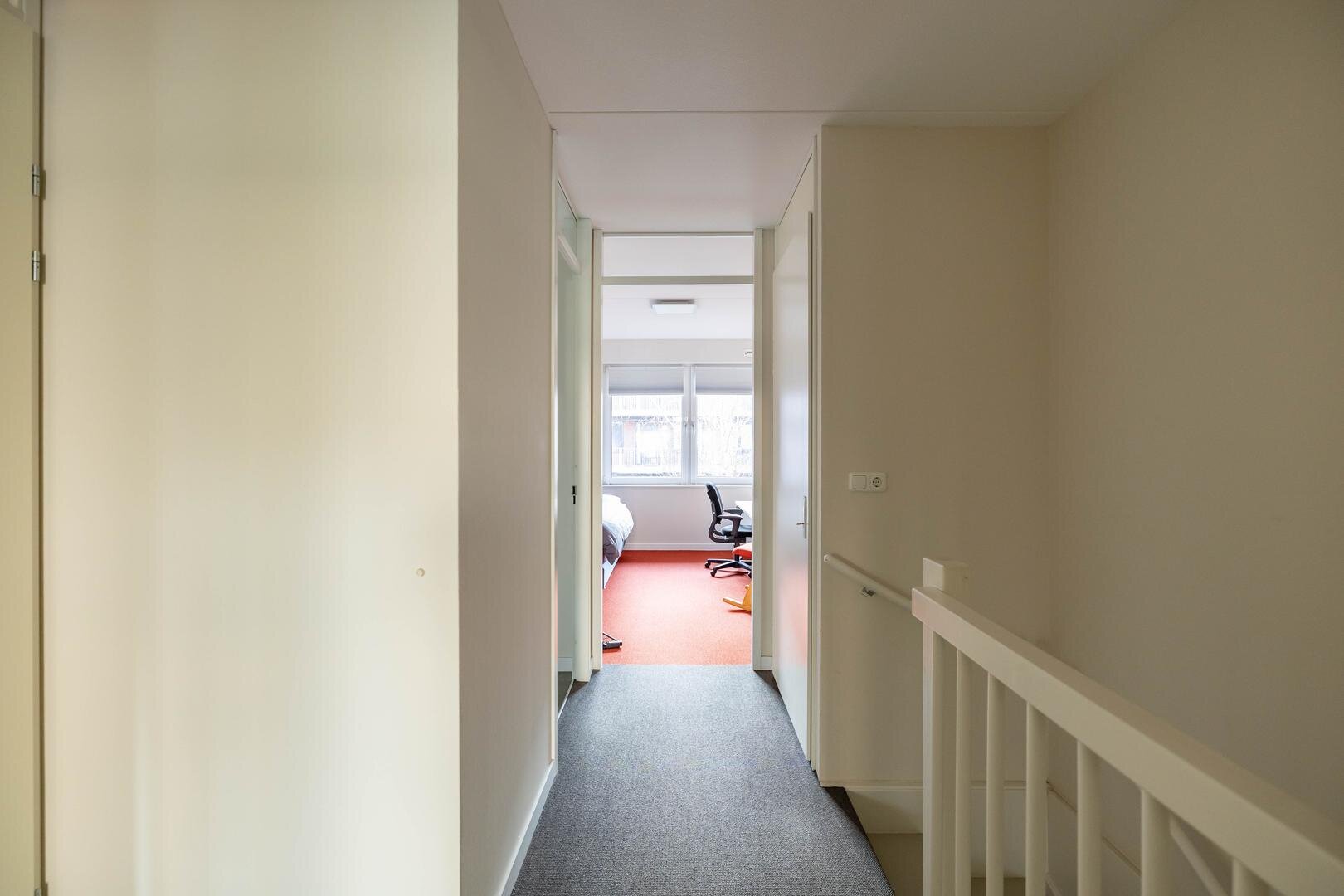 Overloop met vaste kast en maar liefst vier slaapkamers van circa 11 m², 22 m², 19,6 m² en 10,4 m². De slaapkamer aan de voorzijde heeft drie grote kiep-/kantelramen (met deuren) voor extra veel lichtinval en goede ventilatie. De overige slaapkamers zijn eveneens voorzien van kiep-/kantelramen.