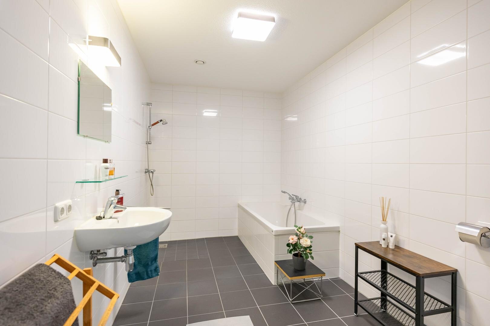 De badkamer is circa 9,4 m² groot en beschikt over een open doucheruimte, een separaat ligbad, een wastafel en een tweede toilet.In de ondergelegen parkeergarage bevindt zich een eigen parkeerplaats, zodat de auto veilig, droog en warm staat. Dat scheelt weer ruiten krabben.De VvE is actief, professioneel en gezond. De maandelijkse bijdrage bedraagt circa € 198,30 en is inclusief buitenonderhoud en parkeren* energielabel A, duurzaam, stadsverwarming