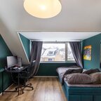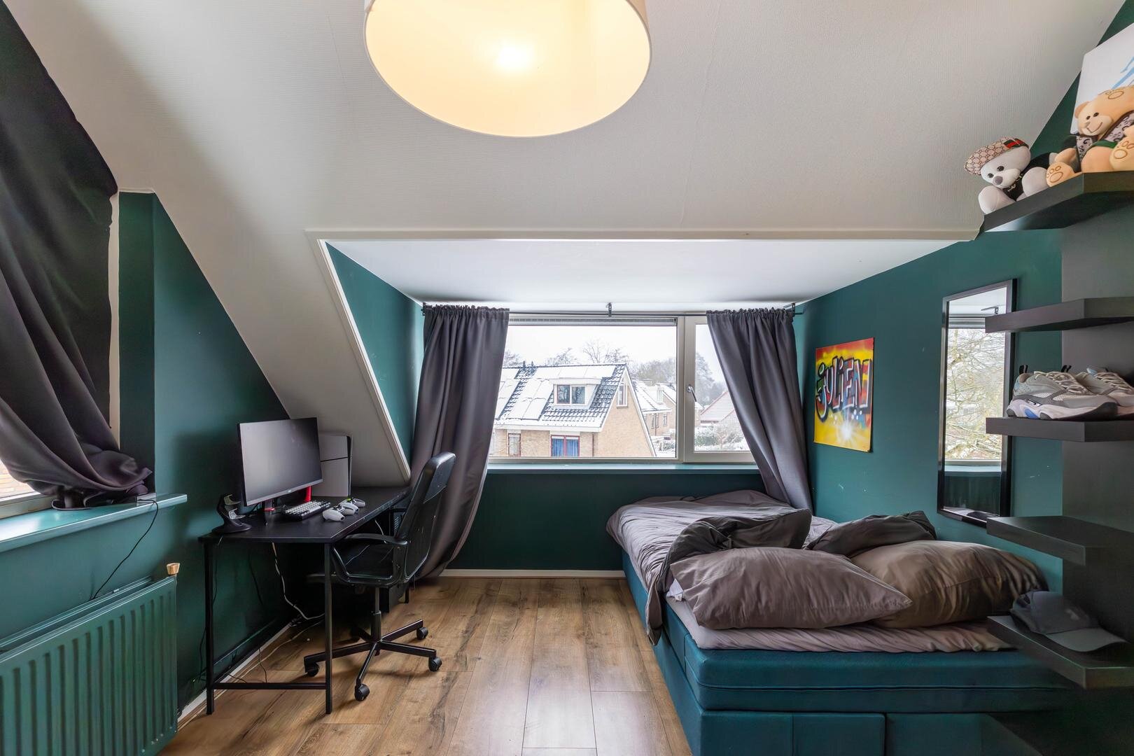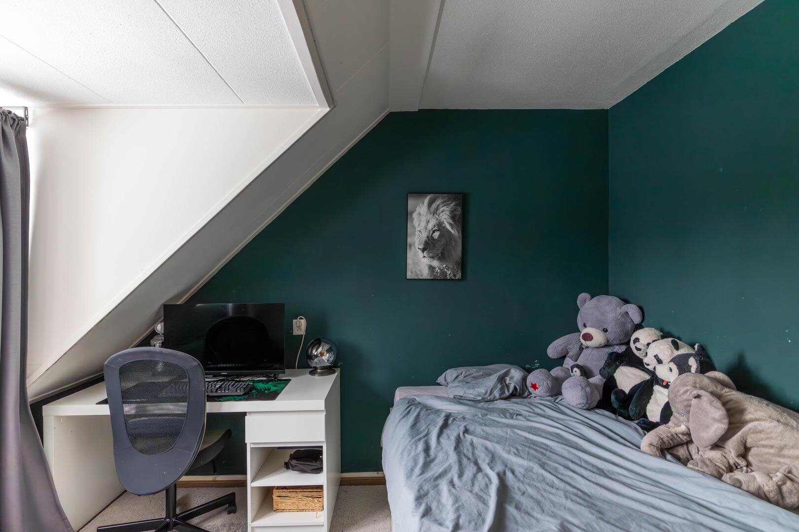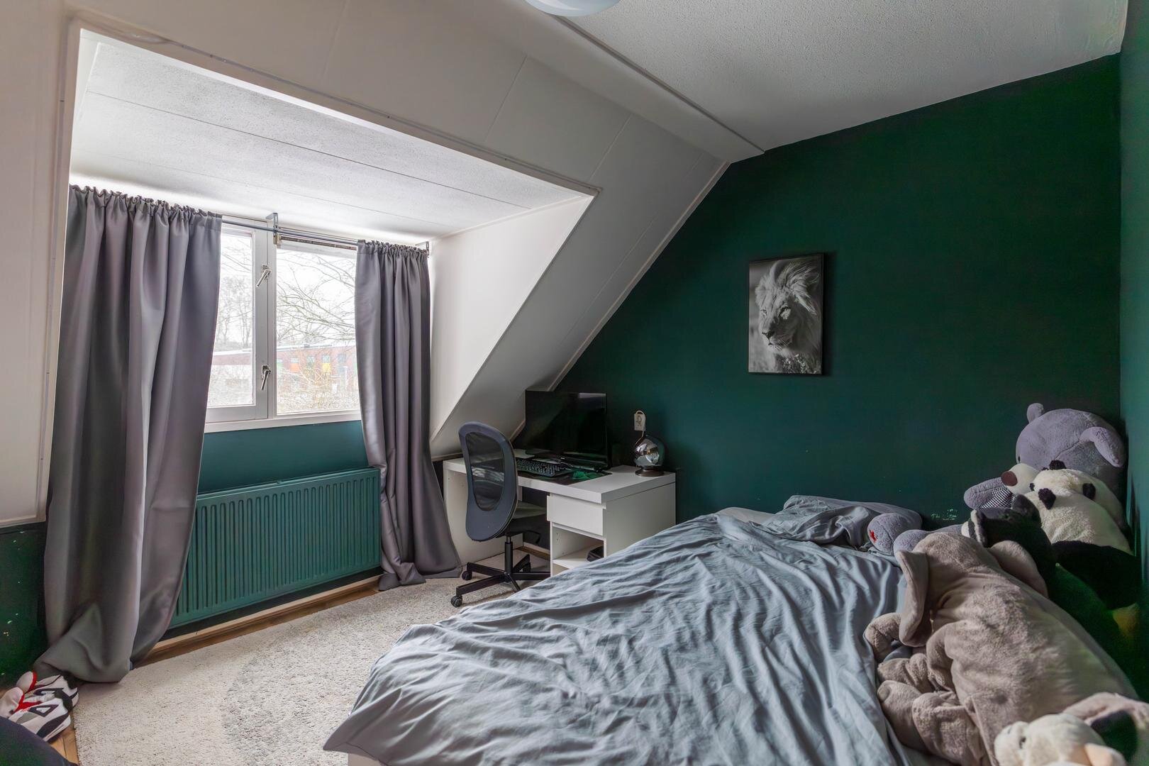 Overloop, slaapkamer van circa 6,5 m², tweede (hang)toilet, slaapkamer van circa 11 m² met vaste kastenwand en een slaapkamer van circa 10 m² met dakkapel. De badkamer is circa 5 m² groot en recent gemoderniseerd met een zwart stalen douchecabine, betonlook tegels, wastafelmeubel en designradiator: een stijlvol geheel.Tweede verdieping