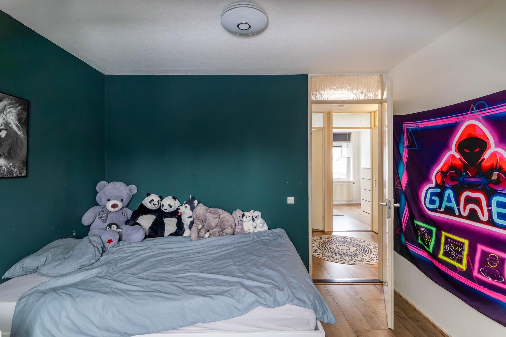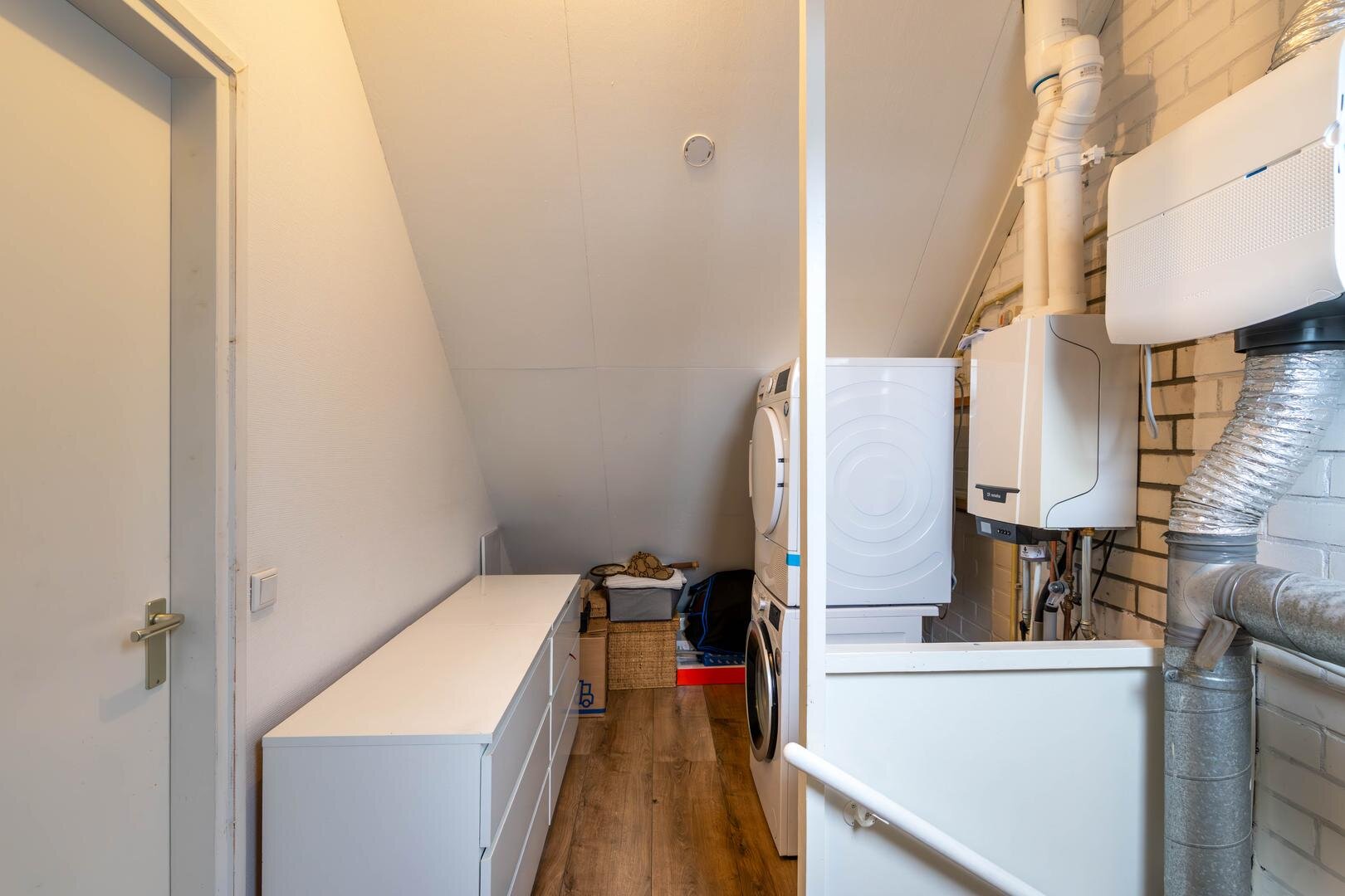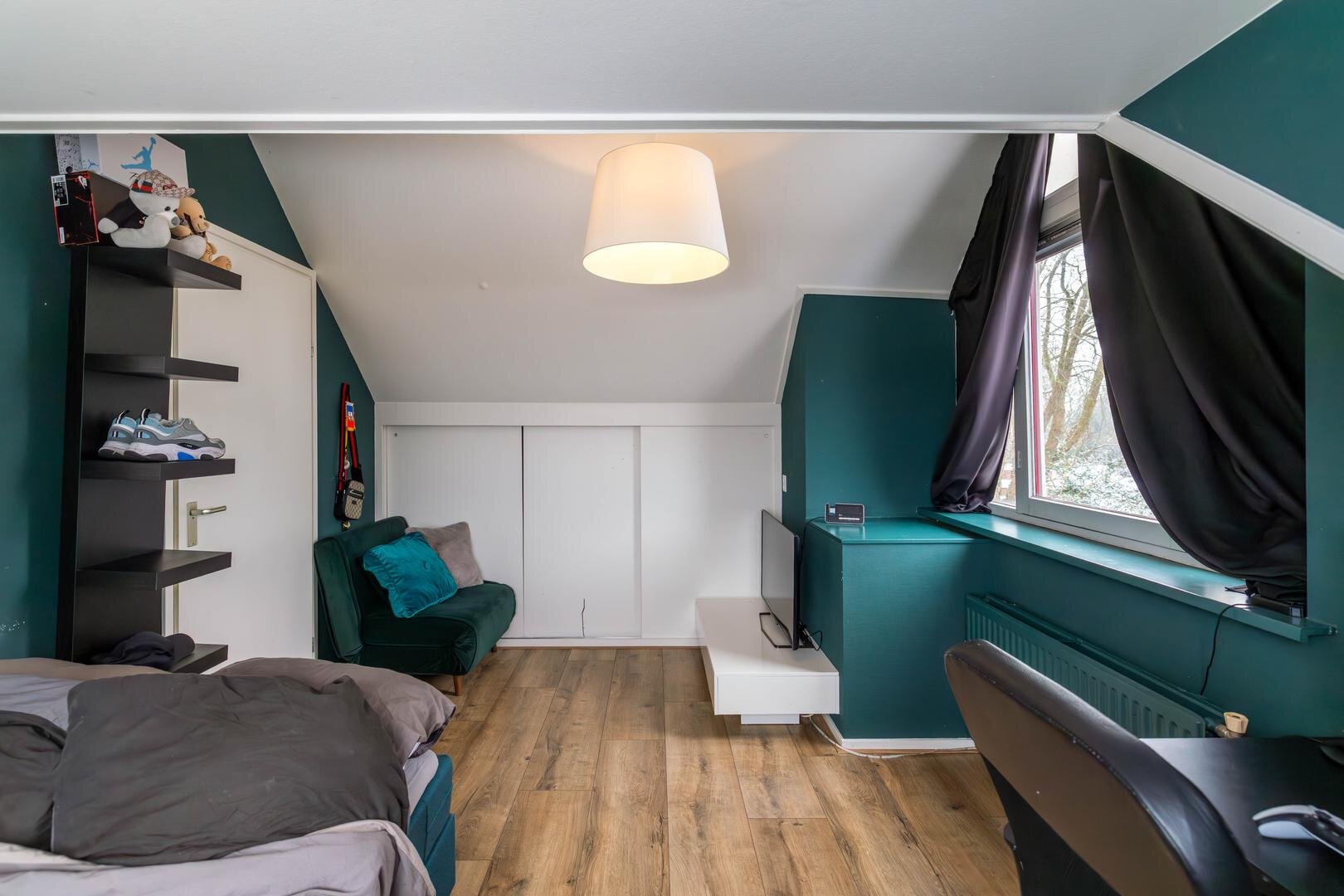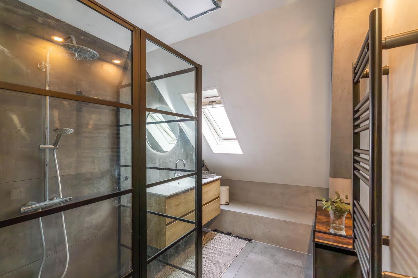 Overloop, slaapkamer van circa 6,5 m², tweede (hang)toilet, slaapkamer van circa 11 m² met vaste kastenwand en een slaapkamer van circa 10 m² met dakkapel. De badkamer is circa 5 m² groot en recent gemoderniseerd met een zwart stalen douchecabine, betonlook tegels, wastafelmeubel en designradiator: een stijlvol geheel.Tweede verdieping