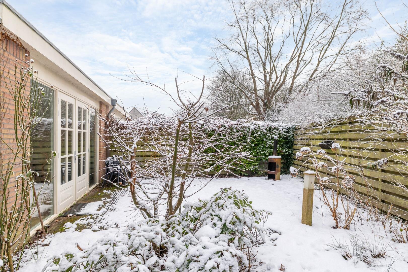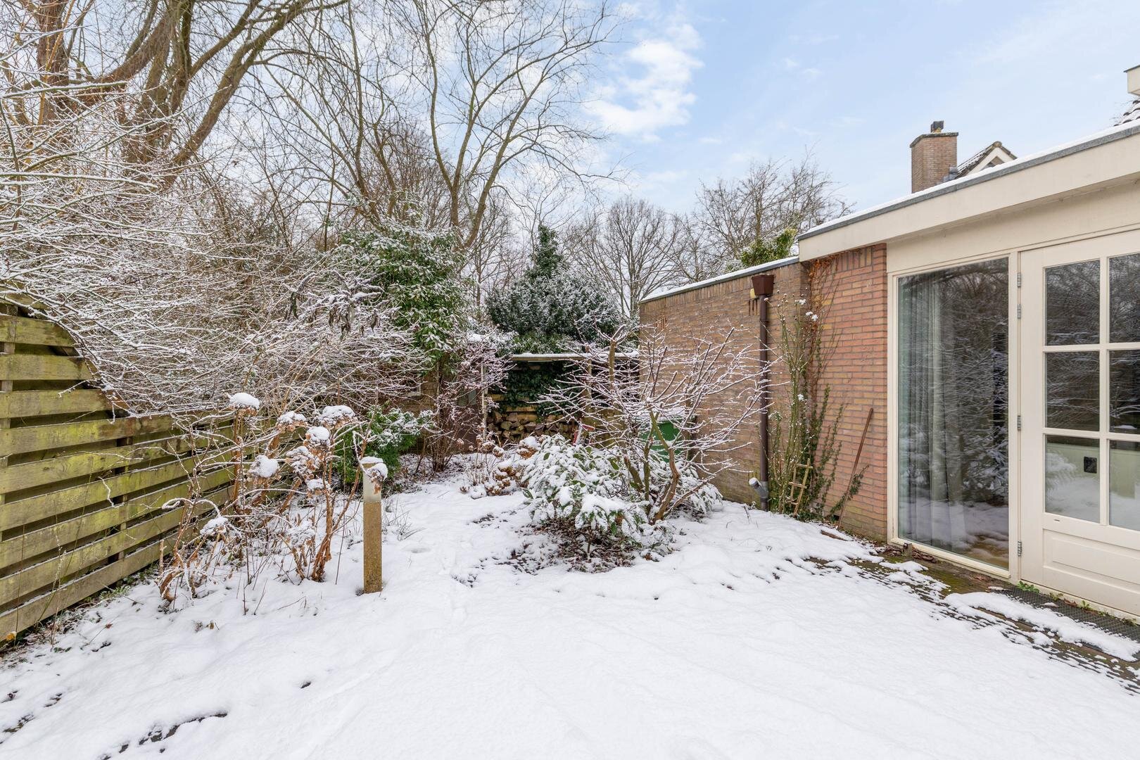 Overloop met opstelplaats voor het witgoed en de cv-installatie, slaapkamer van circa 13,5 m² met laminaatvloer en bergruimte achter de knieschotten.De tuin ligt op het zuiden en is aangelegd met een terras en borders met beplanting. Daarnaast is er een houtopslag aanwezig. Dankzij de openslaande deuren vanuit de woonkeuken ontstaat in de zomer een prettige verbinding tussen binnen- en buitenleven.* ruime 2-onder-1 kap met garage