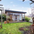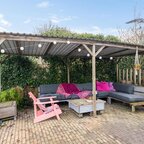 * Groenrijk aangelegde tuin met terrassen, aan het water met overkapte zit en vrijstaande wintertuin/serre