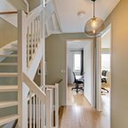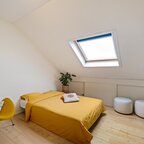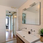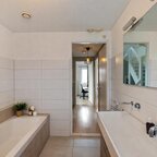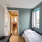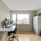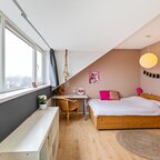 Overloop en drie ruime slaapkamers van ca. 7,4 m², 14 m² en 15,7 m².De badkamer (2016) is eveneens ruim (ca. 7,5 m²) en beschikt over een onderhoudsvriendelijke douche, ligbad, dubbele wastafel en tweede hangtoilet. Neutraal en stijlvol afgewerkt.Tweede verdieping: