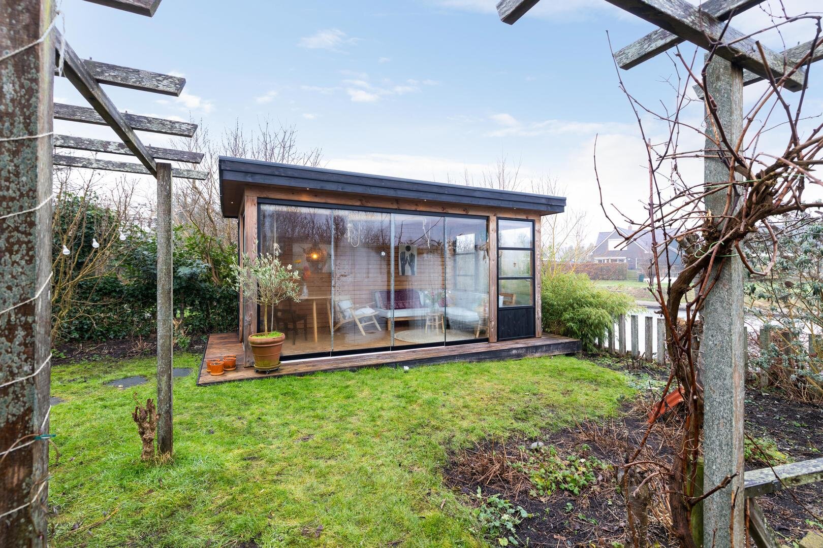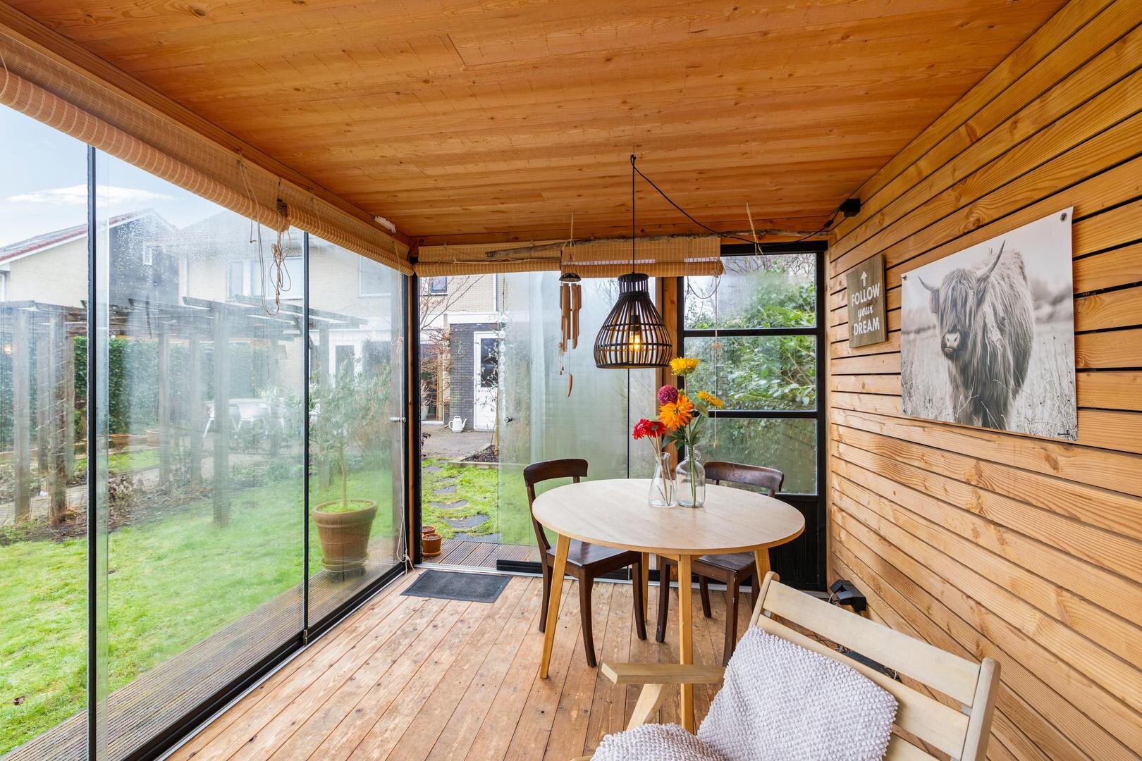 Overloop en twee slaapkamers van ca. 12 m² en 14,4 m². Dankzij de dakkapel is er extra veel ruimte en lichtinval op deze verdieping. Daarnaast is er een kast met daarin de technische installatie van de heteluchtverwarming en de WTW-unit.De aangebouwde garage is ca. 21 m² groot en biedt toegang tot de achtertuin. Aan de voorzijde een ruime oprit met plek voor meerdere auto'sDe achtertuin is bijna 19 meter diep en grenst aan het water. Met een zwemtrapje kun je eenvoudig het water in.De vrijstaande serre/wintertuin (gebouwd in 2022) van ca. 13 m² is een heerlijke plek om het hele jaar door te genieten van het natuurrijke uitzicht dankzij de vele glaspartijen. Deze zijn aan 3 kanten inschuifbaar, dus met mooi weer kun je alles helemaal open zetten. Er is stroom en bedraad internet aanwezig, waardoor deze ruimte ook uitstekend kan dienen als werkplek – en wie wil dat nu niet op zo’n plek?In de tuin zijn diverse terrassen aangelegd, waaronder een overkapte zitplek vlak bij het water waar je de laatste zonnestralen kunt opvangen. Daarnaast is er een buitenkraan aanwezig. Ook de voortuin is royaal en groenrijk aangelegd.* Houtskeletbouw, heteluchtverwarming: duurzaam en energiezuinig wonen