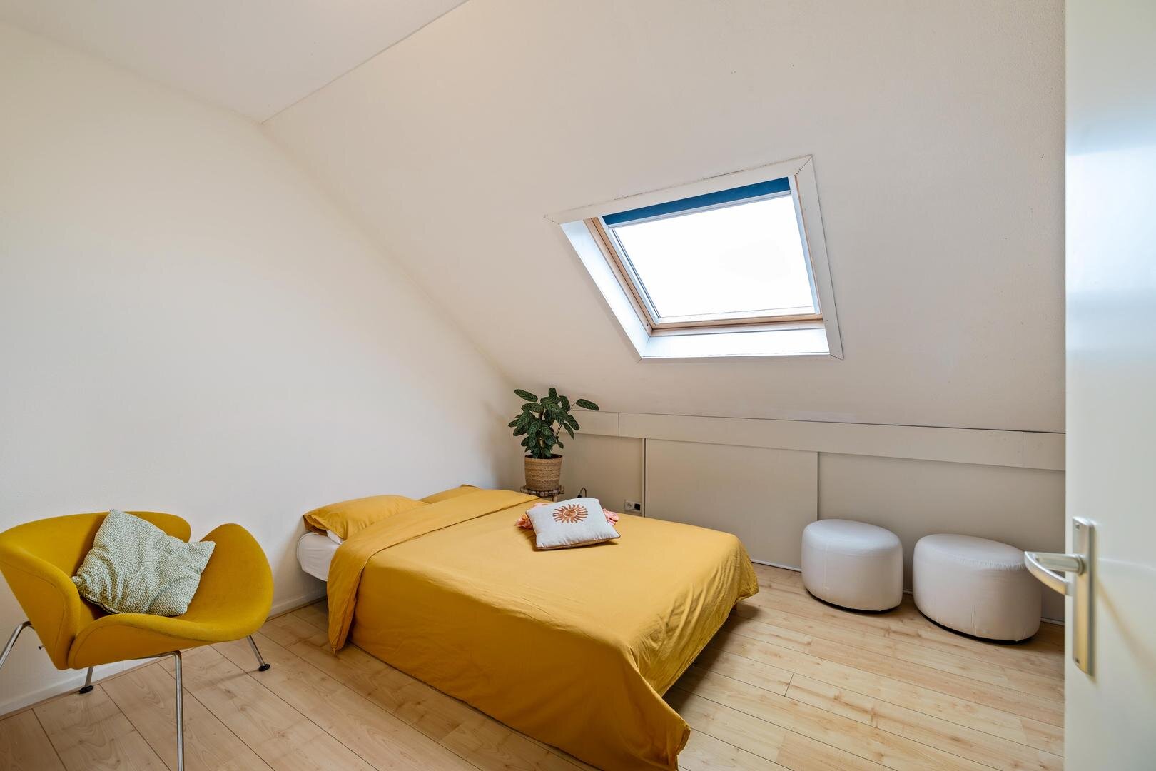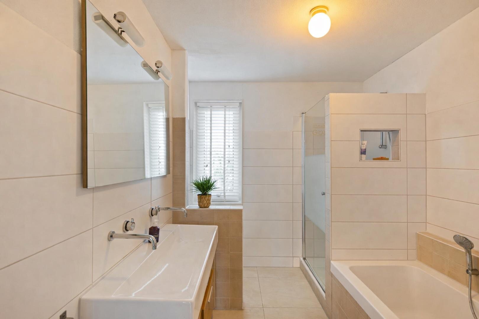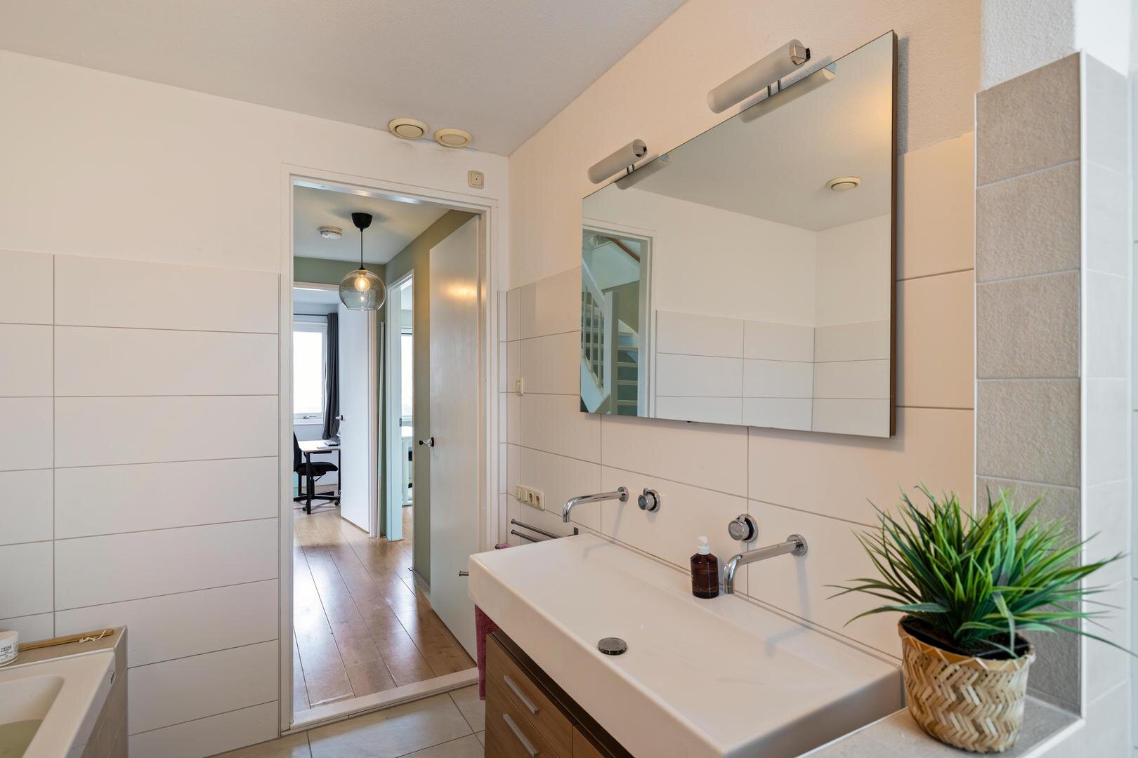 Overloop en drie ruime slaapkamers van ca. 7,4 m², 14 m² en 15,7 m².De badkamer (2016) is eveneens ruim (ca. 7,5 m²) en beschikt over een onderhoudsvriendelijke douche, ligbad, dubbele wastafel en tweede hangtoilet. Neutraal en stijlvol afgewerkt.Tweede verdieping: