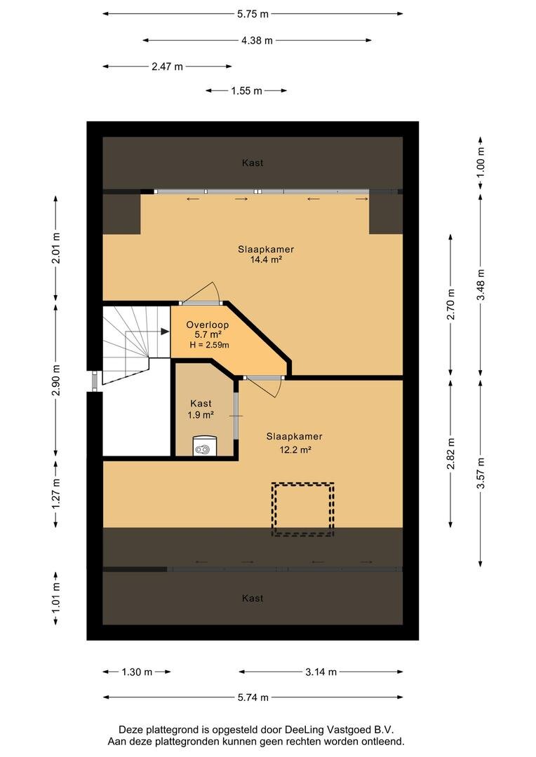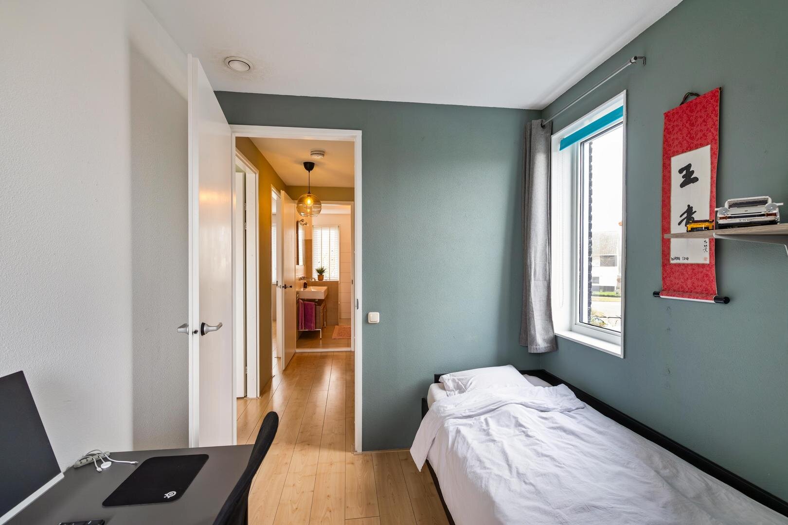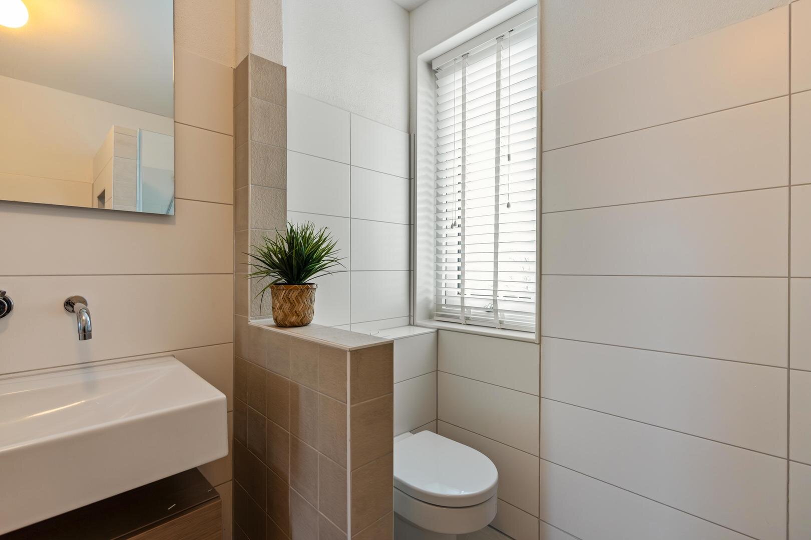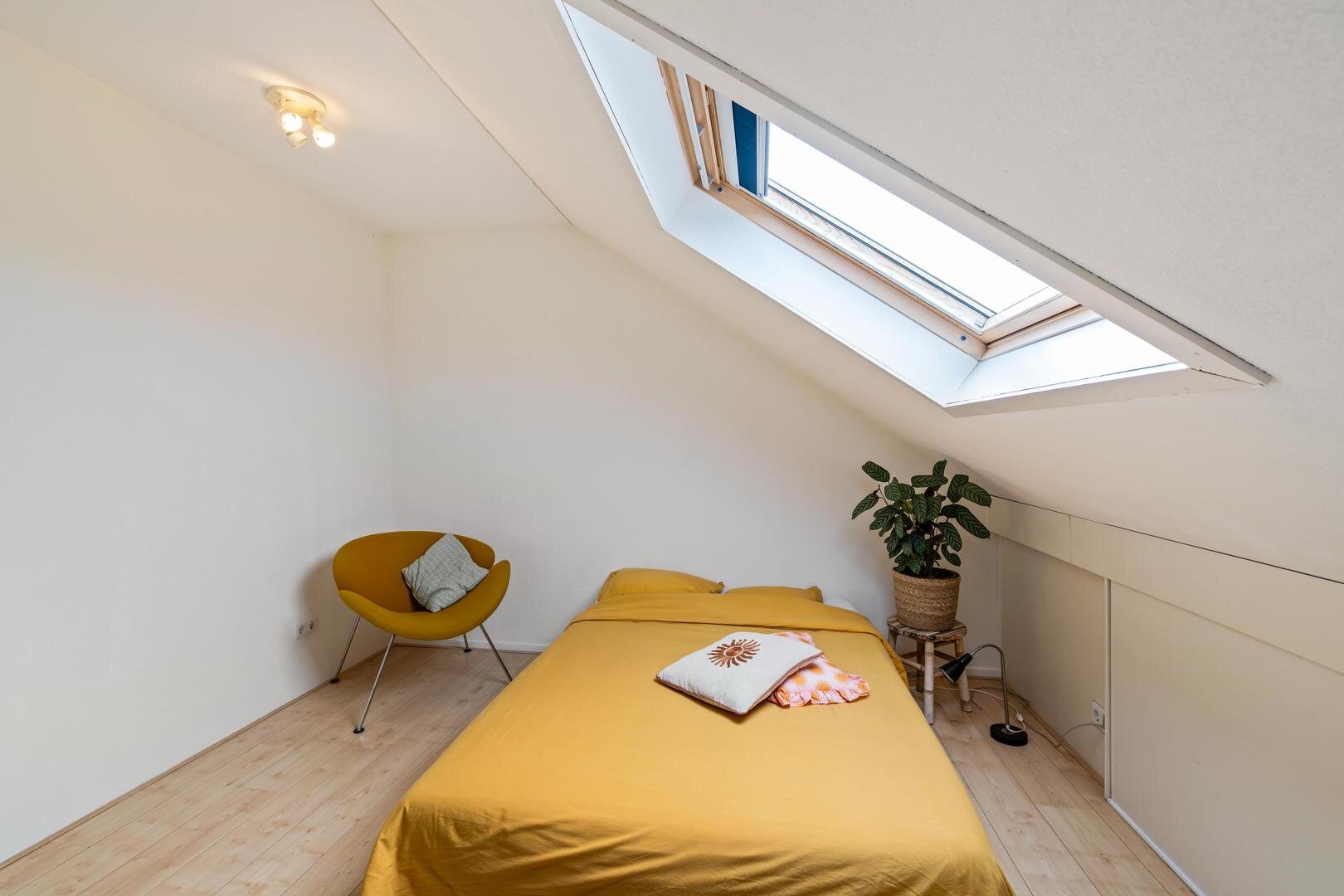 Overloop en drie ruime slaapkamers van ca. 7,4 m², 14 m² en 15,7 m².De badkamer (2016) is eveneens ruim (ca. 7,5 m²) en beschikt over een onderhoudsvriendelijke douche, ligbad, dubbele wastafel en tweede hangtoilet. Neutraal en stijlvol afgewerkt.Tweede verdieping: