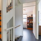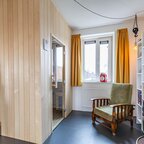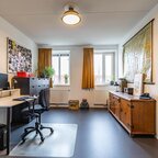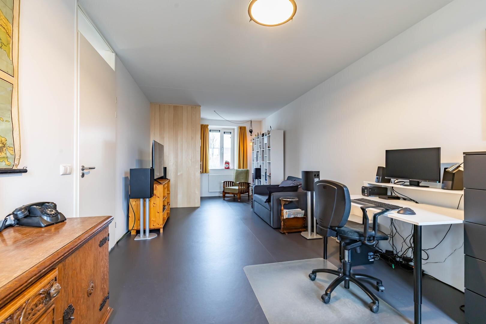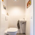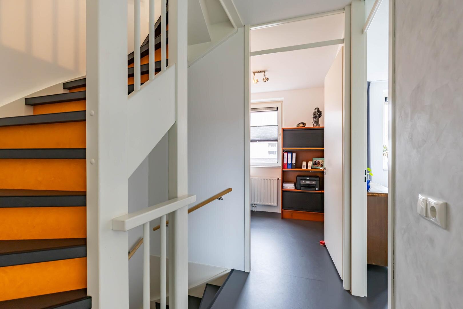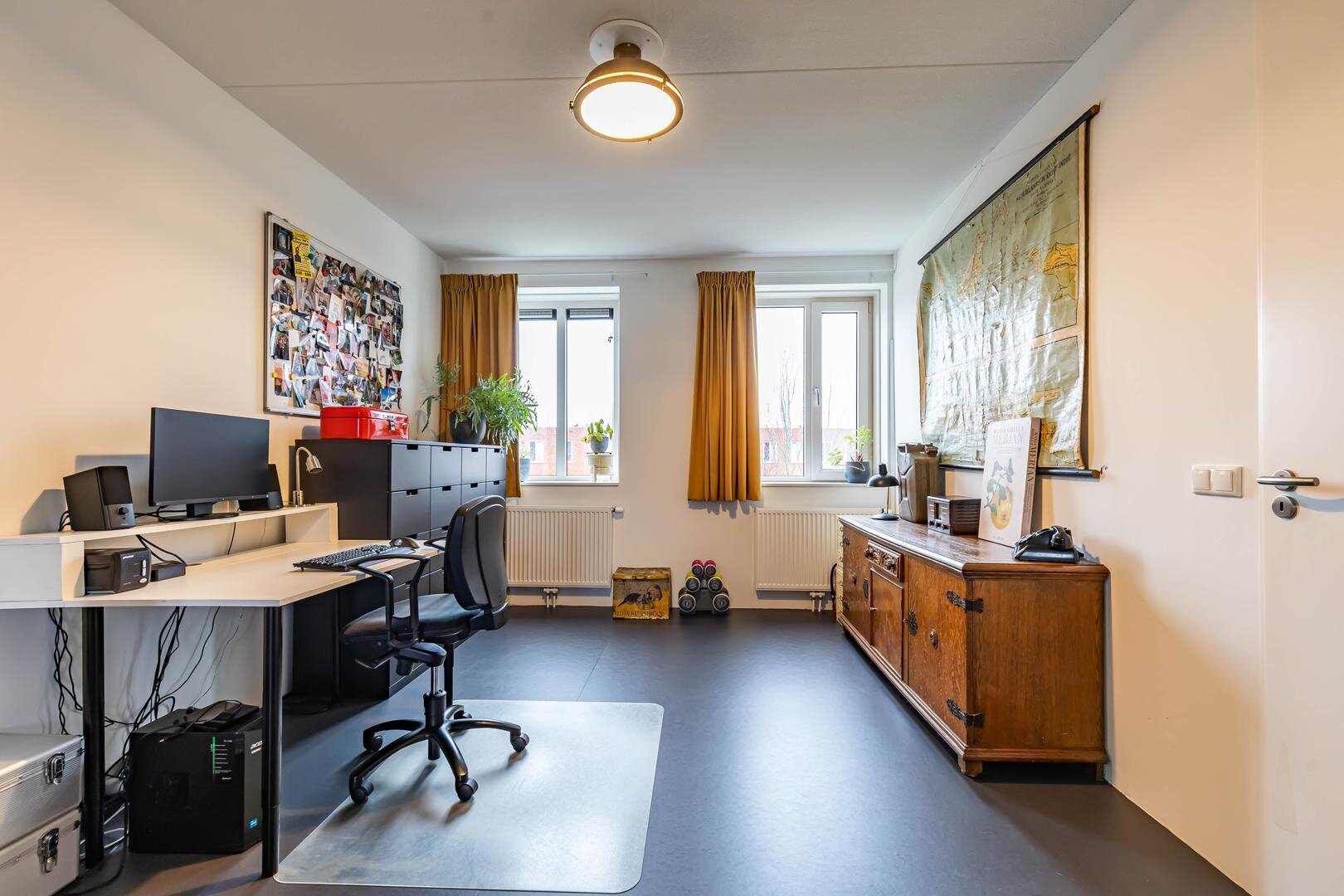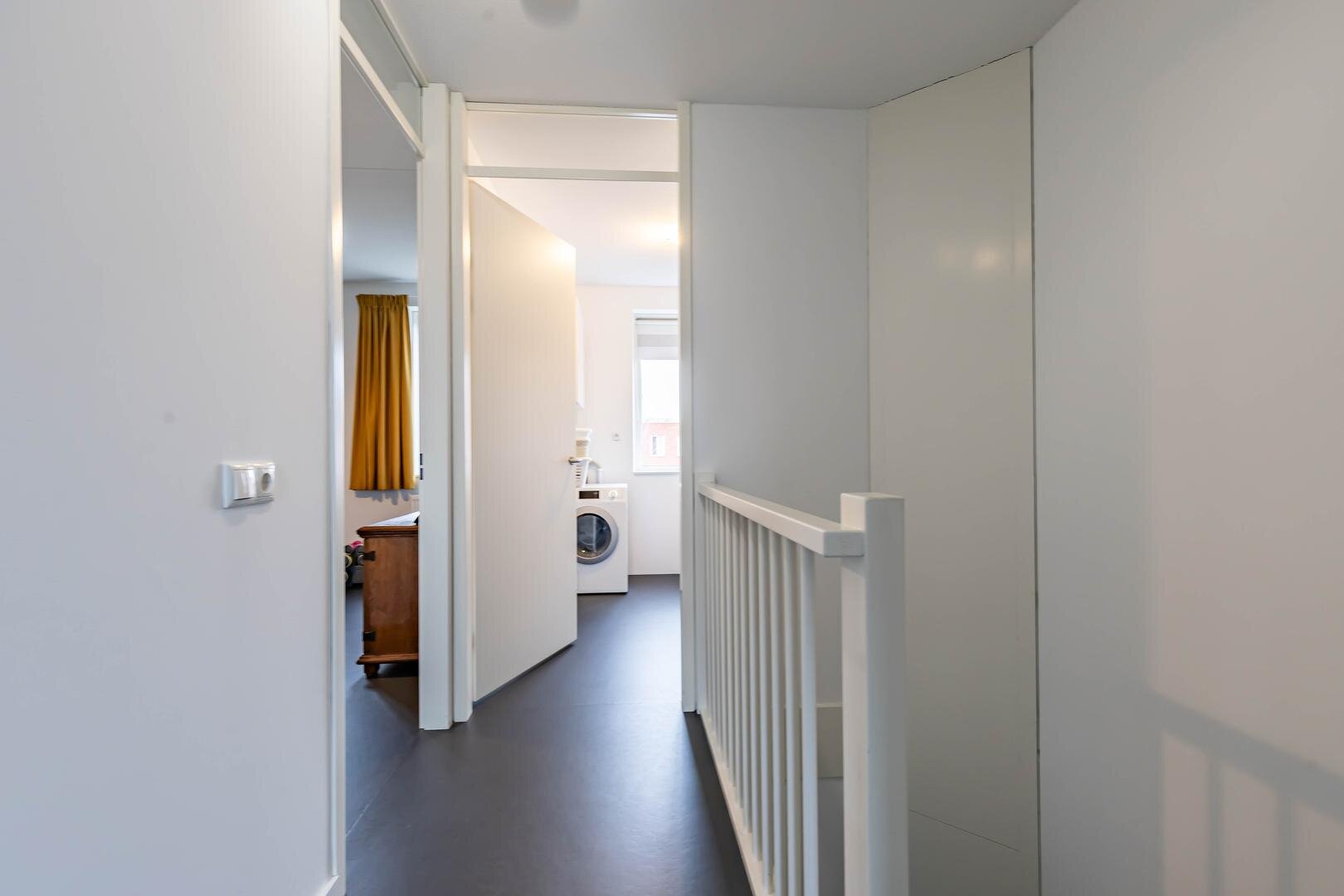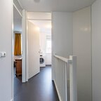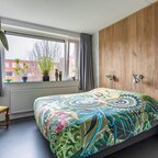 Overloop, drie slaapkamers van ca. 6 m² en 12 m² aan de achterzijde en een slaapkamer van ca. 13 m² aan de voorzijde met een grote vaste kastenwand en een sfeervol houten paneel als hoofdbord bij het bed. Alle ruimtes zijn voorzien van een hoogwaardige marmoleumvloer. De badkamer is ruim en stijlvol uitgevoerd met een inloopdouche, tweede toilet, wastafelmeubel met spiegel en een separate hangkast.Tweede verdieping