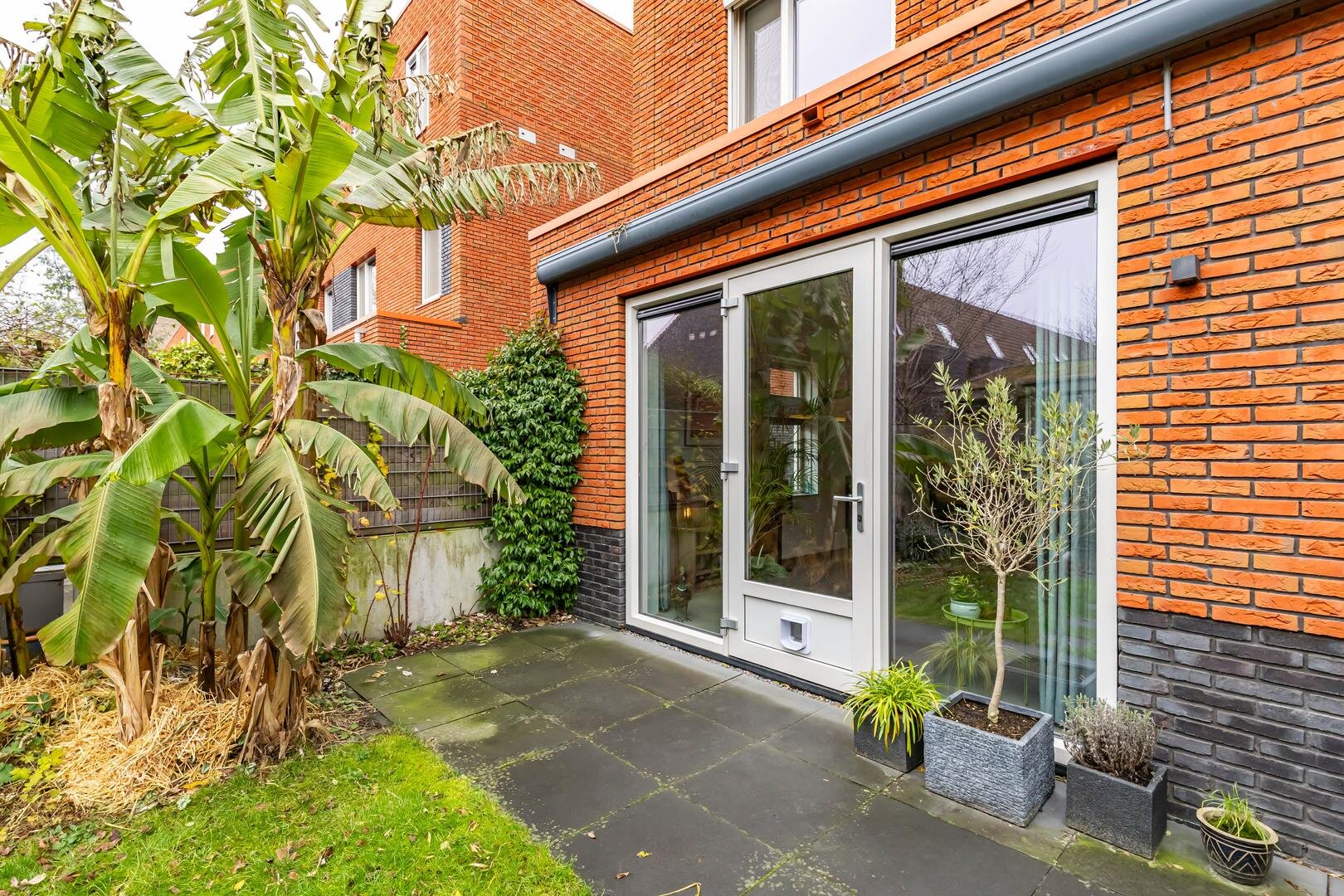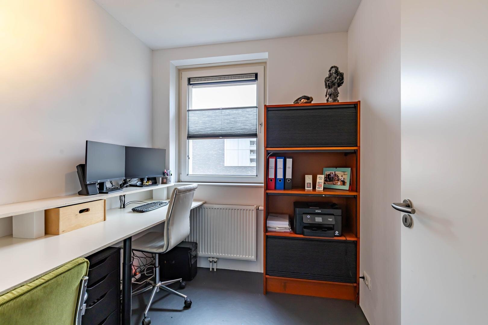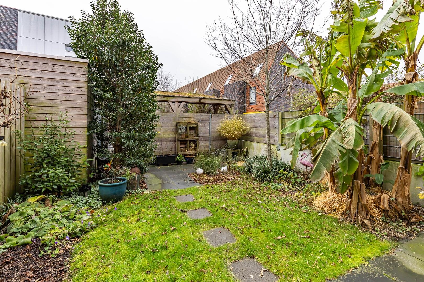 De achtertuin is groenrijk aangelegd als een waar paradijsje en ligt op het zuiden, waardoor je de hele dag van de zon kunt genieten. Voor schaduw op warme dagen is er een elektrisch zonnescherm over de volledige breedte van het terras geplaatst. Zo kun je hier op elk moment van de dag comfortabel buiten zitten.In de tuin staat een houten schuur van ca. 5 m² met voldoende bergruimte voor fietsen en tuingereedschap. Naast deze berging en onder de carport is ruimte voor twee eigen parkeerplaatsen — een absolute meerwaarde in deze zone met betaald parkeren.* gebouwd in 2017, duurzaam, uitstekend onderhouden, energielabel A+++
