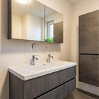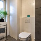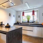 * moderne keuken én badkamer, screens voor de opengaande ramen