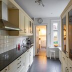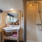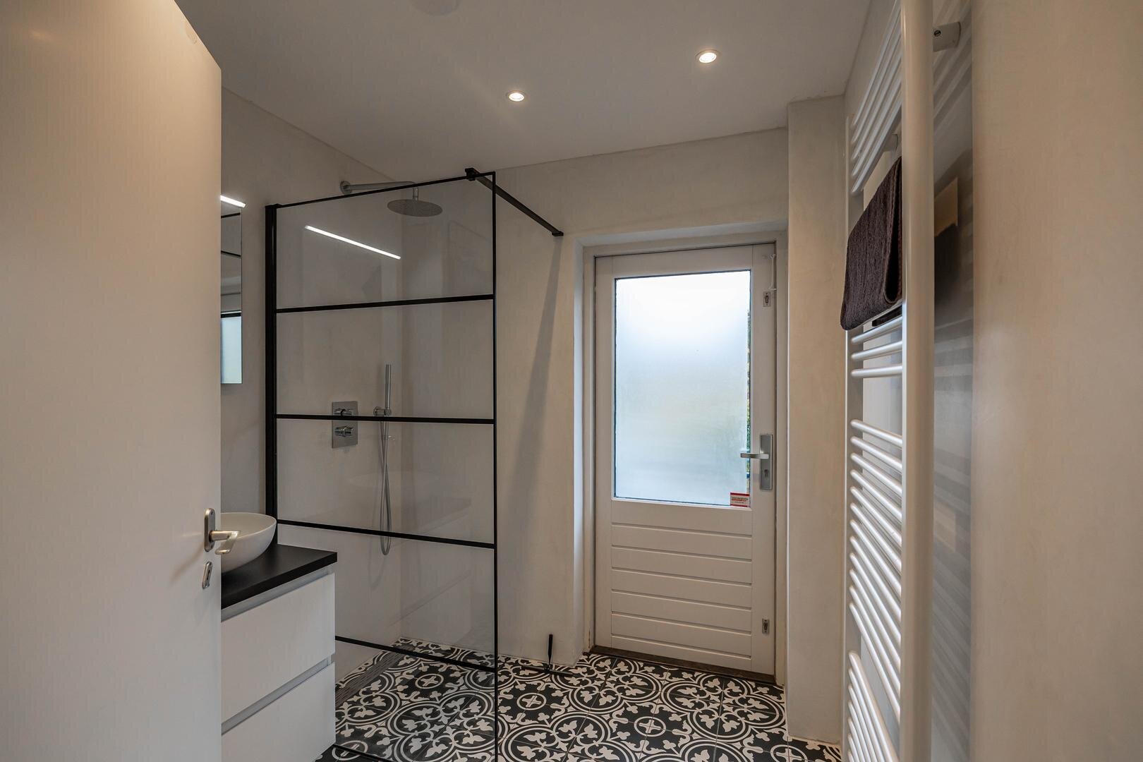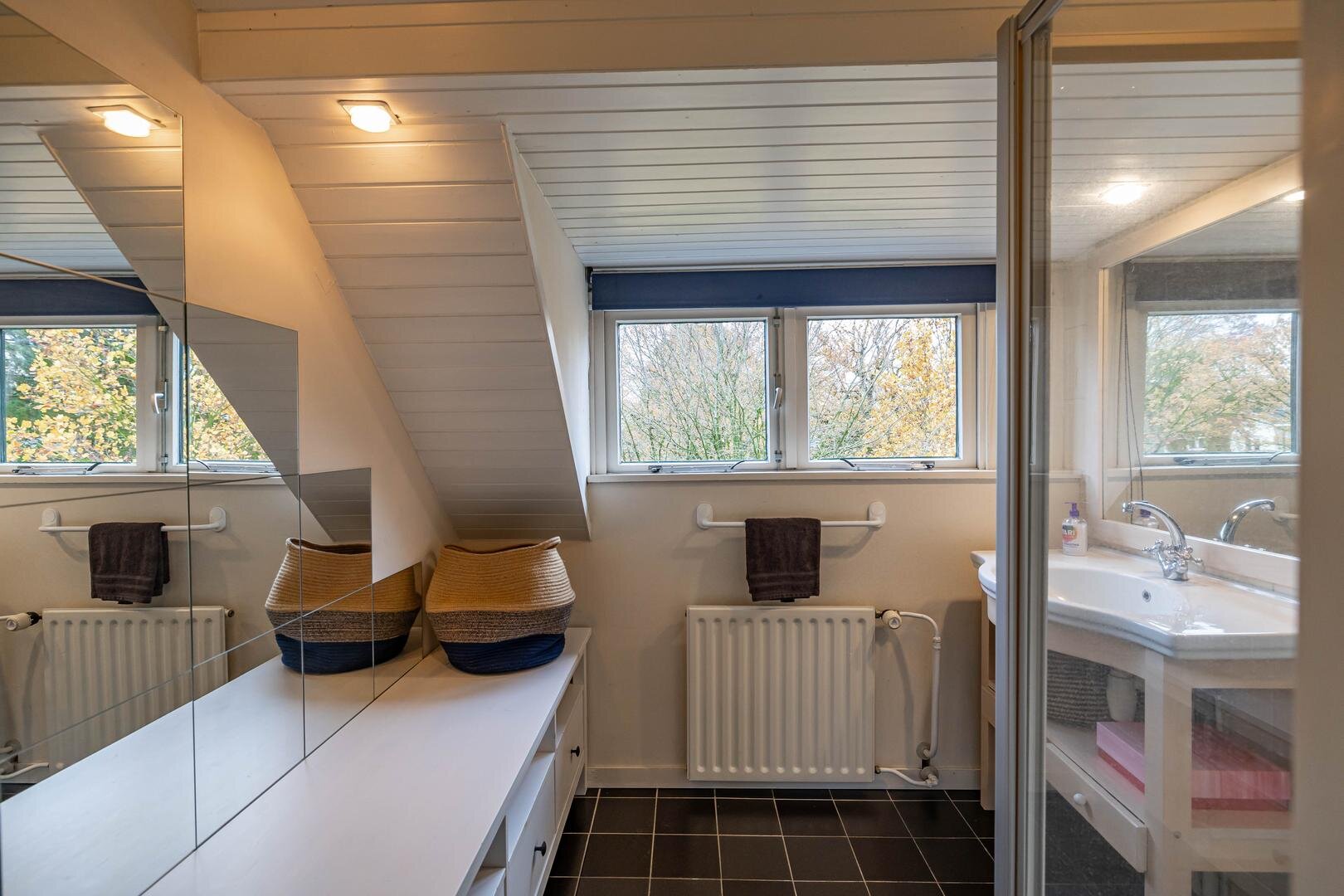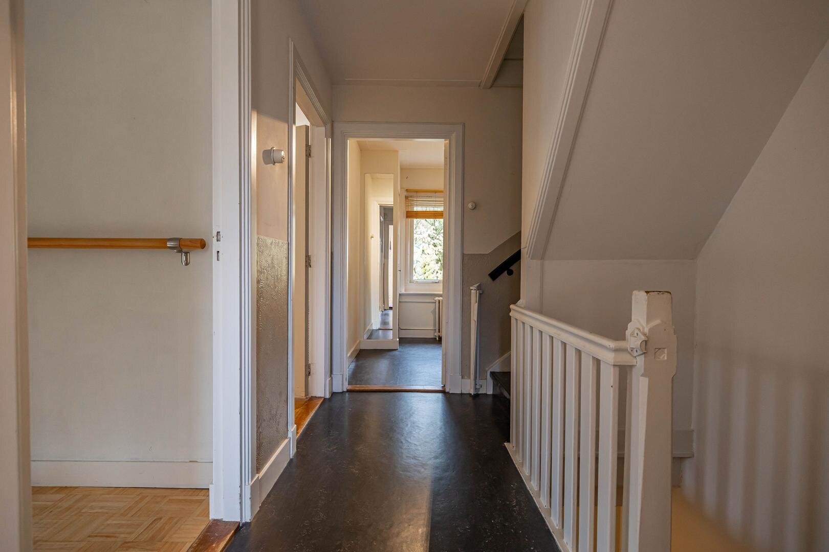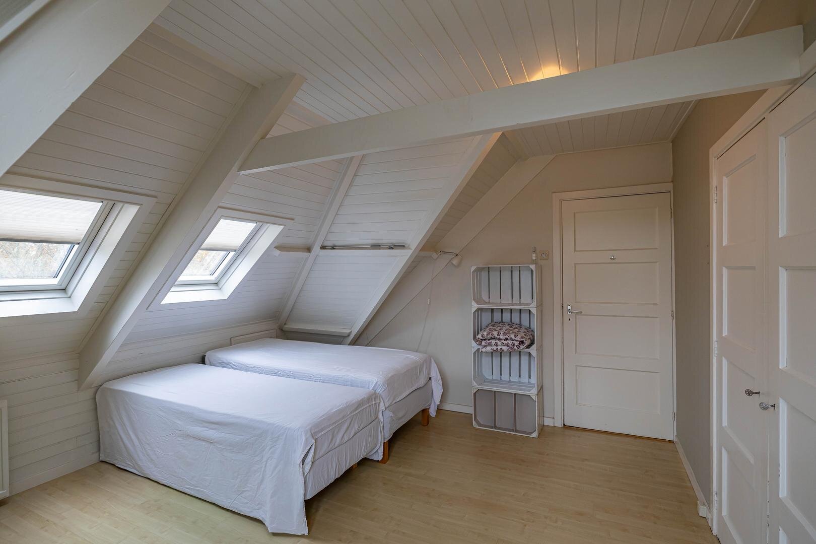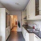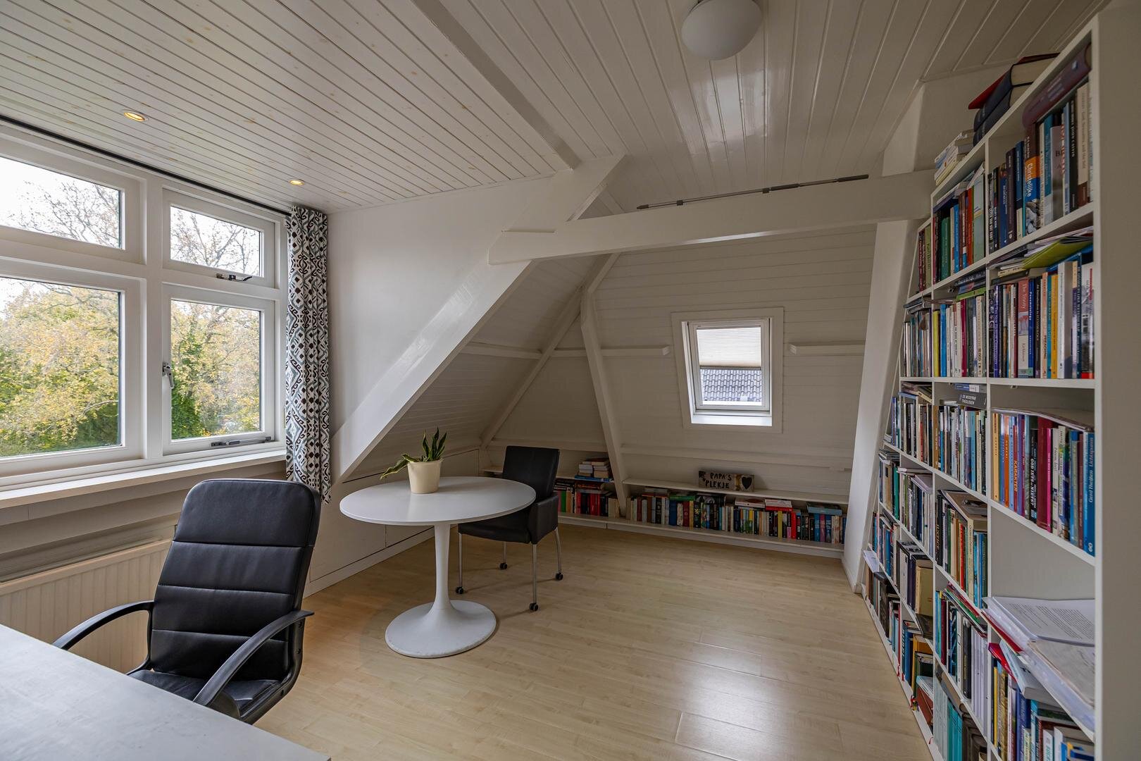 Grenzend aan de hal vinden we verder het moderne toilet en de kelder, die ruim en droog is. De keuken is uitgerust met een uitgebreide, functionele keukenopstelling. Een landelijke stijl voert hier de boventoon, passend bij het huis. De inbouwapparatuur bestaat uit een inductiekookplaat met afzuigkap, koelkast, oven (2018) en vaatwasser (2023). Verder is er volop kastruimte. De aangrenzende bijkeuken heeft een uitgebreide opstelling voor witgoed en biedt veel bergruimte. Vanuit hier kun je de achtertuin bereiken.Eerste verdieping: overloop met toegang tot de in 2022 gemoderniseerde badkamer met inloopdouche, tweede hangtoilet en waskom op meubel, uitgevoerd met zwart-witte accenten en bijpassende tegelvloer. Vanaf hier is er toegang tot een balkon van ca. 5 m². Op deze verdieping zijn twee grote slaapkamers: ca. 16 m² aan de achterzijde met vaste kasten, en ca. 21 m² aan de voorzijde, met toegang tot het balkon van 3,6 m². Beide kamers zijn voorzien van een mooie mozaïek-parketvloer. Verder is er nog de werk-/slaapkamer van ca. 5,2 m² met vaste kast en glas-in-looddeur als toegang.Tweede verdieping: overloop, derde toilet (sanibroyeur) en twee royale slaapkamers met sfeervolle elementen dankzij de kapconstructie: ca. 12 m² met vaste boekenkasten en 13 m² met Velux-dakramen voor extra lichtinval. Beide kamers zijn voorzien van vaste kasten. De badkamer op deze woonlaag beschikt over een douchecabine en een breed wastafelmeubel met wastafel – ideaal voor logés of tieners die hun eigen plek in huis zoeken.