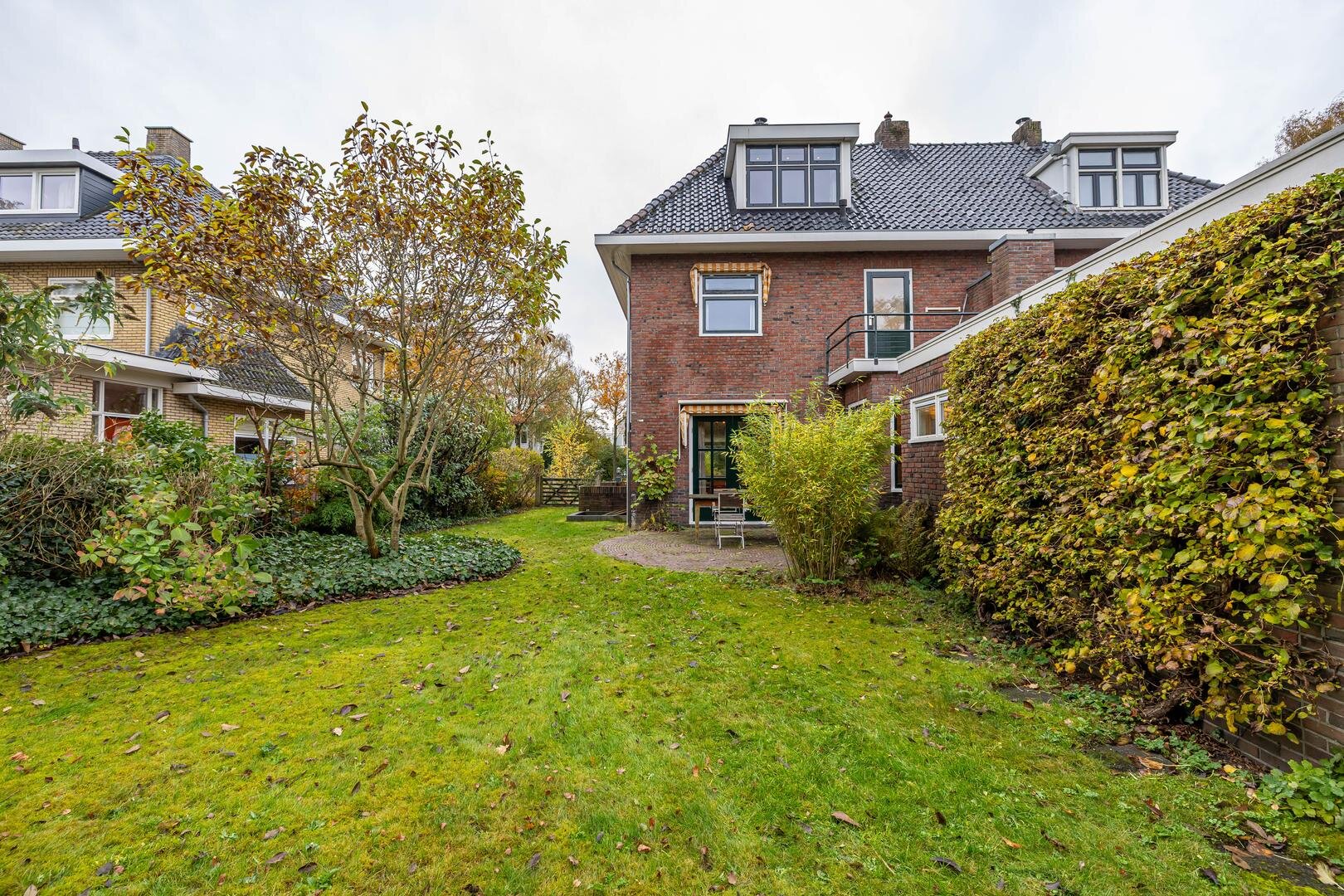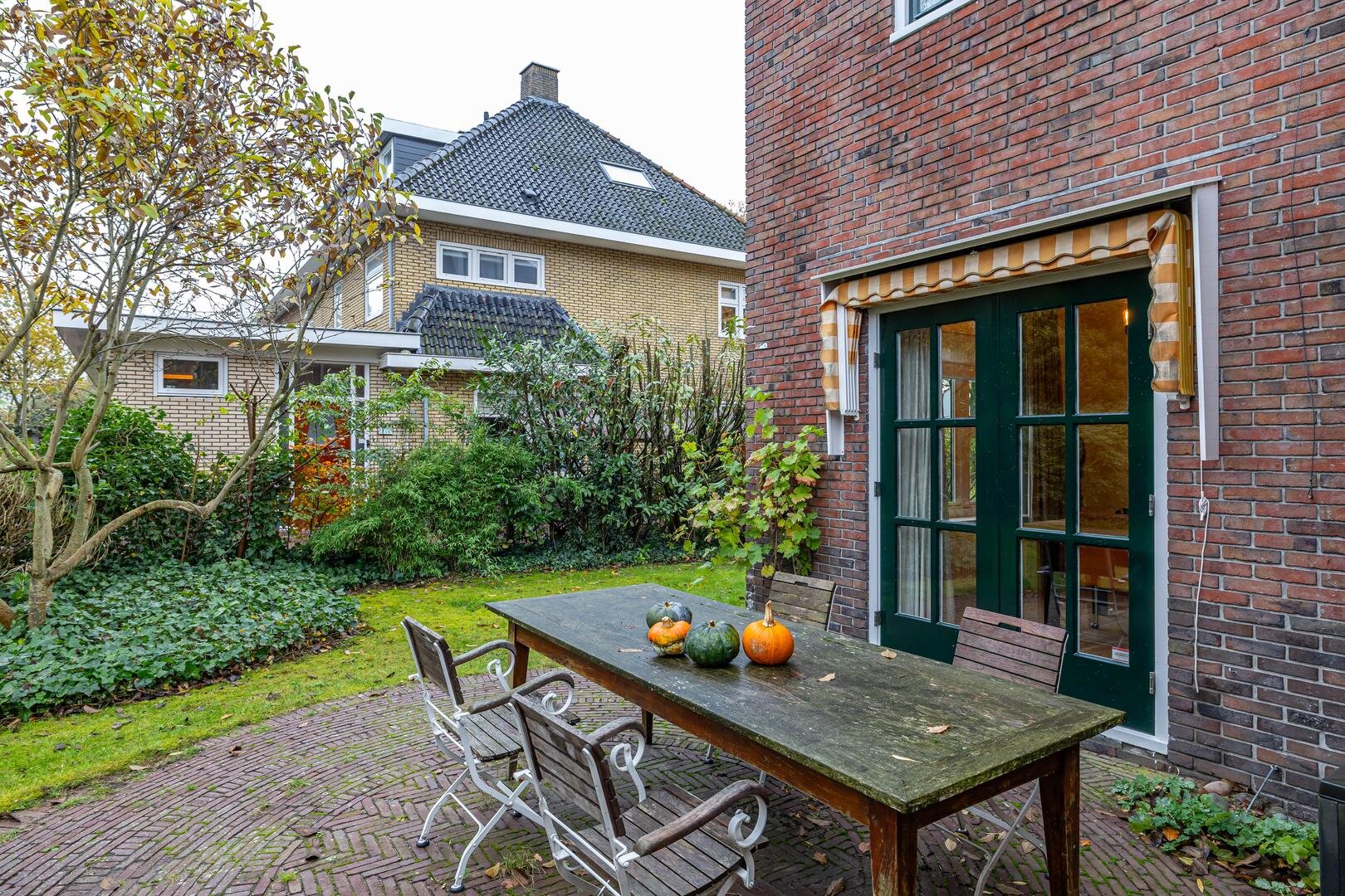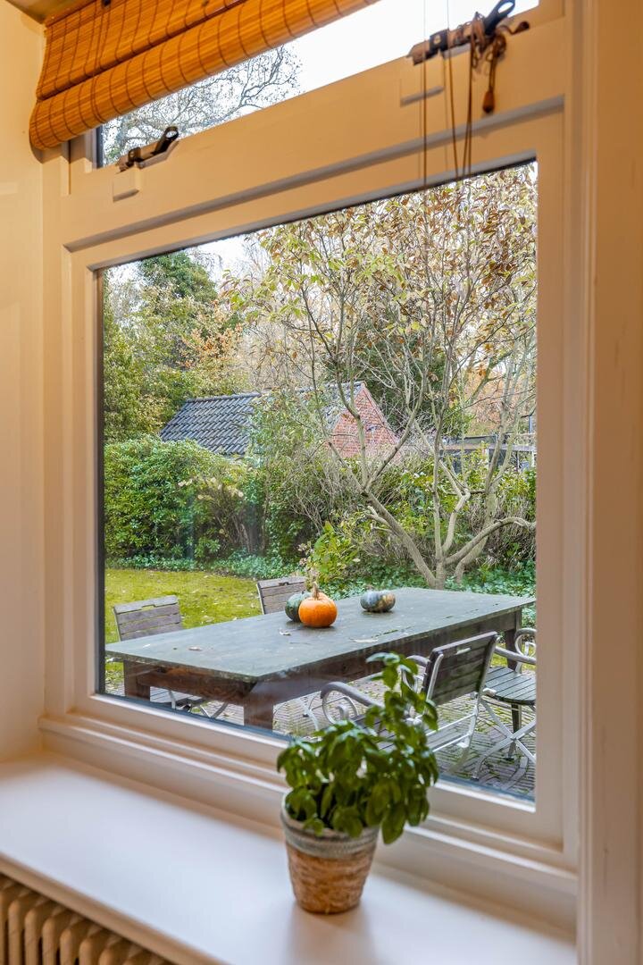 Boven het huis is nog een vliering met prettige opbergruimte te vinden.Aangrenzend aan het huis bevindt zich de garage/berging van ca. 17 m² met veel bergruimte voor fietsen, tuingereedschap e.d., maar er zou ook prima een auto kunnen staan – ideaal als je bijvoorbeeld een oldtimer wilt stallen.De groenrijke en fraai aangelegde tuin beperkt zich niet tot de achtertuin, maar omvat ook de zij- en voortuin. Het geheel loopt naadloos in elkaar over, zodat je van ’s ochtends vroeg in het oosten tot in de avondzon in het westen kunt genieten wanneer het zonnetje schijnt.*Rondom voorzien van fraaie markiezen, passend bij de statige uitstraling