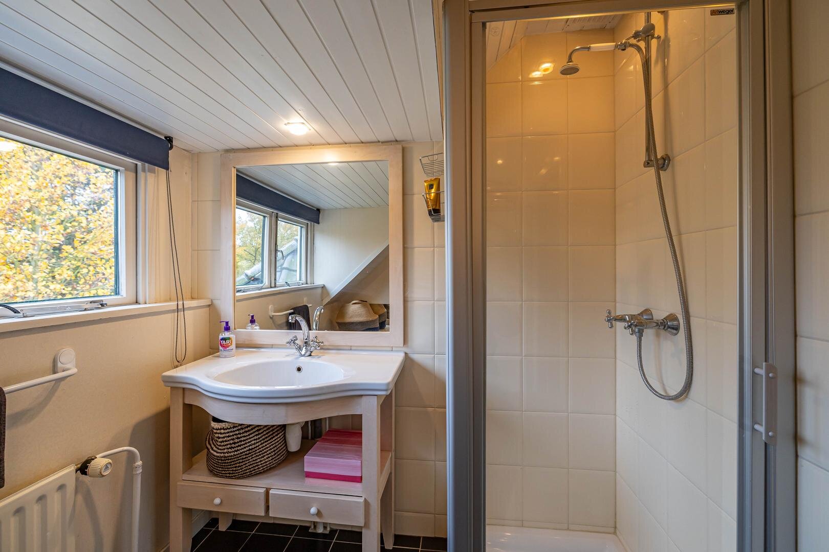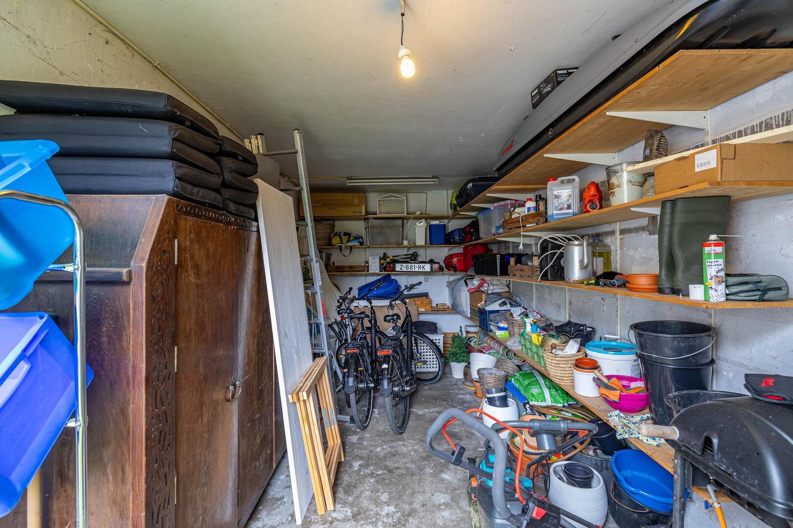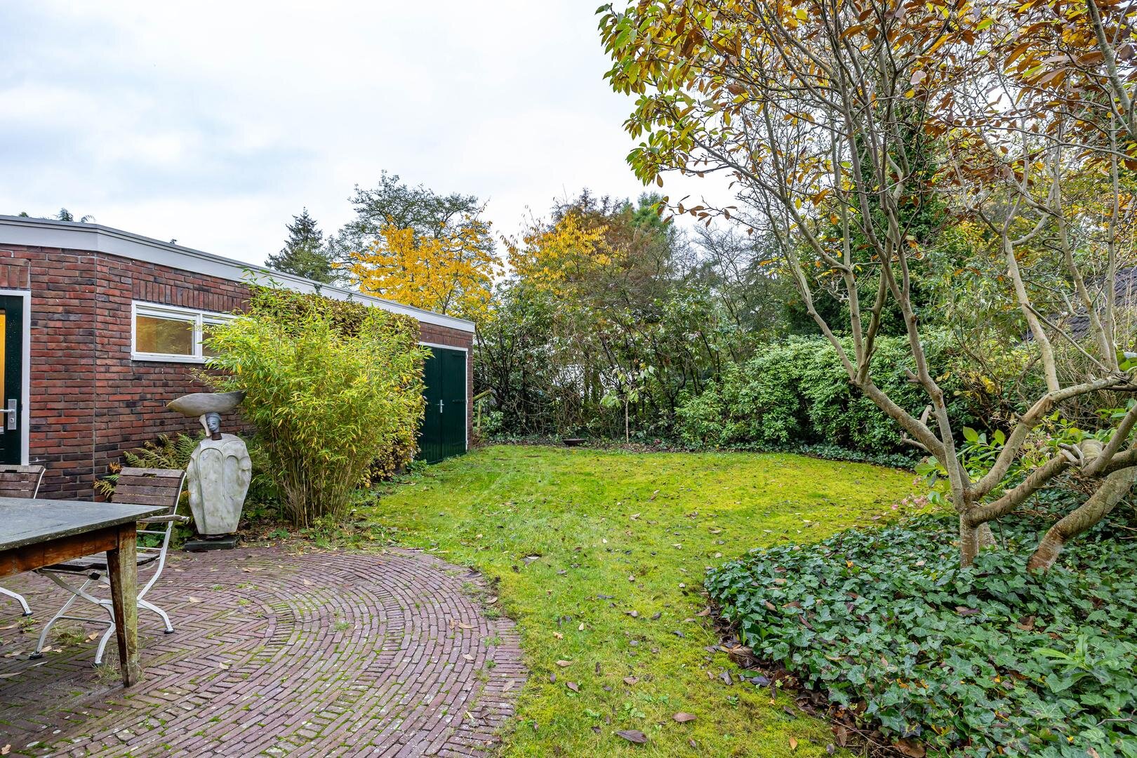 Boven het huis is nog een vliering met prettige opbergruimte te vinden.Aangrenzend aan het huis bevindt zich de garage/berging van ca. 17 m² met veel bergruimte voor fietsen, tuingereedschap e.d., maar er zou ook prima een auto kunnen staan – ideaal als je bijvoorbeeld een oldtimer wilt stallen.De groenrijke en fraai aangelegde tuin beperkt zich niet tot de achtertuin, maar omvat ook de zij- en voortuin. Het geheel loopt naadloos in elkaar over, zodat je van ’s ochtends vroeg in het oosten tot in de avondzon in het westen kunt genieten wanneer het zonnetje schijnt.*Rondom voorzien van fraaie markiezen, passend bij de statige uitstraling