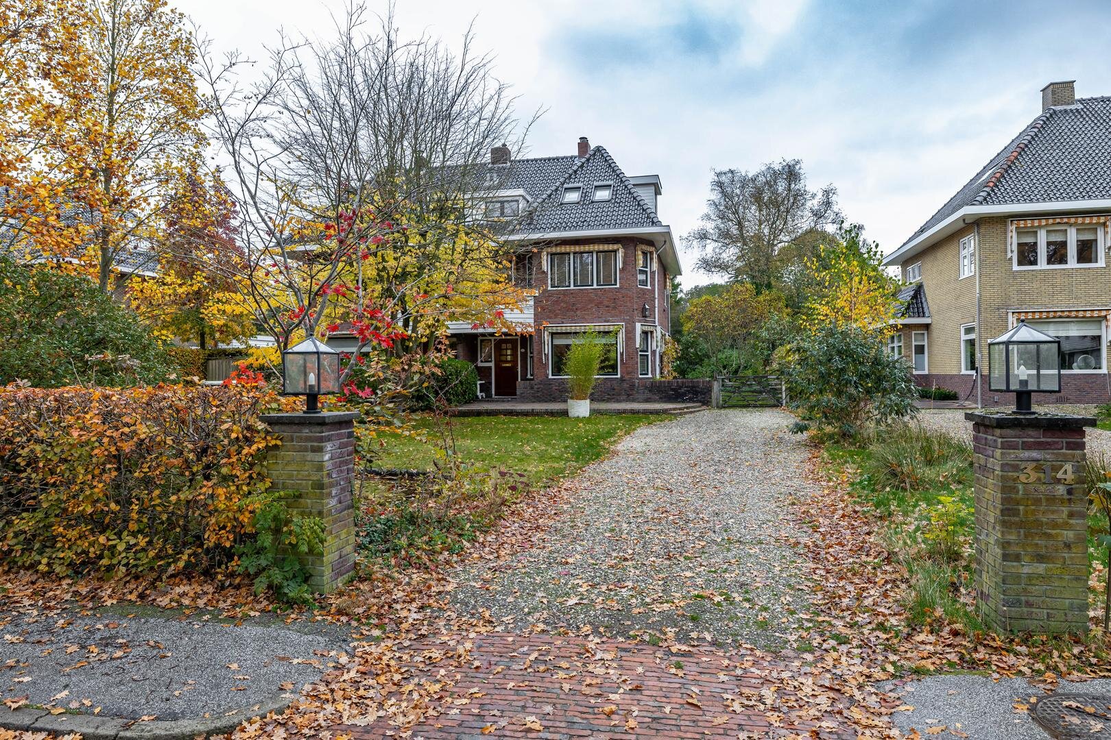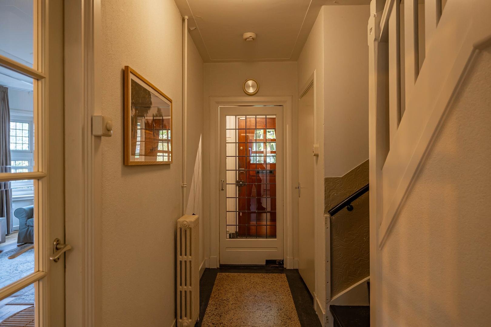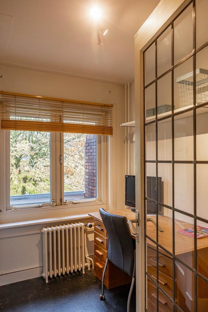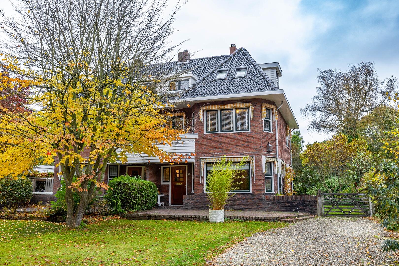Een klassieke schoonheid: dit authentieke helft-van-een-dubbel woonhuis uit 1933 met zijn robuuste uitstraling en lange oprijlaan. Het geheel is door de jaren heen goed onderhouden en de sfeervolle details, zoals het glas-in-lood, zijn altijd behouden. Met een woonoppervlak van 173 m², vier royale slaapkamers en twee badkamers heb je hier een fijne leefruimte op een geweldige locatie in het geliefde Haren. Deze lommerrijke laan is een statige straat waar geschiedenis en groen in harmonie samenkomen. Alle voorzieningen van het centrum van Haren zijn op korte afstand bereikbaar, en toch ervaar je hier de rust van het buitenaf wonen.Indeling: statige buitenentree met bordes, leidend naar de voordeur met daarachter het tochtportaal met taatsdeur voorzien van glas-in-lood en de fraaie granitovloer, die ook in de hal ligt. De woonkamer is ca. 39 m² groot en vanuit hier bereikbaar. Hier ligt een prachtige parketvloer met warme uitstraling, die de sfeer van de living onderstreept, samen met de open haard. Je kijkt door de vele raampartijen uit op de voor-, zij- en achtertuin, dus de verbinding met het groen is er altijd. Aan de zijkant én achterkant zijn er openslaande deuren om heerlijk de tuin in te stappen.