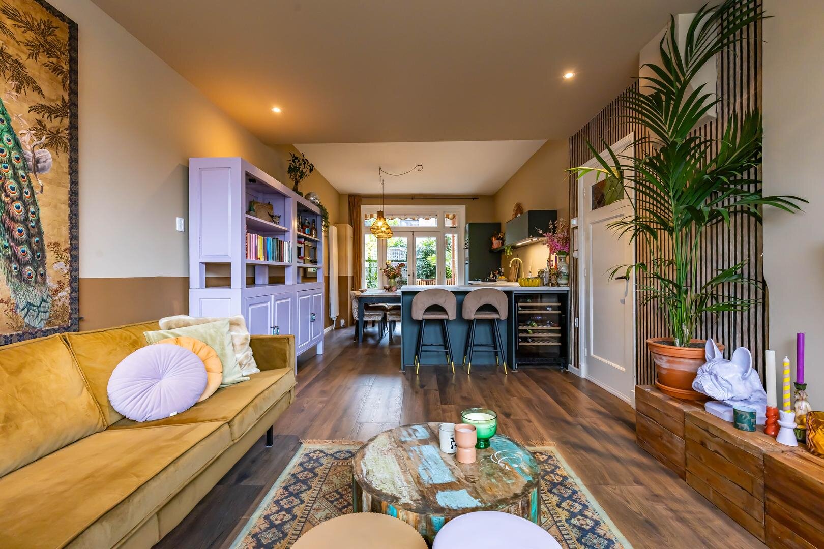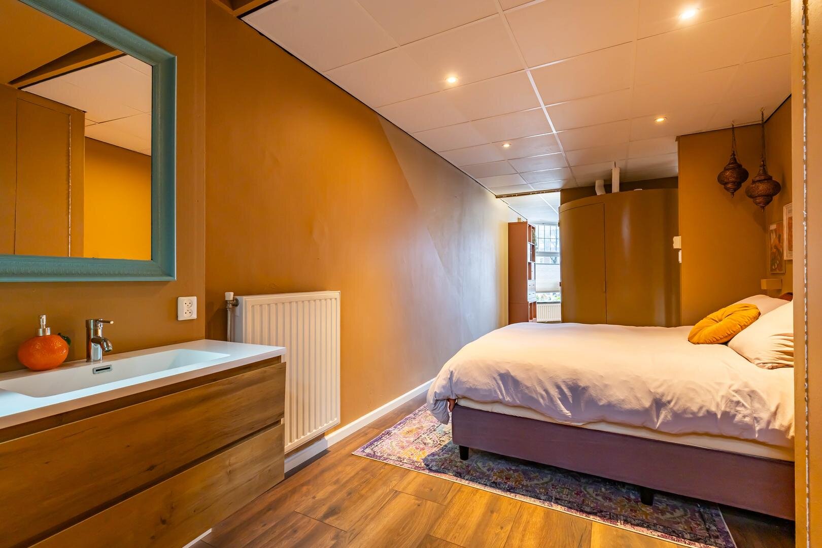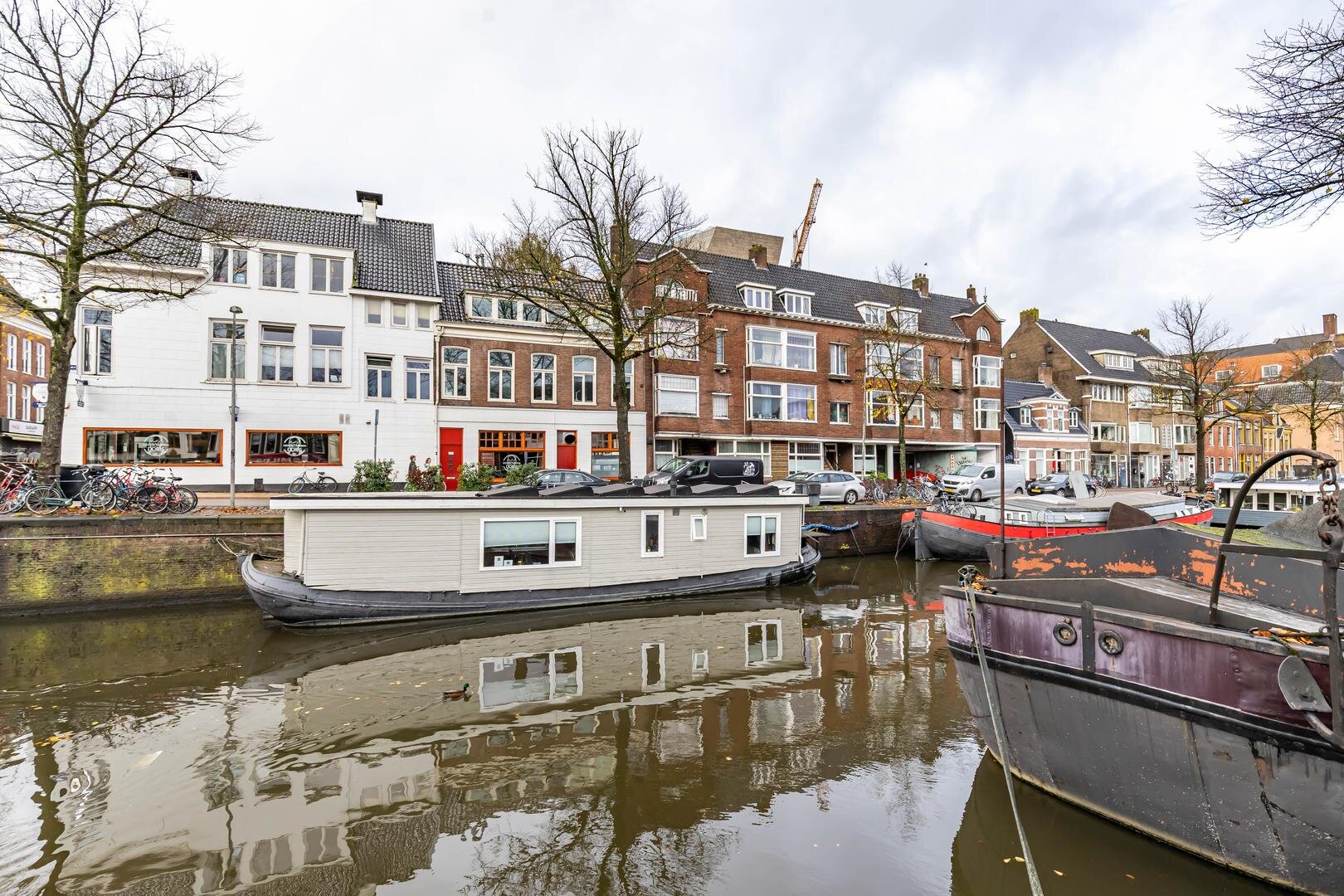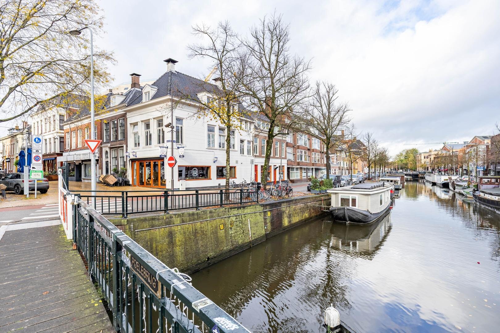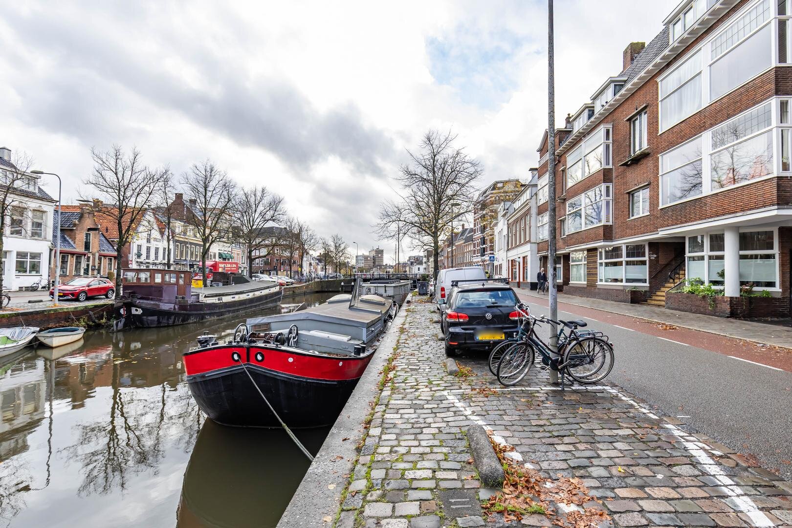 Dat is deze benedenwoning met tuin op het westen, op een fantastisch plekje aan doorgaand vaarwater. Van binnen is het huis smaakvol en passend in de huidige tijd gemoderniseerd, wat het geheel een eigentijdse uitstraling geeft. Instapklaar is dan haast een understatement. Het bruisende centrum ligt hier letterlijk aan je voeten, en vanuit de tuin voel je hoe dichtbij onder andere het Forum is. In de zomer zie je de boten voorbijvaren, de mensen op de terrasjes en geniet je van alles wat onze geweldige stad te bieden heeft.Indeling: entree/ruime hal van 7 m², keurig toilet en aan de linkerzijde toegang tot de royale woonkamer met open keuken, samen circa 33 m² groot. Hier proef je direct de sfeer die in het hele huis te vinden is: smaakvol en met oog voor detail. Door kleur- en materiaalgebruik ervaar je dat warme, knusse gevoel, wat een mooie lijn vormt met het bouwjaar van 1936, gecombineerd met de glas-in-loodramen. De raampartijen aan de voorzijde bieden een fijn zicht op het water, en aan de achterzijde is er de open en prettige verbinding met de prachtige matgroene keuken uit 2023, met zitje aan het schiereiland. Hier is zelfs een klimaatkast ingebouwd. Het marmerlook werkblad en de messing accenten onderstrepen de luxe uitstraling.Alle apparatuur is verder aanwezig, zoals een vaatwasser, oven, gaskookplaat, koelkast met vriesvak en volop opbergruimte in de vele lades, kastjes, bovenkastjes en op de bijpassende planken. Er is voldoende ruimte voor een grote eethoek, en alles is tot in de puntjes afgewerkt. Een fraai geheel, zeker met de openslaande deuren naar de tuin, zodat in de mooie maanden binnen en buiten naadloos in elkaar overlopen.Vanuit de hal is aan de rechterzijde de slaapkamer met walk-in closet bereikbaar, in totaal maar liefst 23 m² groot. De ruimte is efficiënt en niet dertien in een dozijn ingericht, met plek voor een groot bed, een wastafelmeubel met spiegel in de hoek en – als kers op de taart – de rond vormgegeven doucheruimte met betonafwerking en messing accenten.Achter deze riante slaapruimte ligt de serre met glazen pui en opbouw, een unieke aanbouw met daarin nu plek voor de wasmachine en droger, maar zeker ook geschikt als werkkamer, atelier of hobbyruimte. De tweede slaapkamer van circa 8 m² is bereikbaar vanuit de hal en biedt eveneens toegang tot de tuin via de schuifpui. Er is een leuke vaste kast, en ook deze ruimte is multifunctioneel inzetbaar. Vanuit deze kamer is een ruime kelder bereikbaar, waar de cv-installatie hangt en voldoende bergruimte aanwezig is.De achtertuin maakt het plaatje compleet, met haar ligging op het westen en het zicht op het Forum. Besloten en uniek dankzij de glazen uitbouw en het uitzicht. Onderhoudsvriendelijk, met haast een mediterraan tintje.*sfeervolle benedenwoning met tuin aan de rand van het stadscentrum