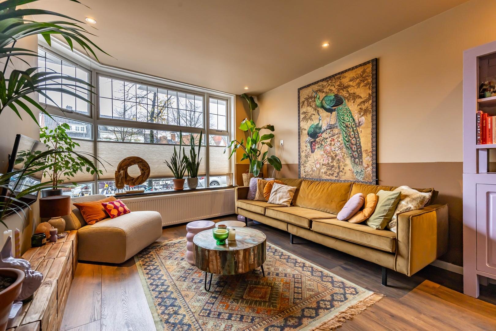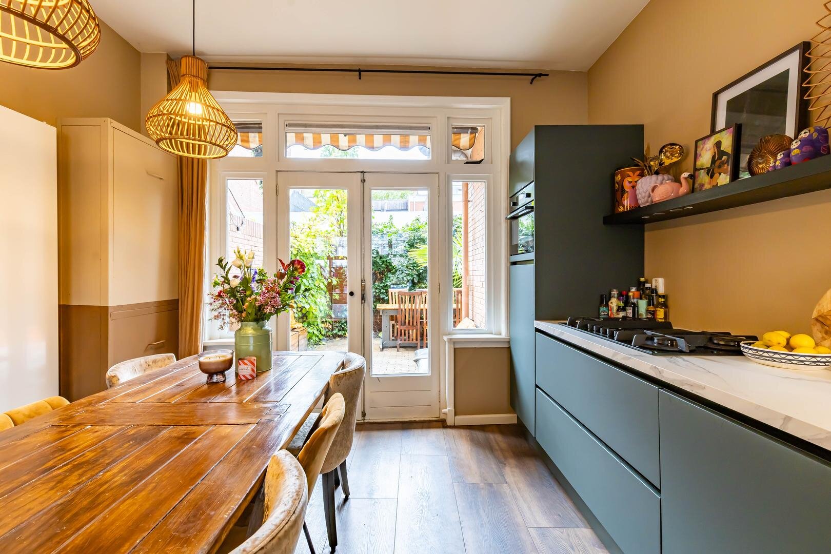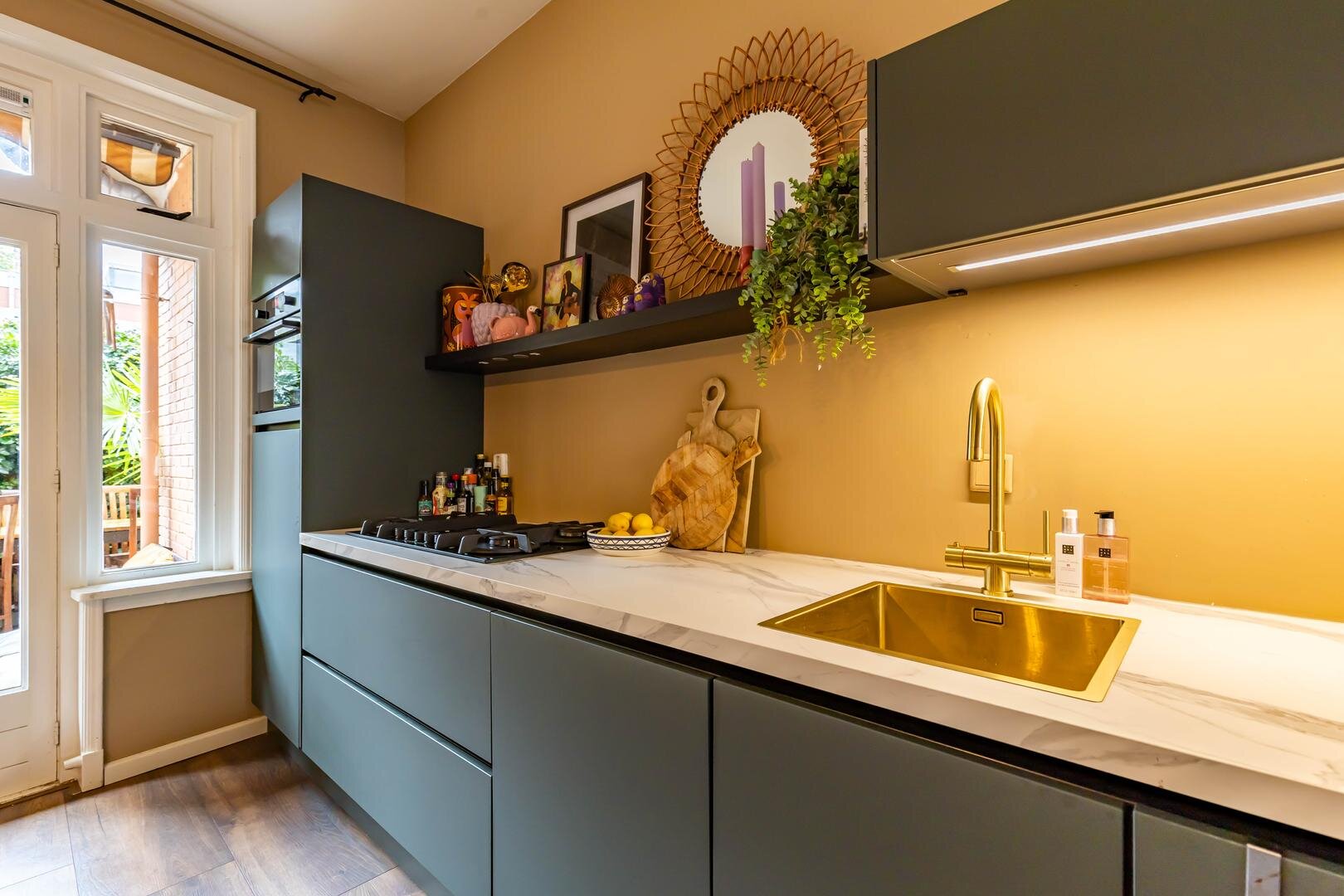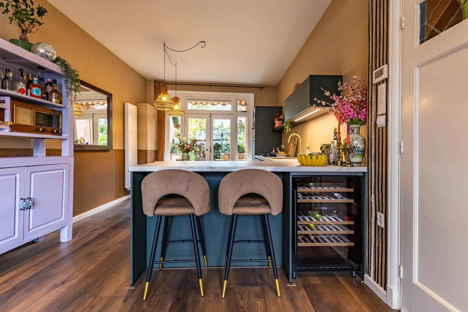 Dat is deze benedenwoning met tuin op het westen, op een fantastisch plekje aan doorgaand vaarwater. Van binnen is het huis smaakvol en passend in de huidige tijd gemoderniseerd, wat het geheel een eigentijdse uitstraling geeft. Instapklaar is dan haast een understatement. Het bruisende centrum ligt hier letterlijk aan je voeten, en vanuit de tuin voel je hoe dichtbij onder andere het Forum is. In de zomer zie je de boten voorbijvaren, de mensen op de terrasjes en geniet je van alles wat onze geweldige stad te bieden heeft.Indeling: entree/ruime hal van 7 m², keurig toilet en aan de linkerzijde toegang tot de royale woonkamer met open keuken, samen circa 33 m² groot. Hier proef je direct de sfeer die in het hele huis te vinden is: smaakvol en met oog voor detail. Door kleur- en materiaalgebruik ervaar je dat warme, knusse gevoel, wat een mooie lijn vormt met het bouwjaar van 1936, gecombineerd met de glas-in-loodramen. De raampartijen aan de voorzijde bieden een fijn zicht op het water, en aan de achterzijde is er de open en prettige verbinding met de prachtige matgroene keuken uit 2023, met zitje aan het schiereiland. Hier is zelfs een klimaatkast ingebouwd. Het marmerlook werkblad en de messing accenten onderstrepen de luxe uitstraling.Alle apparatuur is verder aanwezig, zoals een vaatwasser, oven, gaskookplaat, koelkast met vriesvak en volop opbergruimte in de vele lades, kastjes, bovenkastjes en op de bijpassende planken. Er is voldoende ruimte voor een grote eethoek, en alles is tot in de puntjes afgewerkt. Een fraai geheel, zeker met de openslaande deuren naar de tuin, zodat in de mooie maanden binnen en buiten naadloos in elkaar overlopen.Vanuit de hal is aan de rechterzijde de slaapkamer met walk-in closet bereikbaar, in totaal maar liefst 23 m² groot. De ruimte is efficiënt en niet dertien in een dozijn ingericht, met plek voor een groot bed, een wastafelmeubel met spiegel in de hoek en – als kers op de taart – de rond vormgegeven doucheruimte met betonafwerking en messing accenten.Achter deze riante slaapruimte ligt de serre met glazen pui en opbouw, een unieke aanbouw met daarin nu plek voor de wasmachine en droger, maar zeker ook geschikt als werkkamer, atelier of hobbyruimte. De tweede slaapkamer van circa 8 m² is bereikbaar vanuit de hal en biedt eveneens toegang tot de tuin via de schuifpui. Er is een leuke vaste kast, en ook deze ruimte is multifunctioneel inzetbaar. Vanuit deze kamer is een ruime kelder bereikbaar, waar de cv-installatie hangt en voldoende bergruimte aanwezig is.De achtertuin maakt het plaatje compleet, met haar ligging op het westen en het zicht op het Forum. Besloten en uniek dankzij de glazen uitbouw en het uitzicht. Onderhoudsvriendelijk, met haast een mediterraan tintje.*sfeervolle benedenwoning met tuin aan de rand van het stadscentrum