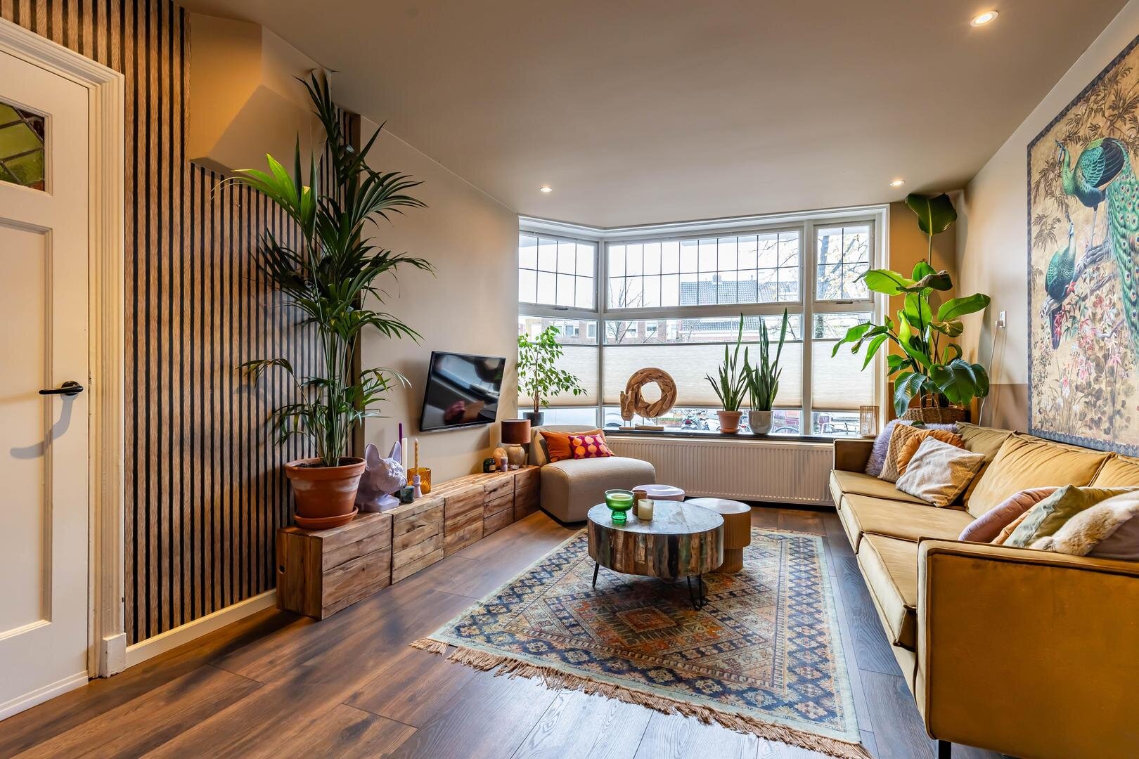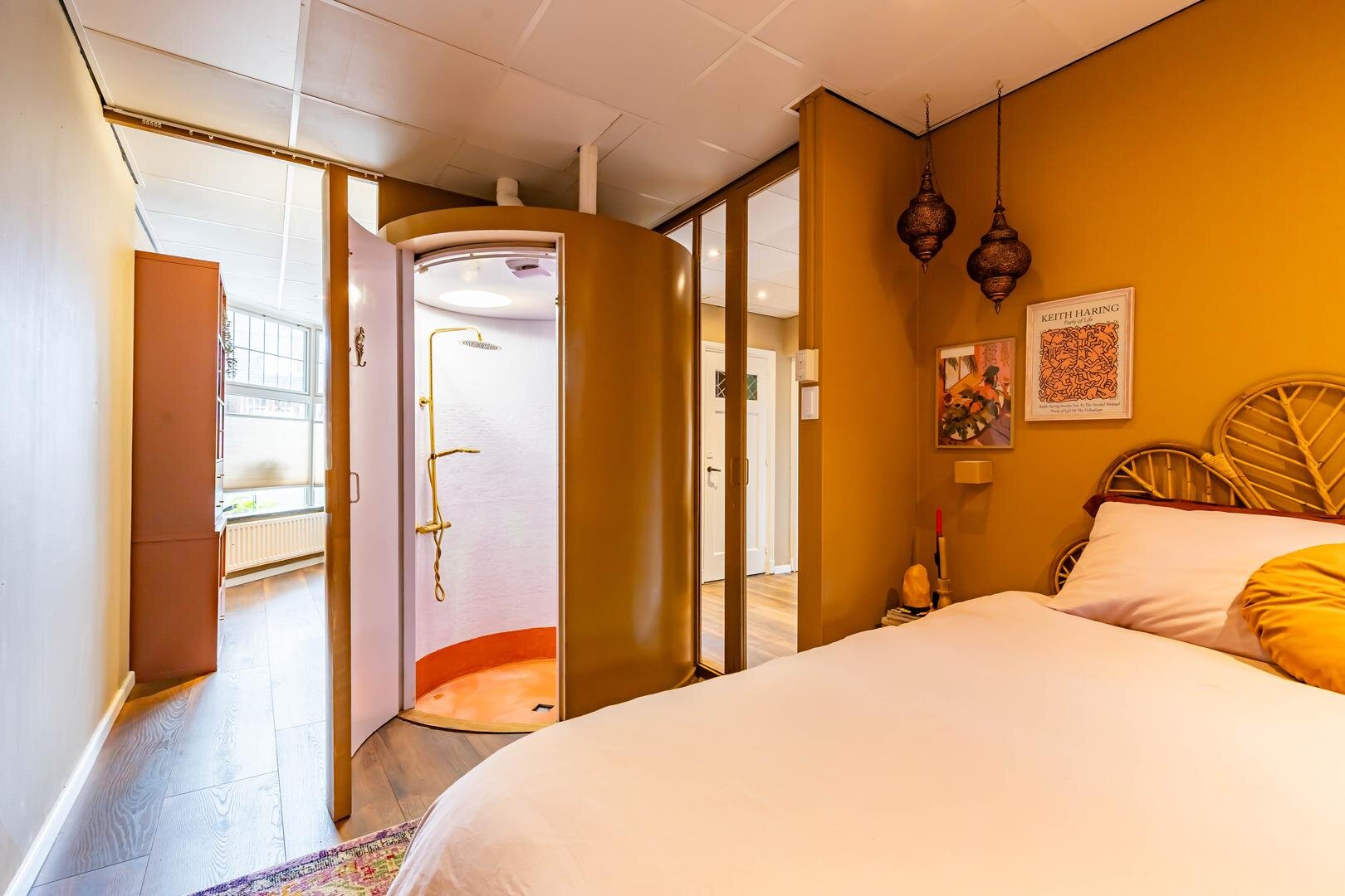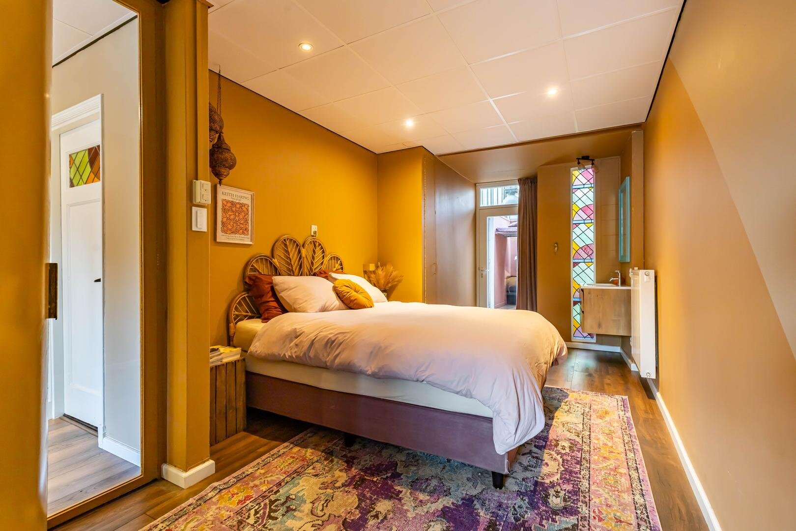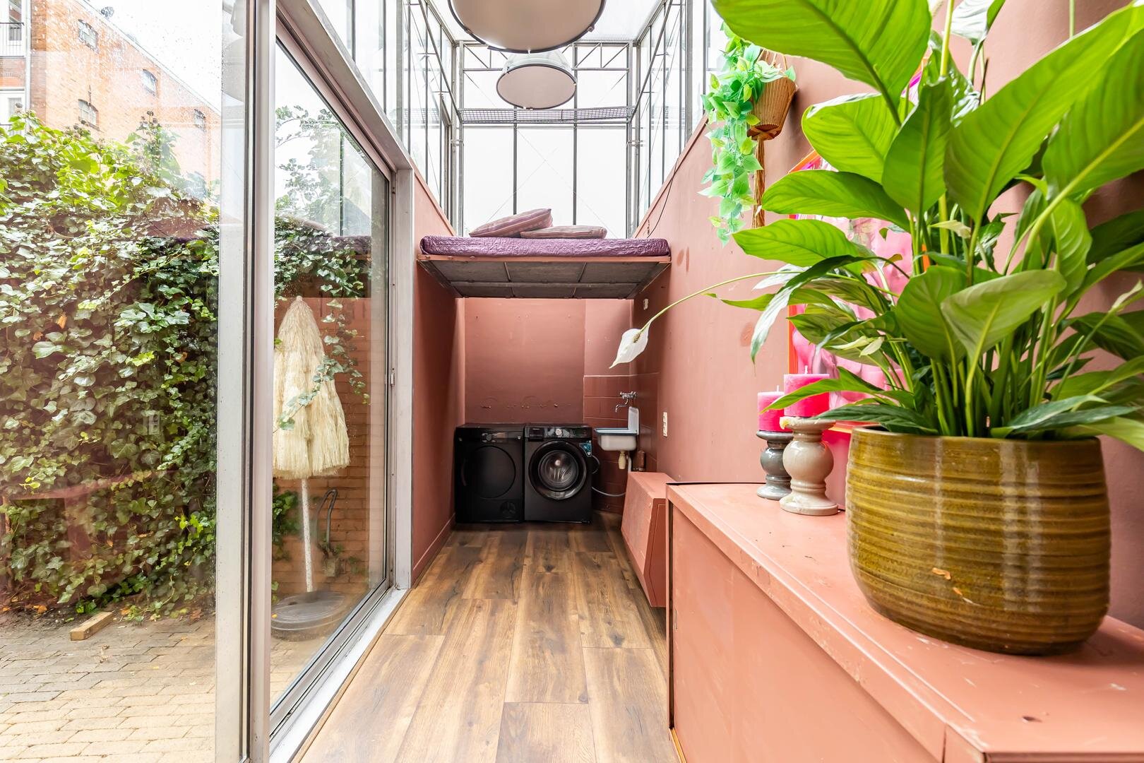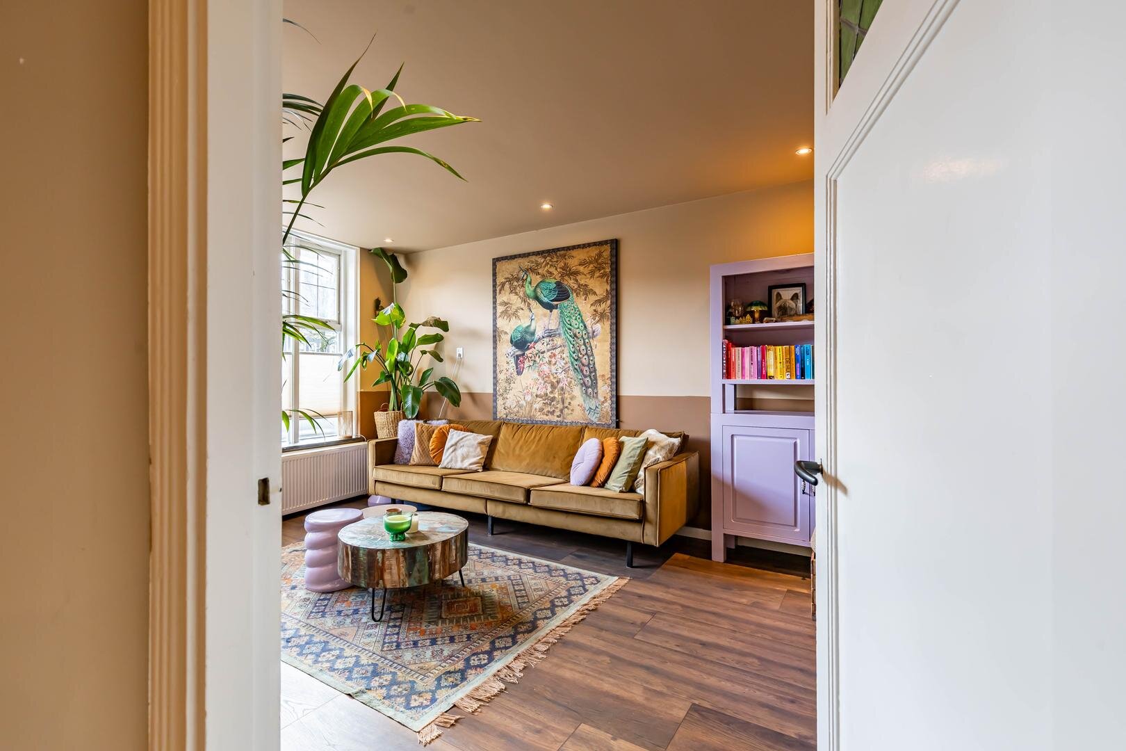 Dat is deze benedenwoning met tuin op het westen, op een fantastisch plekje aan doorgaand vaarwater. Van binnen is het huis smaakvol en passend in de huidige tijd gemoderniseerd, wat het geheel een eigentijdse uitstraling geeft. Instapklaar is dan haast een understatement. Het bruisende centrum ligt hier letterlijk aan je voeten, en vanuit de tuin voel je hoe dichtbij onder andere het Forum is. In de zomer zie je de boten voorbijvaren, de mensen op de terrasjes en geniet je van alles wat onze geweldige stad te bieden heeft.Indeling: entree/ruime hal van 7 m², keurig toilet en aan de linkerzijde toegang tot de royale woonkamer met open keuken, samen circa 33 m² groot. Hier proef je direct de sfeer die in het hele huis te vinden is: smaakvol en met oog voor detail. Door kleur- en materiaalgebruik ervaar je dat warme, knusse gevoel, wat een mooie lijn vormt met het bouwjaar van 1936, gecombineerd met de glas-in-loodramen. De raampartijen aan de voorzijde bieden een fijn zicht op het water, en aan de achterzijde is er de open en prettige verbinding met de prachtige matgroene keuken uit 2023, met zitje aan het schiereiland. Hier is zelfs een klimaatkast ingebouwd. Het marmerlook werkblad en de messing accenten onderstrepen de luxe uitstraling.Alle apparatuur is verder aanwezig, zoals een vaatwasser, oven, gaskookplaat, koelkast met vriesvak en volop opbergruimte in de vele lades, kastjes, bovenkastjes en op de bijpassende planken. Er is voldoende ruimte voor een grote eethoek, en alles is tot in de puntjes afgewerkt. Een fraai geheel, zeker met de openslaande deuren naar de tuin, zodat in de mooie maanden binnen en buiten naadloos in elkaar overlopen.Vanuit de hal is aan de rechterzijde de slaapkamer met walk-in closet bereikbaar, in totaal maar liefst 23 m² groot. De ruimte is efficiënt en niet dertien in een dozijn ingericht, met plek voor een groot bed, een wastafelmeubel met spiegel in de hoek en – als kers op de taart – de rond vormgegeven doucheruimte met betonafwerking en messing accenten.Achter deze riante slaapruimte ligt de serre met glazen pui en opbouw, een unieke aanbouw met daarin nu plek voor de wasmachine en droger, maar zeker ook geschikt als werkkamer, atelier of hobbyruimte. De tweede slaapkamer van circa 8 m² is bereikbaar vanuit de hal en biedt eveneens toegang tot de tuin via de schuifpui. Er is een leuke vaste kast, en ook deze ruimte is multifunctioneel inzetbaar. Vanuit deze kamer is een ruime kelder bereikbaar, waar de cv-installatie hangt en voldoende bergruimte aanwezig is.De achtertuin maakt het plaatje compleet, met haar ligging op het westen en het zicht op het Forum. Besloten en uniek dankzij de glazen uitbouw en het uitzicht. Onderhoudsvriendelijk, met haast een mediterraan tintje.*sfeervolle benedenwoning met tuin aan de rand van het stadscentrum