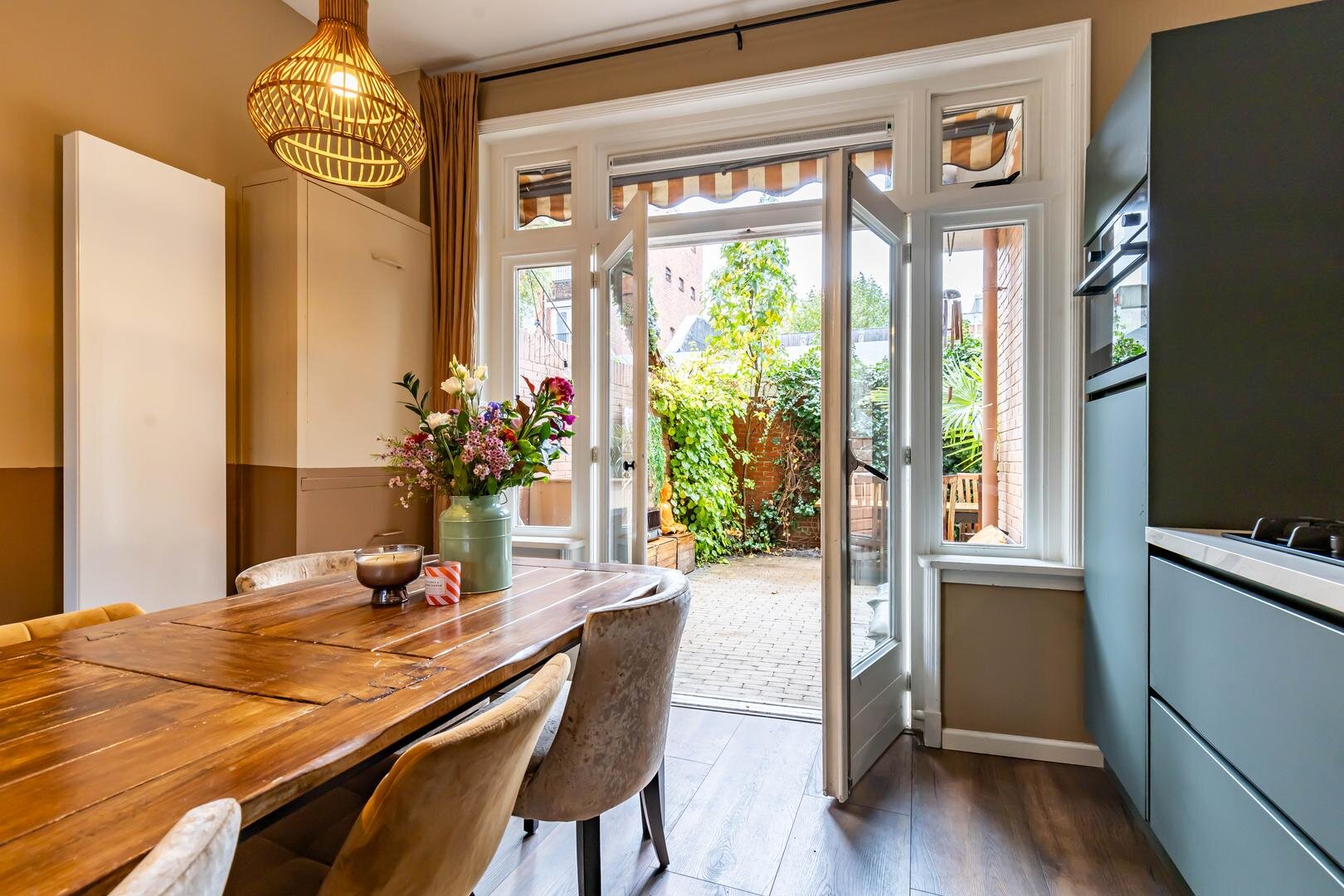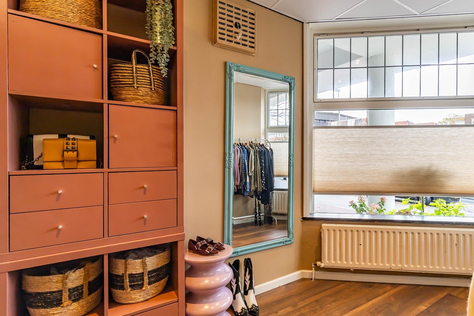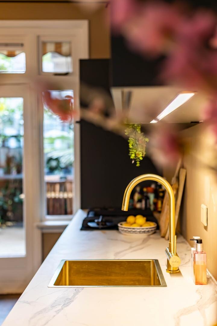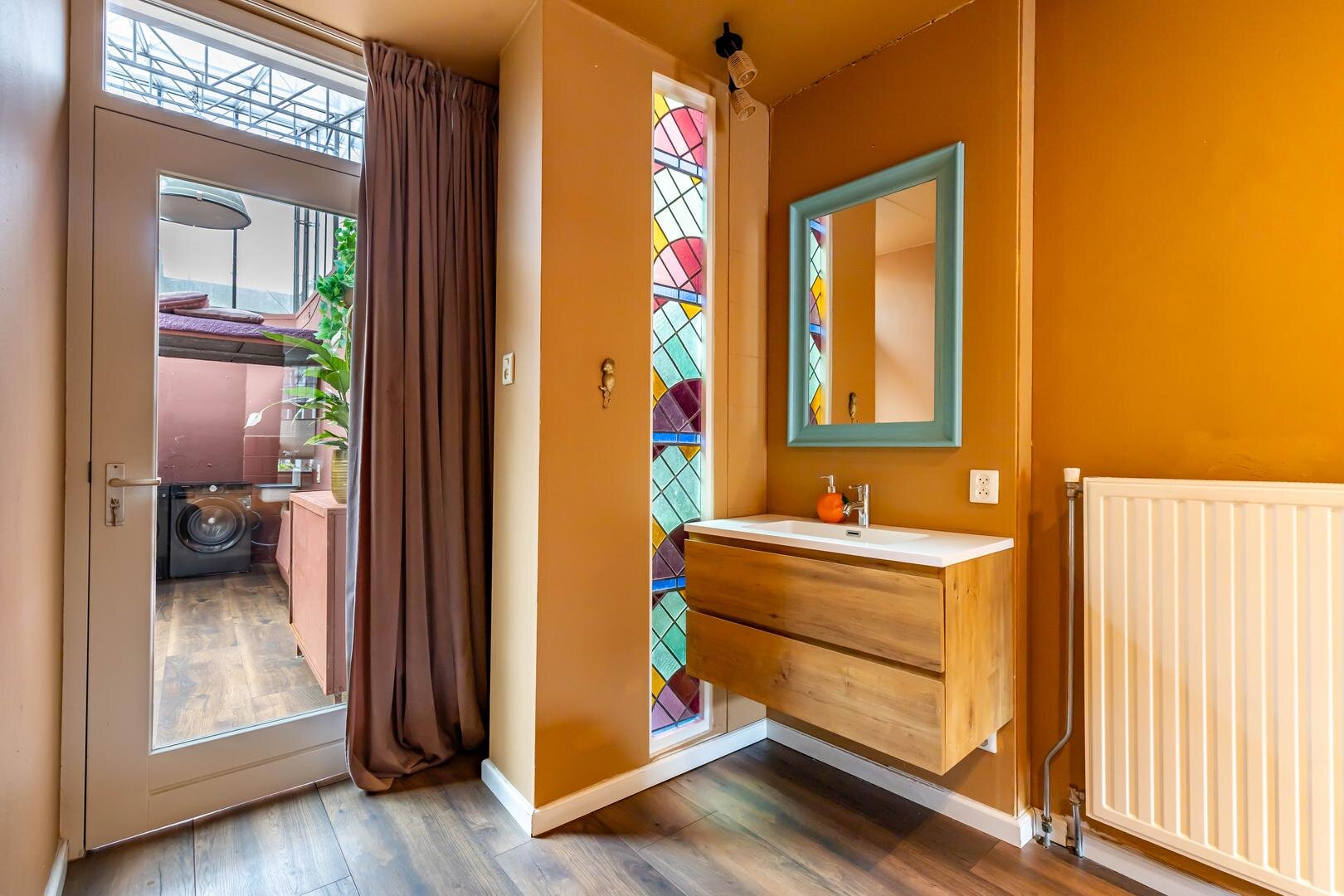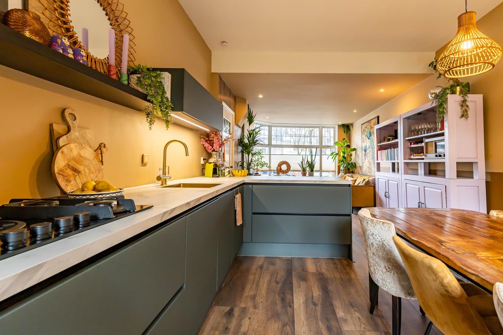 Dat is deze benedenwoning met tuin op het westen, op een fantastisch plekje aan doorgaand vaarwater. Van binnen is het huis smaakvol en passend in de huidige tijd gemoderniseerd, wat het geheel een eigentijdse uitstraling geeft. Instapklaar is dan haast een understatement. Het bruisende centrum ligt hier letterlijk aan je voeten, en vanuit de tuin voel je hoe dichtbij onder andere het Forum is. In de zomer zie je de boten voorbijvaren, de mensen op de terrasjes en geniet je van alles wat onze geweldige stad te bieden heeft.Indeling: entree/ruime hal van 7 m², keurig toilet en aan de linkerzijde toegang tot de royale woonkamer met open keuken, samen circa 33 m² groot. Hier proef je direct de sfeer die in het hele huis te vinden is: smaakvol en met oog voor detail. Door kleur- en materiaalgebruik ervaar je dat warme, knusse gevoel, wat een mooie lijn vormt met het bouwjaar van 1936, gecombineerd met de glas-in-loodramen. De raampartijen aan de voorzijde bieden een fijn zicht op het water, en aan de achterzijde is er de open en prettige verbinding met de prachtige matgroene keuken uit 2023, met zitje aan het schiereiland. Hier is zelfs een klimaatkast ingebouwd. Het marmerlook werkblad en de messing accenten onderstrepen de luxe uitstraling.Alle apparatuur is verder aanwezig, zoals een vaatwasser, oven, gaskookplaat, koelkast met vriesvak en volop opbergruimte in de vele lades, kastjes, bovenkastjes en op de bijpassende planken. Er is voldoende ruimte voor een grote eethoek, en alles is tot in de puntjes afgewerkt. Een fraai geheel, zeker met de openslaande deuren naar de tuin, zodat in de mooie maanden binnen en buiten naadloos in elkaar overlopen.Vanuit de hal is aan de rechterzijde de slaapkamer met walk-in closet bereikbaar, in totaal maar liefst 23 m² groot. De ruimte is efficiënt en niet dertien in een dozijn ingericht, met plek voor een groot bed, een wastafelmeubel met spiegel in de hoek en – als kers op de taart – de rond vormgegeven doucheruimte met betonafwerking en messing accenten.Achter deze riante slaapruimte ligt de serre met glazen pui en opbouw, een unieke aanbouw met daarin nu plek voor de wasmachine en droger, maar zeker ook geschikt als werkkamer, atelier of hobbyruimte. De tweede slaapkamer van circa 8 m² is bereikbaar vanuit de hal en biedt eveneens toegang tot de tuin via de schuifpui. Er is een leuke vaste kast, en ook deze ruimte is multifunctioneel inzetbaar. Vanuit deze kamer is een ruime kelder bereikbaar, waar de cv-installatie hangt en voldoende bergruimte aanwezig is.De achtertuin maakt het plaatje compleet, met haar ligging op het westen en het zicht op het Forum. Besloten en uniek dankzij de glazen uitbouw en het uitzicht. Onderhoudsvriendelijk, met haast een mediterraan tintje.*sfeervolle benedenwoning met tuin aan de rand van het stadscentrum
