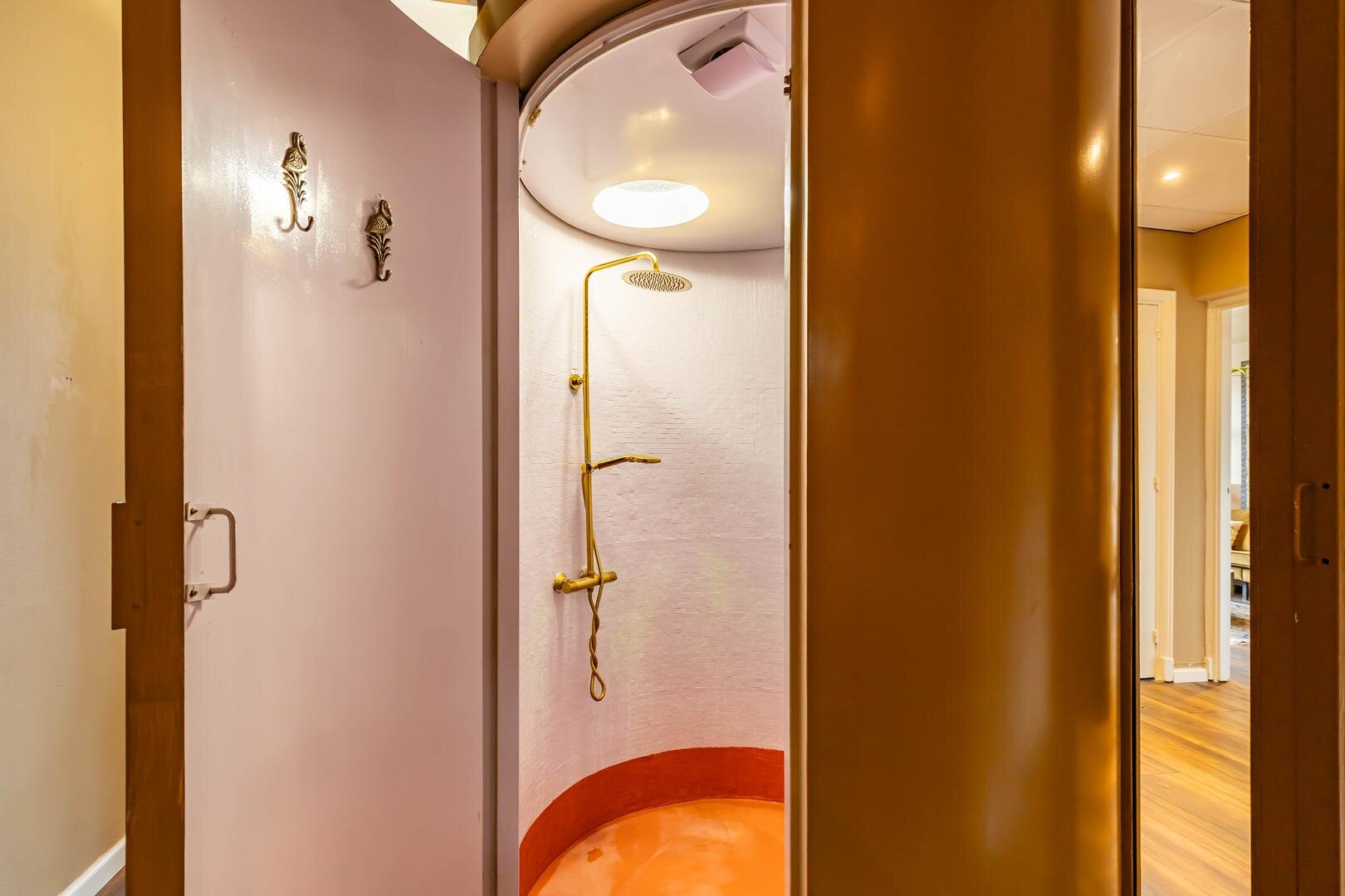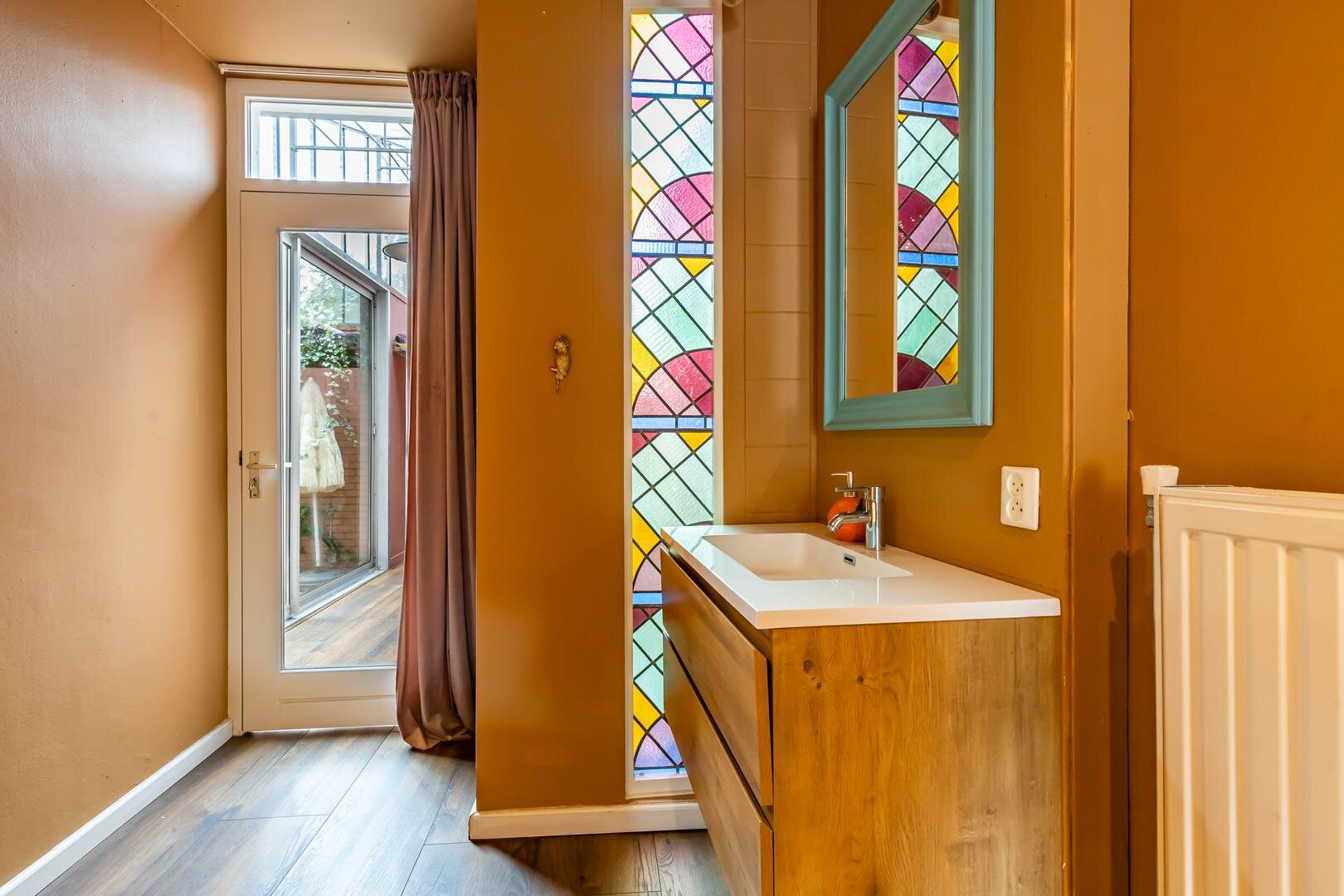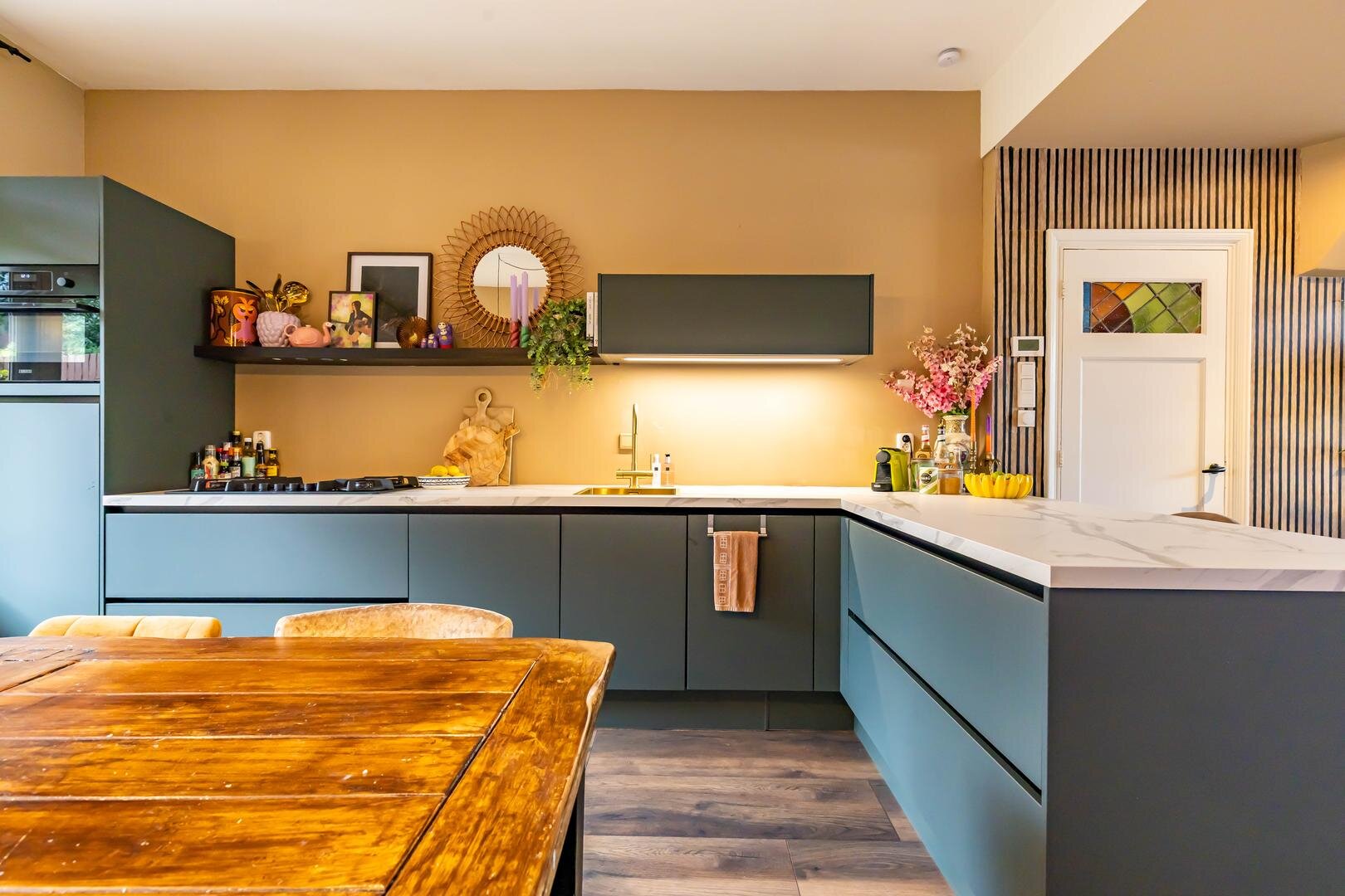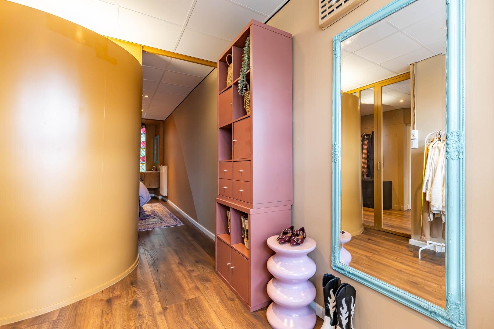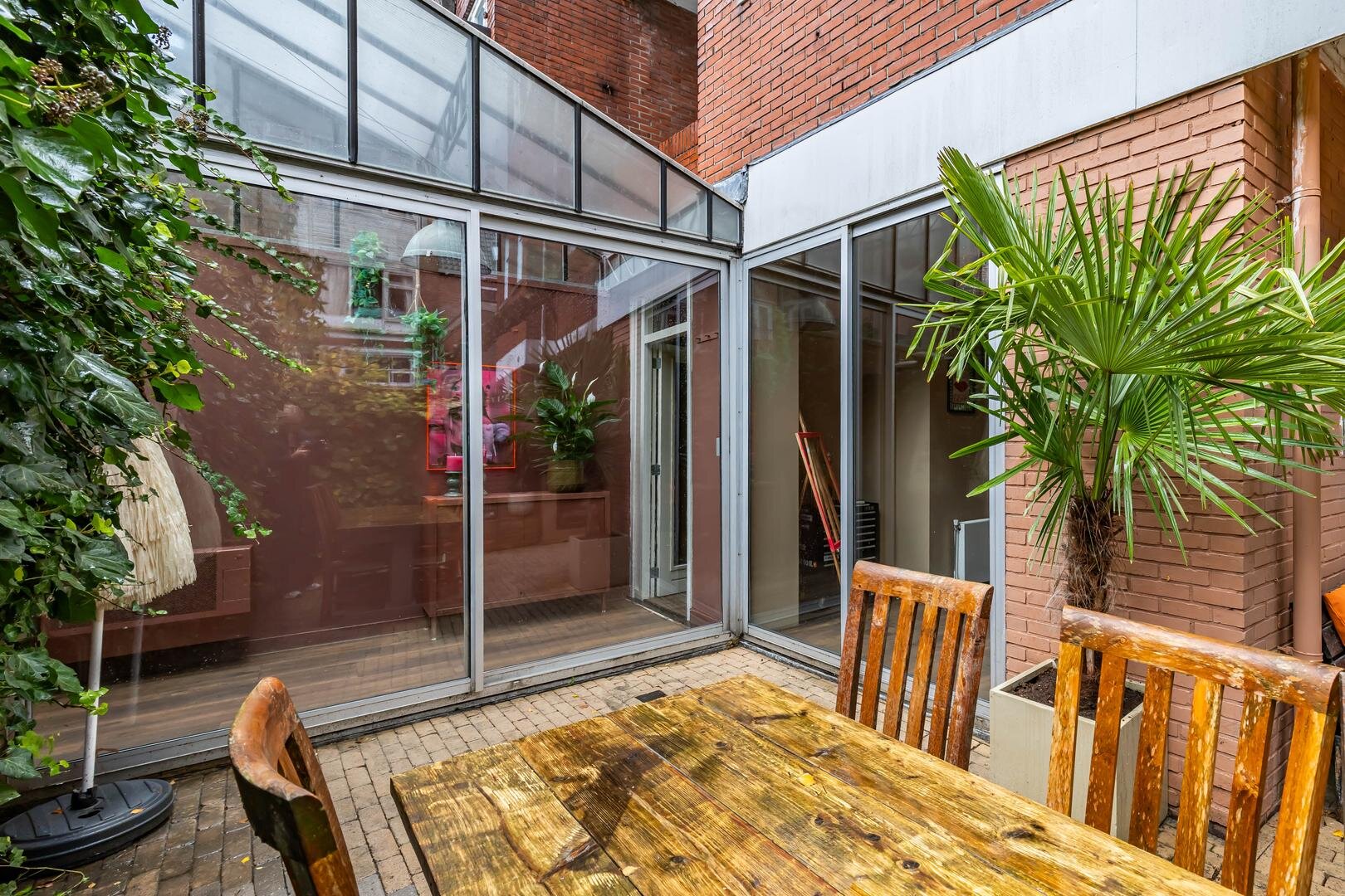 Dat is deze benedenwoning met tuin op het westen, op een fantastisch plekje aan doorgaand vaarwater. Van binnen is het huis smaakvol en passend in de huidige tijd gemoderniseerd, wat het geheel een eigentijdse uitstraling geeft. Instapklaar is dan haast een understatement. Het bruisende centrum ligt hier letterlijk aan je voeten, en vanuit de tuin voel je hoe dichtbij onder andere het Forum is. In de zomer zie je de boten voorbijvaren, de mensen op de terrasjes en geniet je van alles wat onze geweldige stad te bieden heeft.Indeling: entree/ruime hal van 7 m², keurig toilet en aan de linkerzijde toegang tot de royale woonkamer met open keuken, samen circa 33 m² groot. Hier proef je direct de sfeer die in het hele huis te vinden is: smaakvol en met oog voor detail. Door kleur- en materiaalgebruik ervaar je dat warme, knusse gevoel, wat een mooie lijn vormt met het bouwjaar van 1936, gecombineerd met de glas-in-loodramen. De raampartijen aan de voorzijde bieden een fijn zicht op het water, en aan de achterzijde is er de open en prettige verbinding met de prachtige matgroene keuken uit 2023, met zitje aan het schiereiland. Hier is zelfs een klimaatkast ingebouwd. Het marmerlook werkblad en de messing accenten onderstrepen de luxe uitstraling.Alle apparatuur is verder aanwezig, zoals een vaatwasser, oven, gaskookplaat, koelkast met vriesvak en volop opbergruimte in de vele lades, kastjes, bovenkastjes en op de bijpassende planken. Er is voldoende ruimte voor een grote eethoek, en alles is tot in de puntjes afgewerkt. Een fraai geheel, zeker met de openslaande deuren naar de tuin, zodat in de mooie maanden binnen en buiten naadloos in elkaar overlopen.Vanuit de hal is aan de rechterzijde de slaapkamer met walk-in closet bereikbaar, in totaal maar liefst 23 m² groot. De ruimte is efficiënt en niet dertien in een dozijn ingericht, met plek voor een groot bed, een wastafelmeubel met spiegel in de hoek en – als kers op de taart – de rond vormgegeven doucheruimte met betonafwerking en messing accenten.Achter deze riante slaapruimte ligt de serre met glazen pui en opbouw, een unieke aanbouw met daarin nu plek voor de wasmachine en droger, maar zeker ook geschikt als werkkamer, atelier of hobbyruimte. De tweede slaapkamer van circa 8 m² is bereikbaar vanuit de hal en biedt eveneens toegang tot de tuin via de schuifpui. Er is een leuke vaste kast, en ook deze ruimte is multifunctioneel inzetbaar. Vanuit deze kamer is een ruime kelder bereikbaar, waar de cv-installatie hangt en voldoende bergruimte aanwezig is.De achtertuin maakt het plaatje compleet, met haar ligging op het westen en het zicht op het Forum. Besloten en uniek dankzij de glazen uitbouw en het uitzicht. Onderhoudsvriendelijk, met haast een mediterraan tintje.*sfeervolle benedenwoning met tuin aan de rand van het stadscentrum