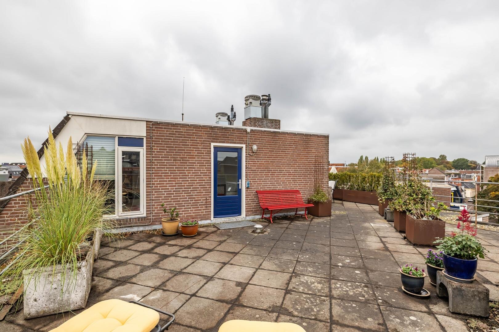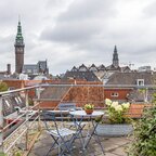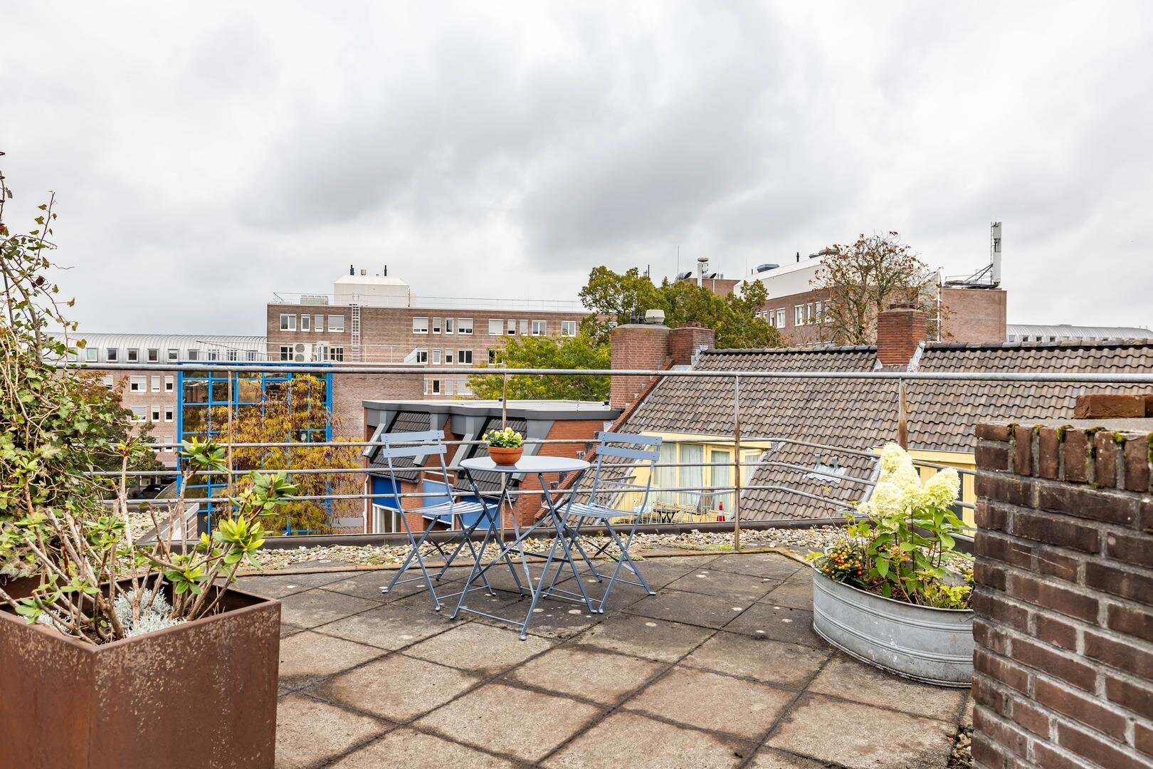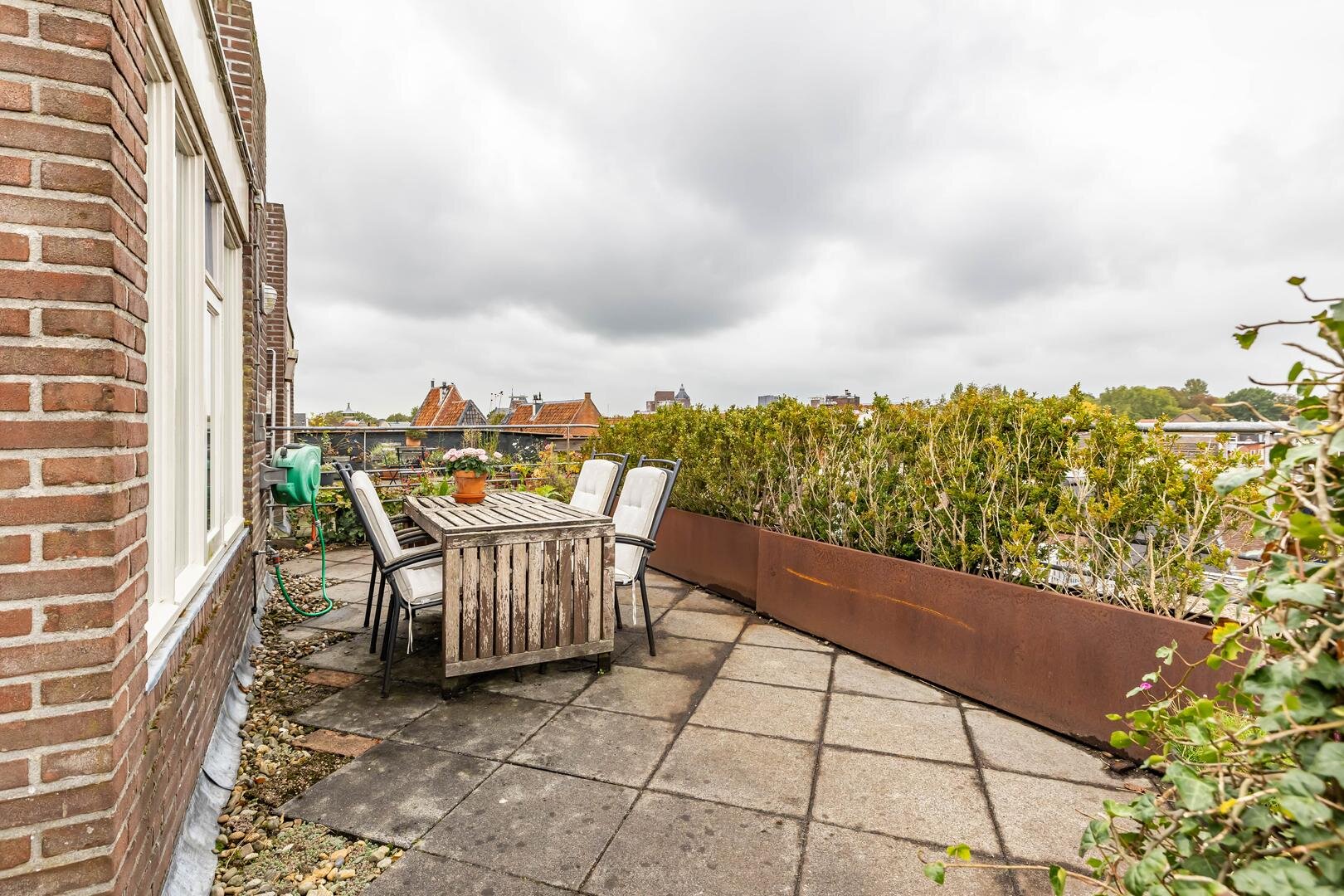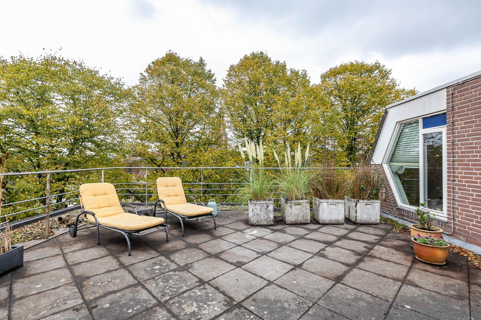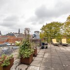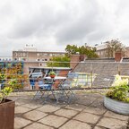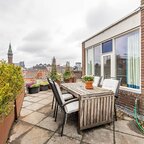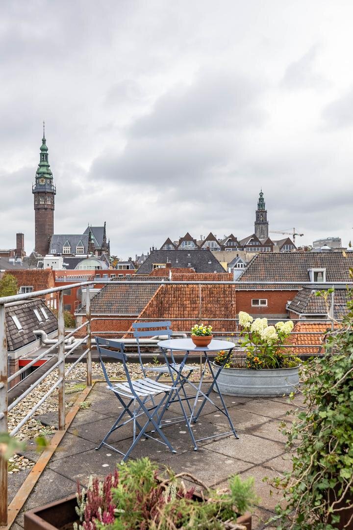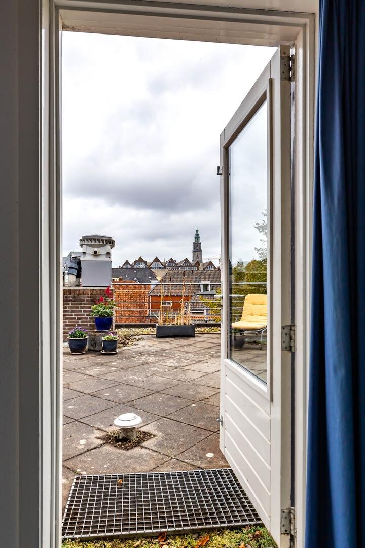 In het stadshart van Groningen, om de hoek van de Hoge der A, is het heerlijk wonen op de 3e en 4e verdieping, mét privé dakterras van 83 m². Een fantastische plek met uitzicht, waar de echte stadsliefhebber alleen maar van kan dromen, met de bruisende stad letterlijk aan je voeten. Met maar liefst 105 m² woonoppervlak heb je binnen volop leefruimte, en dankzij de verdeling over twee woonlagen voelt het aan als een echt (t)huis. Zo zijn er drie slaapkamers aanwezig en heb je, naast dat geweldige dakterras, ook nog een balkon grenzend aan de living. Op de begane grond is niet alleen een eigen fietsenberging te vinden, maar ook een gezellige, gezamenlijke binnentuin waar je het hele jaar door van kunt meegenieten.Indeling derde verdieping:Entree/hal. Aan de rechterzijde lopen we de woonkeuken in van ca. 13,3 m², met een ruime keuken in hoekopstelling, voorzien van oven, inductiekookplaat en een losstaande Liebherr koel-/vriescombinatie. De wasruimte/berging van ca. 3 m² is vanuit hier bereikbaar en biedt plaats aan het witgoed, maar ook aan de cv-ketel (Intergas, 2024). De werkkamer van ca. 10 m² grenst eveneens aan de hal en is een fijne plek om je even terug te trekken. Deze kan ook prima dienstdoen als slaapkamer.De berging van bijna 2 m² in de hal zit naast het moderne toilet met fonteintje. Zo komen we aan bij de royale living van ca. 32 m², met volop raampartijen en de markante spiltrap als eyecatcher. Hier ervaar je de stadse stilte, terwijl je uitkijkt over de gezellige Turftorenstraat. Via de deur is er toegang tot het balkon, waar je beschut kunt zitten met zicht op de bomen.Vierde verdieping:Via de stalen spiltrap komen we op de vierde verdieping met overloop, een slaapkamer van ca. 13 m² met schuine zijde voor een knus gevoel, en een gemoderniseerde badkamer van 4,3 m² met ligbad/douche, wastafel en tweede toilet (sani-broyeur). De slaapkamer van 11 m² heeft een vaste kast met schuifdeuren en – als kers op de taart – toegang tot het dakterras van ca. 83 m²! Wij durven dan ook gerust van een daktuin te spreken, omdat "dakterras" de lading niet dekt. Hier heb je diverse zitjes en kun je genieten van de mooiste uitzichten over de stad. Wat een heerlijke plek om bij mooi weer te vertoeven – en dat helemaal privé.Alsof dat alles nog niet voldoende is, is er ook nog de gezamenlijke en groenrijke binnentuin op de begane grond, waar alle bewoners van het complex gebruik van mogen maken. Daarnaast is er een eigen fietsenberging met voldoende bergruimte van ca. 7 m².* toplocatie, om de hoek van Hoge der A