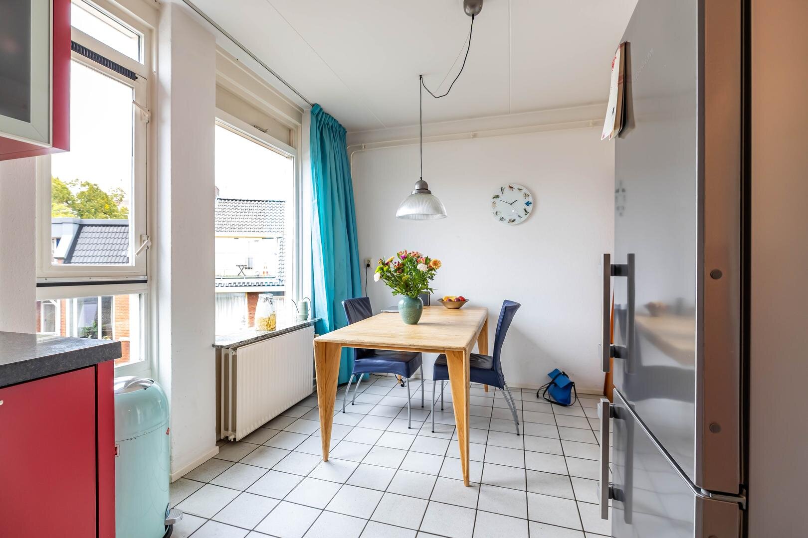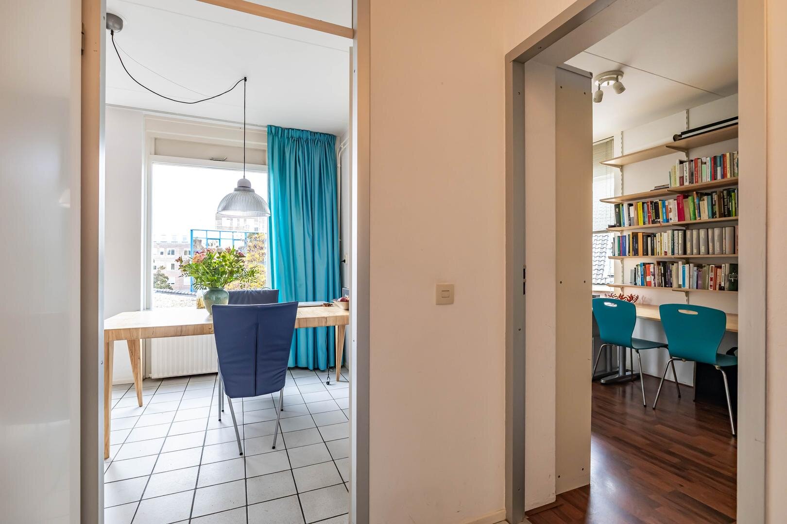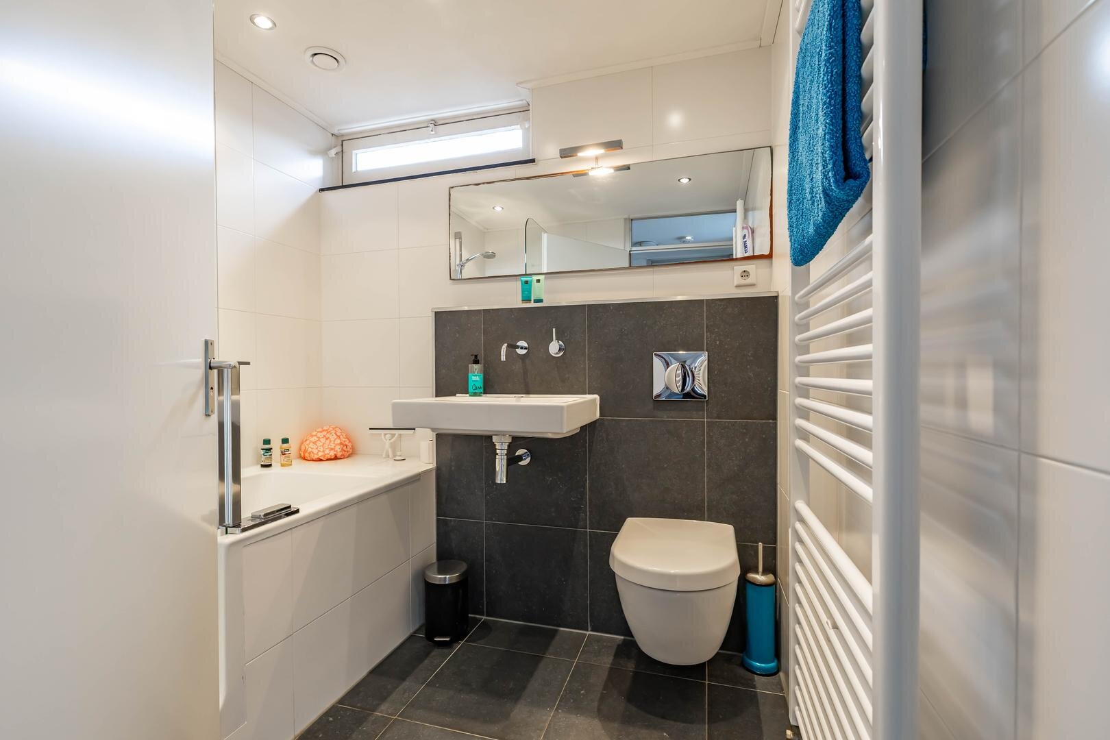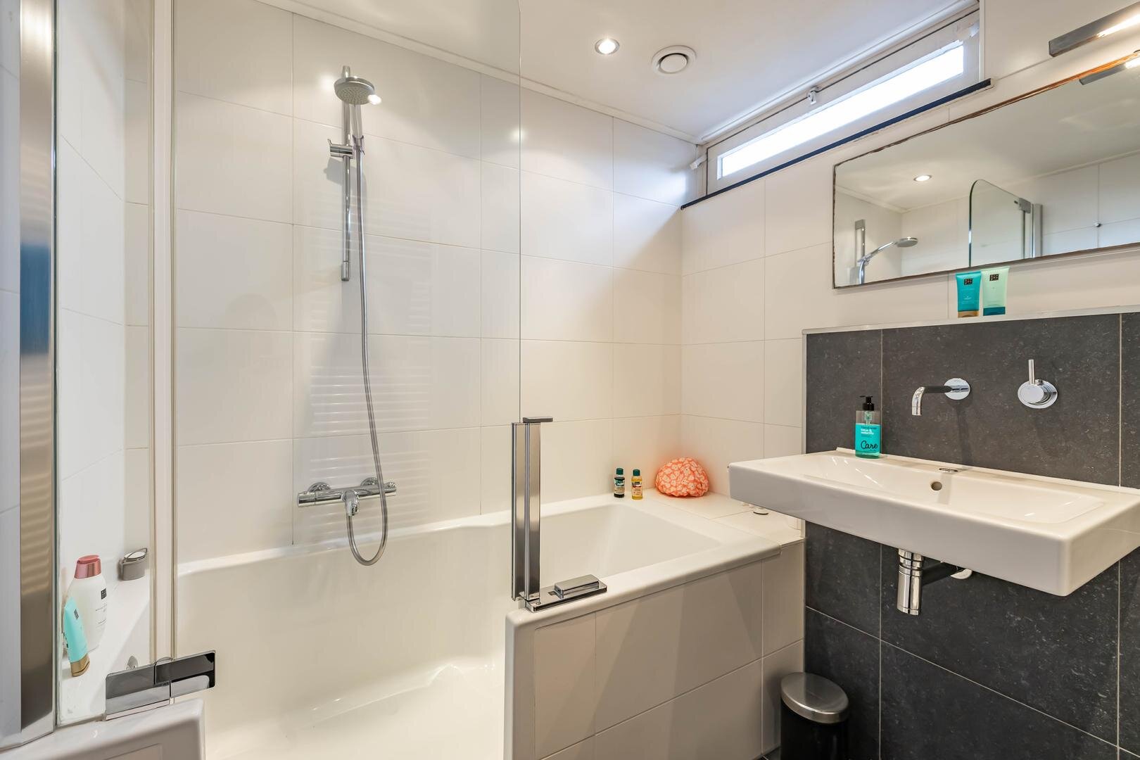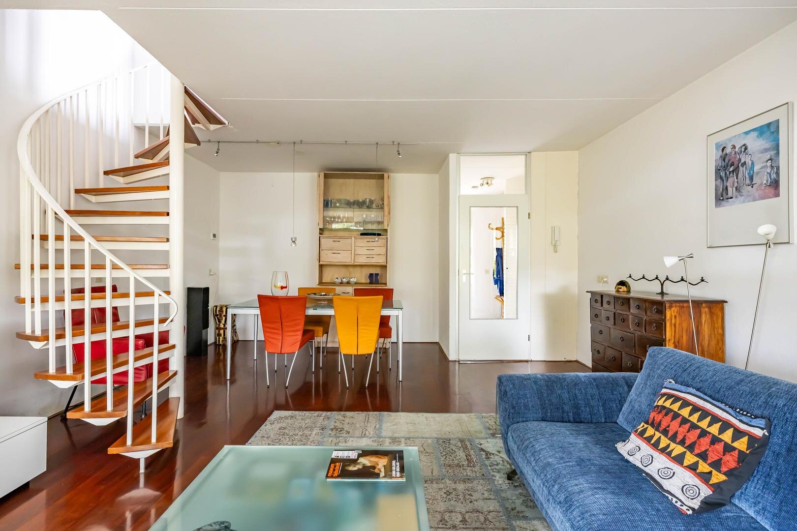 In het stadshart van Groningen, om de hoek van de Hoge der A, is het heerlijk wonen op de 3e en 4e verdieping, mét privé dakterras van 83 m². Een fantastische plek met uitzicht, waar de echte stadsliefhebber alleen maar van kan dromen, met de bruisende stad letterlijk aan je voeten. Met maar liefst 105 m² woonoppervlak heb je binnen volop leefruimte, en dankzij de verdeling over twee woonlagen voelt het aan als een echt (t)huis. Zo zijn er drie slaapkamers aanwezig en heb je, naast dat geweldige dakterras, ook nog een balkon grenzend aan de living. Op de begane grond is niet alleen een eigen fietsenberging te vinden, maar ook een gezellige, gezamenlijke binnentuin waar je het hele jaar door van kunt meegenieten.Indeling derde verdieping:Entree/hal. Aan de rechterzijde lopen we de woonkeuken in van ca. 13,3 m², met een ruime keuken in hoekopstelling, voorzien van oven, inductiekookplaat en een losstaande Liebherr koel-/vriescombinatie. De wasruimte/berging van ca. 3 m² is vanuit hier bereikbaar en biedt plaats aan het witgoed, maar ook aan de cv-ketel (Intergas, 2024). De werkkamer van ca. 10 m² grenst eveneens aan de hal en is een fijne plek om je even terug te trekken. Deze kan ook prima dienstdoen als slaapkamer.De berging van bijna 2 m² in de hal zit naast het moderne toilet met fonteintje. Zo komen we aan bij de royale living van ca. 32 m², met volop raampartijen en de markante spiltrap als eyecatcher. Hier ervaar je de stadse stilte, terwijl je uitkijkt over de gezellige Turftorenstraat. Via de deur is er toegang tot het balkon, waar je beschut kunt zitten met zicht op de bomen.Vierde verdieping:Via de stalen spiltrap komen we op de vierde verdieping met overloop, een slaapkamer van ca. 13 m² met schuine zijde voor een knus gevoel, en een gemoderniseerde badkamer van 4,3 m² met ligbad/douche, wastafel en tweede toilet (sani-broyeur). De slaapkamer van 11 m² heeft een vaste kast met schuifdeuren en – als kers op de taart – toegang tot het dakterras van ca. 83 m²! Wij durven dan ook gerust van een daktuin te spreken, omdat "dakterras" de lading niet dekt. Hier heb je diverse zitjes en kun je genieten van de mooiste uitzichten over de stad. Wat een heerlijke plek om bij mooi weer te vertoeven – en dat helemaal privé.Alsof dat alles nog niet voldoende is, is er ook nog de gezamenlijke en groenrijke binnentuin op de begane grond, waar alle bewoners van het complex gebruik van mogen maken. Daarnaast is er een eigen fietsenberging met voldoende bergruimte van ca. 7 m².* toplocatie, om de hoek van Hoge der A