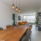 Beneden is een ruime berging van 14m² voor fietsen en opbergruimte.Huurprijs € 1550,- / maand gestoffeerd en gemeubileerd
