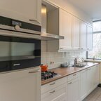 TE HUUR: In het geliefde Helpman, aan de zuidkant van Groningen, ligt dit royale appartement van maar liefst 95m² met twee slaapkamers en volop buitenruimte. Het appartement is de afgelopen jaren op stijlvolle wijze gemoderniseerd en van alle gemakken voorzien. Aan de achterzijde over de gehele breedte is er een balkon op het oosten en voor, toegankelijk vanuit de ouderslaapkamer, een balkon op het westen. Het geheel is heerlijk licht en tot in de puntjes verzorgd. De ligging is ideaal vlakbij het centrum van Helpman en met een supermarkt aan De Savornin Lohmanlaan op loopafstand. Hier ontbreekt het aan niets.Indeling: entree/royale hal met toegang tot alle ruimtes van het appartement. Het centrale punt. Aan de rechterzijde vinden we een modern hangtoilet met wastafel, moderne en compleet ingerichte keuken van ca. 7,7m² voorzien van SIEMENS inbouwapparatuur zoals vaatwasser, koel/-vriescombinatie, kookplaat, afzuigkap en volop kastruimte. Hier is tevens een vaste kast waarin de wasmachine, droger en aanwezige stofzuiger zijn te vinden (allen uit 2021). Ook is de badkamer vanuit de keuken toegankelijk met daarin een ruime douchecabine, badmeubel met spiegel en kastruimte en daglichtinval via het raampje. Vanuit de keuken heb je tevens toegang het ruime balkon op het oosten van waaruit je heerlijk ver over het groen en de achtergelegen huizen kunt kijken. Hier is een vaste kast met opbergruimte aanwezig. Er zijn twee slaapkamers aanwezig. De kamer aan de achterzijde is ca 10,5m² groot en ingericht als werkkamer vanwege het rustige uitzicht en de ligging op het oosten. De ouderslaapkamer van ca 12,7m² ligt aan de voorzijde en heeft volop vaste kasten en toegang tot het balkon op het westen. De riante woonkamer is echt de verrassing van dit appartement, met maar liefst 41m² heb je hier volop leefruimte en bovendien volop licht dankzijde de ligging van oost naar west. De hoogwaardige marmoleum vloer, de twee vaste kasten en de schouw maken het sfeervolle plaatje tot een geheel. Het staat buiten kijf dat dit een fijne plek is om te wonen.Het appartement is volledig voorzien van dubbele beglazing en warm water is beschikbaar via de elektrische boiler. Verwarming middels de blokverwarming waarvan de kosten inbegrepen zijn in de service kosten.