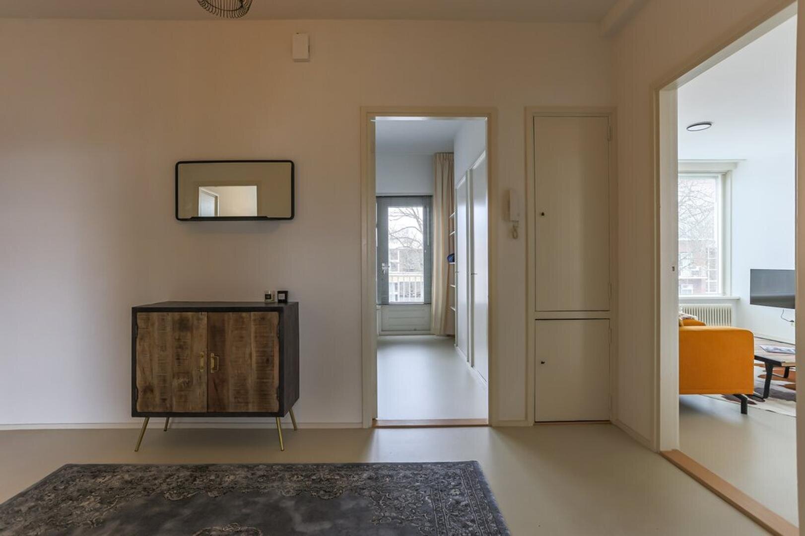 TE HUUR: In het geliefde Helpman, aan de zuidkant van Groningen, ligt dit royale appartement van maar liefst 95m² met twee slaapkamers en volop buitenruimte. Het appartement is de afgelopen jaren op stijlvolle wijze gemoderniseerd en van alle gemakken voorzien. Aan de achterzijde over de gehele breedte is er een balkon op het oosten en voor, toegankelijk vanuit de ouderslaapkamer, een balkon op het westen. Het geheel is heerlijk licht en tot in de puntjes verzorgd. De ligging is ideaal vlakbij het centrum van Helpman en met een supermarkt aan De Savornin Lohmanlaan op loopafstand. Hier ontbreekt het aan niets.Indeling: entree/royale hal met toegang tot alle ruimtes van het appartement. Het centrale punt. Aan de rechterzijde vinden we een modern hangtoilet met wastafel, moderne en compleet ingerichte keuken van ca. 7,7m² voorzien van SIEMENS inbouwapparatuur zoals vaatwasser, koel/-vriescombinatie, kookplaat, afzuigkap en volop kastruimte. Hier is tevens een vaste kast waarin de wasmachine, droger en aanwezige stofzuiger zijn te vinden (allen uit 2021). Ook is de badkamer vanuit de keuken toegankelijk met daarin een ruime douchecabine, badmeubel met spiegel en kastruimte en daglichtinval via het raampje. Vanuit de keuken heb je tevens toegang het ruime balkon op het oosten van waaruit je heerlijk ver over het groen en de achtergelegen huizen kunt kijken. Hier is een vaste kast met opbergruimte aanwezig. Er zijn twee slaapkamers aanwezig. De kamer aan de achterzijde is ca 10,5m² groot en ingericht als werkkamer vanwege het rustige uitzicht en de ligging op het oosten. De ouderslaapkamer van ca 12,7m² ligt aan de voorzijde en heeft volop vaste kasten en toegang tot het balkon op het westen. De riante woonkamer is echt de verrassing van dit appartement, met maar liefst 41m² heb je hier volop leefruimte en bovendien volop licht dankzijde de ligging van oost naar west. De hoogwaardige marmoleum vloer, de twee vaste kasten en de schouw maken het sfeervolle plaatje tot een geheel. Het staat buiten kijf dat dit een fijne plek is om te wonen.Het appartement is volledig voorzien van dubbele beglazing en warm water is beschikbaar via de elektrische boiler. Verwarming middels de blokverwarming waarvan de kosten inbegrepen zijn in de service kosten.