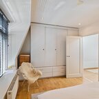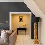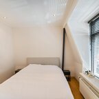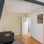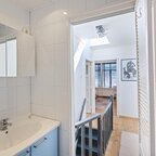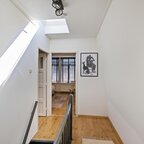 Overloop met volop lichtinval dankzij de lichtkoepel op het dak. De badkamer (ca. 3,5 m²) is voorzien van een douchehoek en een wastafelmeubel met spiegel.De ouderslaapkamer ligt aan de voorzijde van het huis en is ca. 11,5 m² groot, met een vaste kastenwand die de sfeer van de ruimte versterkt. De tweede slaapkamer is ca. 12 m² en doet momenteel dienst als werkkamer. Vanaf hier is er toegang tot het dakterras van 16 m², waar je heerlijk vanaf het voorjaar tot in de herfst van 's ochtends tot zonsondergang van het zonnetje kunt genieten.- Dorpse sferen in de Oosterpoort met alle voorzieningen op loopafstand