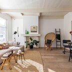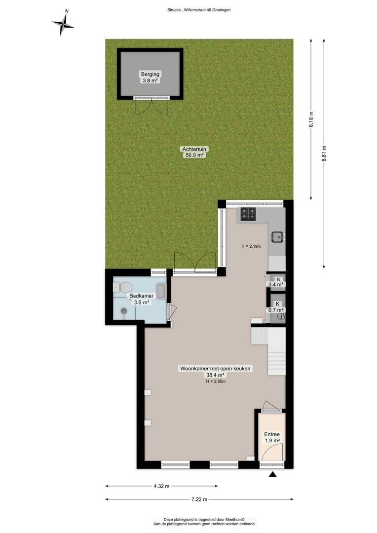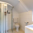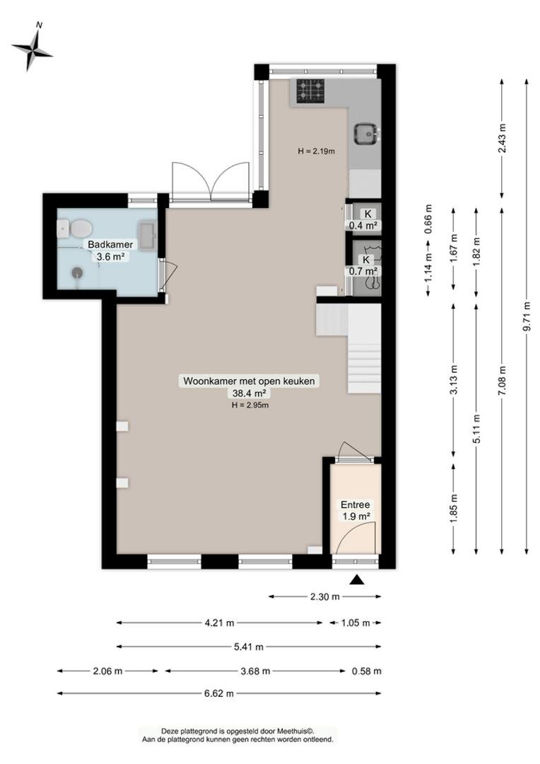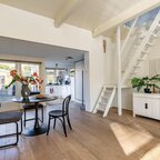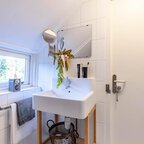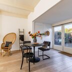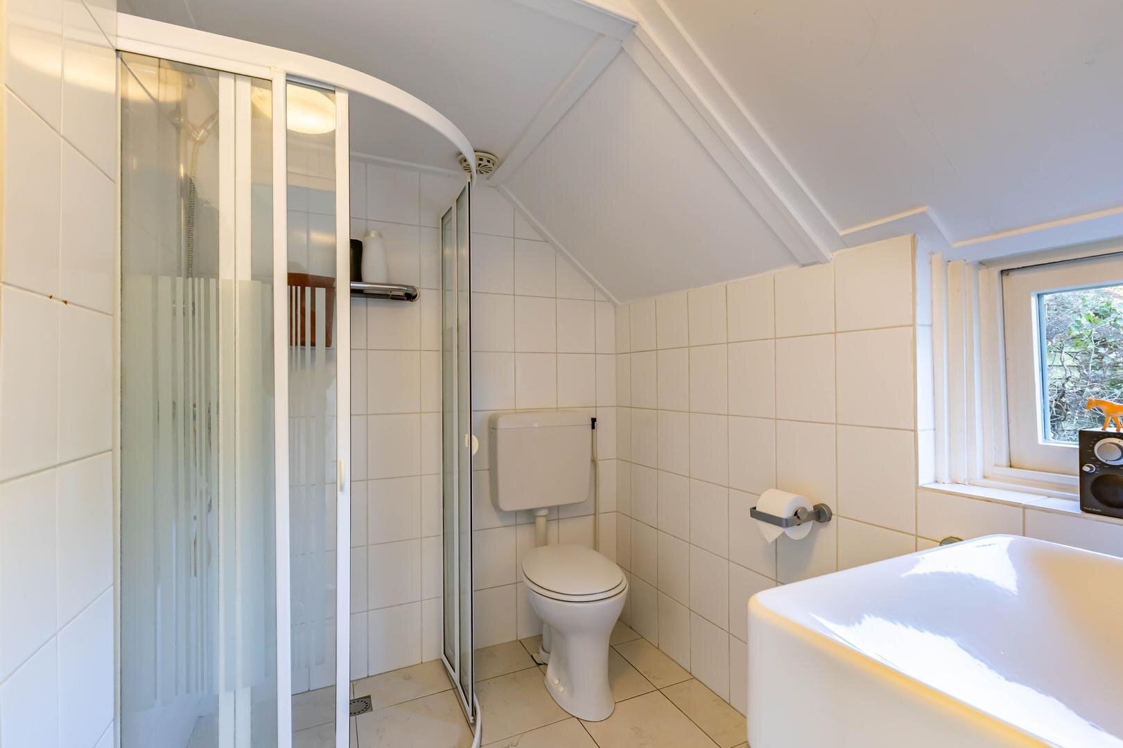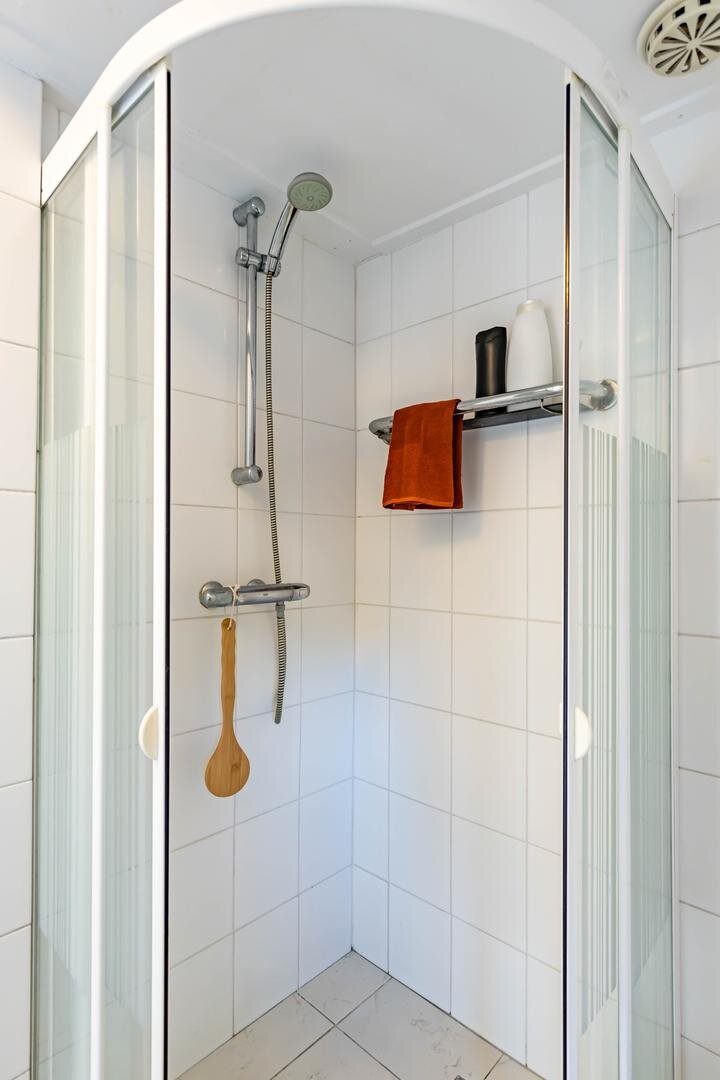 Via de entree/hal kom je in de verrassend ruime en lichte woonkamer van ca. 38,5 m² met open keuken. Het hoge balkenplafond (2,95 meter) versterkt het gevoel van ruimte en karakter. De houten vloer en de aanwezige schouw onderstrepen de authentieke sfeer. De indeling is ruimtelijk en je valt direct voor de geweldige lichtinval die van alle kanten door het huis stroomt.De open keuken ligt aan de tuinzijde en is uitgevoerd in een praktische hoekopstelling met veel kast- en werkruimte. Voorzien van een combi-oven, gaskookplaat en een koelkast met vriesvak (2025). Tijdens het koken kijk je via de vele raampartijen uit op de tuin. In de vaste schuifkast bevinden zich de cv-ketel en de aansluitingen voor wasmachine en droger.De badkamer is eenvoudig maar netjes en functioneel ingericht met een douchecabine, wastafel en toilet. Vanuit de living met eethoek geven openslaande deuren toegang tot de tuin. In de zomermaanden laat je binnen en buiten moeiteloos in elkaar overlopen – een heerlijke plek om te genieten. Via de trap in de hoek van de woonkamer bereik je vervolgens de slaapverdieping.Verdieping: