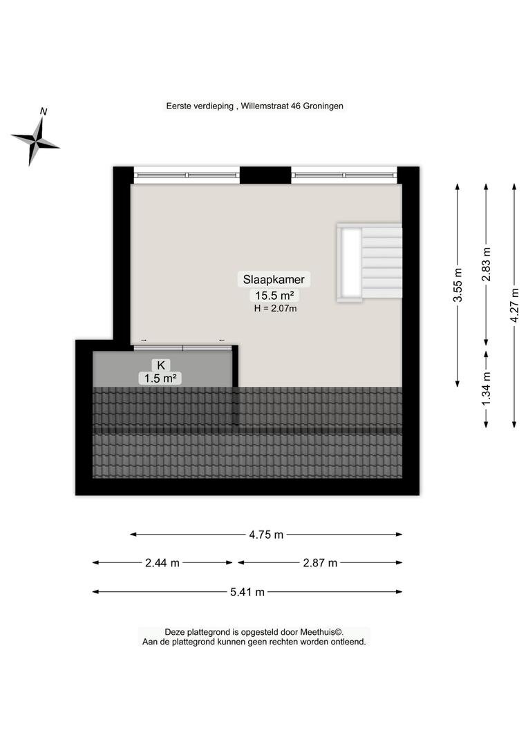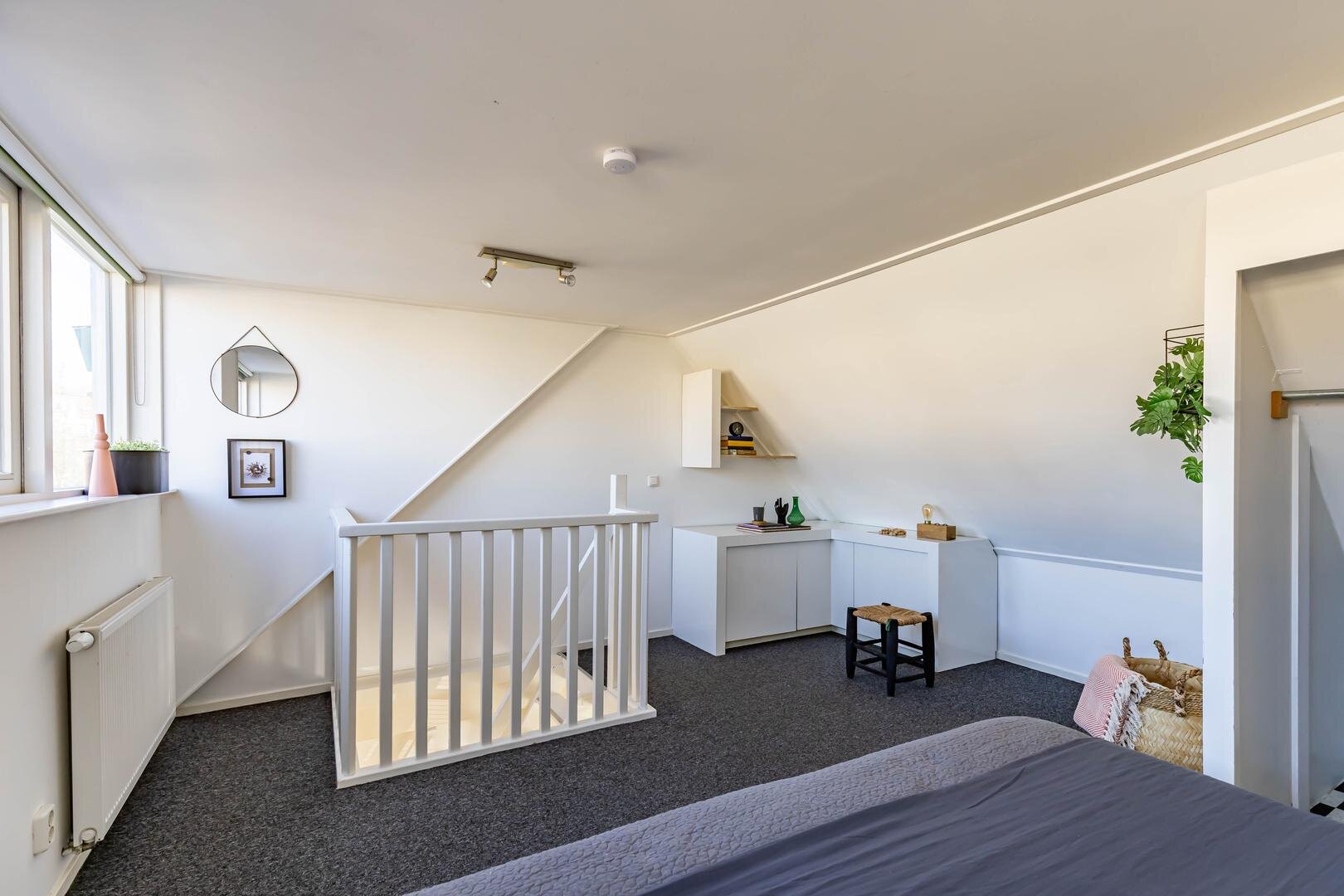 Een open slaapruimte van ca. 16 m² die dankzij de dakkapel extra ruim en licht aanvoelt. De vaste schuifkast biedt volop praktische bergruimte.De achtertuin ligt gunstig op het noordwesten en biedt dankzij de lage bebouwing rondom verrassend veel zon – van ’s ochtends tot in de avond. De tuin is onderhoudsvriendelijk aangelegd en ca. 51 m² groot. Achterin staat een houten berging (ca. 4 m²), ideaal voor tuinmeubilair en gereedschap.* In 2025 is het gehele exterieur, inclusief dakkapel, professioneel geschilderd