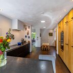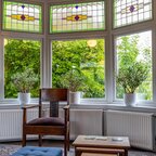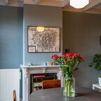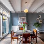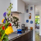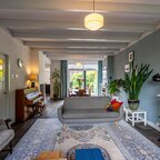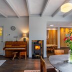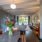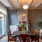 Aan het doorgaande vaarwater van het Damsterdiep ligt dit ruime, vrijstaande woonhuis uit 1928 met vrijstaande houten garage en tuin op het zuiden. Dit huis is wel heel bijzonder, met het karakter van eind jaren '20 en het hedendaagse comfort dankzij de verfijnde modernisering van de afgelopen jaren én de inzet van diverse duurzame maatregelen. Een fijn huis, een warm en liefdevol huis, dat zie je aan alles. Er is met smaak en gevoel voor stijl een nog betere versie gemaakt van het origineel. De authentieke elementen zijn daarbij bewaard gebleven, zoals glas-in-lood ramen, originele schouwen en de hoge balkenplafonds. Kom mee en laat u verrassen.De ligging is bovendien geweldig, aan een autoluw wijkje met zicht over het water en de voorzieningen van de stad Groningen binnen fietsbereik. Ook natuurgebied Kardinge en Noorddijk met haar prachtige molen liggen op loopafstand.Indeling: Entree/ruime hal met grindvloer, waar zich het toilet en de trapopgang naar boven bevinden. De woonkamer, die we vervolgens binnenstappen, brengt je met haar stijlvolle balken en houten vloer zo terug in de tijd – zeker wanneer je een blik werpt door de fraaie glas-in-loodramen van de erker. Tegelijkertijd voel je het comfort van de woning en zie je dat hier kosten noch moeite zijn gespaard om het geheel naar een hoger niveau te tillen. Dat gevoel wordt alleen maar sterker wanneer je richting de eethoek met grote schuifpui kijkt.Daar staat een fijne houtkachel, werkend op de cv, voor die gezellige koudere avonden – maar ook zeker om op energie te besparen, dankzij de koppeling met de verwarming. Vanuit de eethoek kun je naar de tuin, maar je komt hier ook bij de werkelijk prachtige open keuken (uit 2019), met een hoge houten kastenwand van licht eiken aan de ene zijde en een werk- en spoelwand in een donkere tint aan de andere zijde.Een echte eyecatcher van hoge kwaliteit, met een betonnen werkblad en voorzien van alle denkbare apparatuur: inductiekookplaat met afzuigkap, grote vriezer en koelkast, oven, combi-magnetron, Quooker (kokendwaterkraan) + Cube (gefilterd, gekoeld en bruisend water) en vaatwasser. Dankzij de vele raampartijen – ook in de hoek – is er volop lichtinval. Er is optimale bergruimte in de vele kasten en lades, maar ook in de provisiekelder die vanaf hier toegankelijk is. Aan het uiteinde van de keuken kun je plaatsnemen op een van de barkrukken, meekijken in de keuken of genieten van het zicht op de tuin.Eerste verdieping: Overloop, slaapkamer aan de voorzijde van ca. 14 m² met zicht op het water en een ruime kastenwand. De badkamer is ca. 5 m² – eenvoudig, maar functioneel – met een douchecabine, tweede toilet, vaste wastafel, designradiator en zelfs een ligbad. De twee andere slaapkamers zijn ca. 8 m² en 7 m² groot en liggen aan de achterzijde van de woning. De schuine kap geeft de kamers een knusse uitstraling, en de parketvloer op deze verdieping onderstreept dat.Tweede verdieping: Overloop met volop lichtinval dankzij de tripple glas dakramen. Op deze verdieping is nog een slaapkamer van ca. 7 m² bereikbaar, met een eigen douche, wastafel en toilet (sani-broyeur). Een efficiënte en lichtovergoten ruimte. Er ligt een mooie houten vloer, en het geheel is keurig afgewerkt. Aan de andere zijde is nog een fijne werkhoek bereikbaar, vanwaar je opnieuw een mooi uitzicht over het water hebt. Deze verdieping is in 2022 volledig vernieuwd en geïsoleerd. De ramen zijn voorzien van elektrisch bedienbare screens, net als de ramen aan de zuidzijde op de etages hier beneden.Achter het huis ligt een ruime, onderhoudsvriendelijke achtertuin van ca. 128 m², waar zon gegarandeerd is zodra hij schijnt – want de tuin ligt op het zuiden. Hier kun je dus echt genieten van het buitenleven, zonder al te veel te hoeven tuinieren. De houten garage is vrijstaand en bereikbaar via de mandelige weg.* met een heerlijk uitzicht over het water, zo richting het weiland met stadsmarkering.