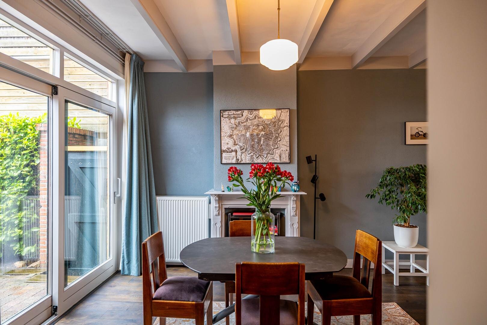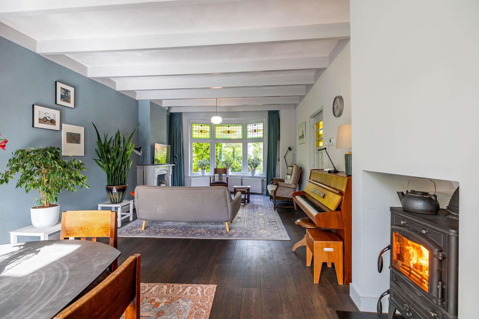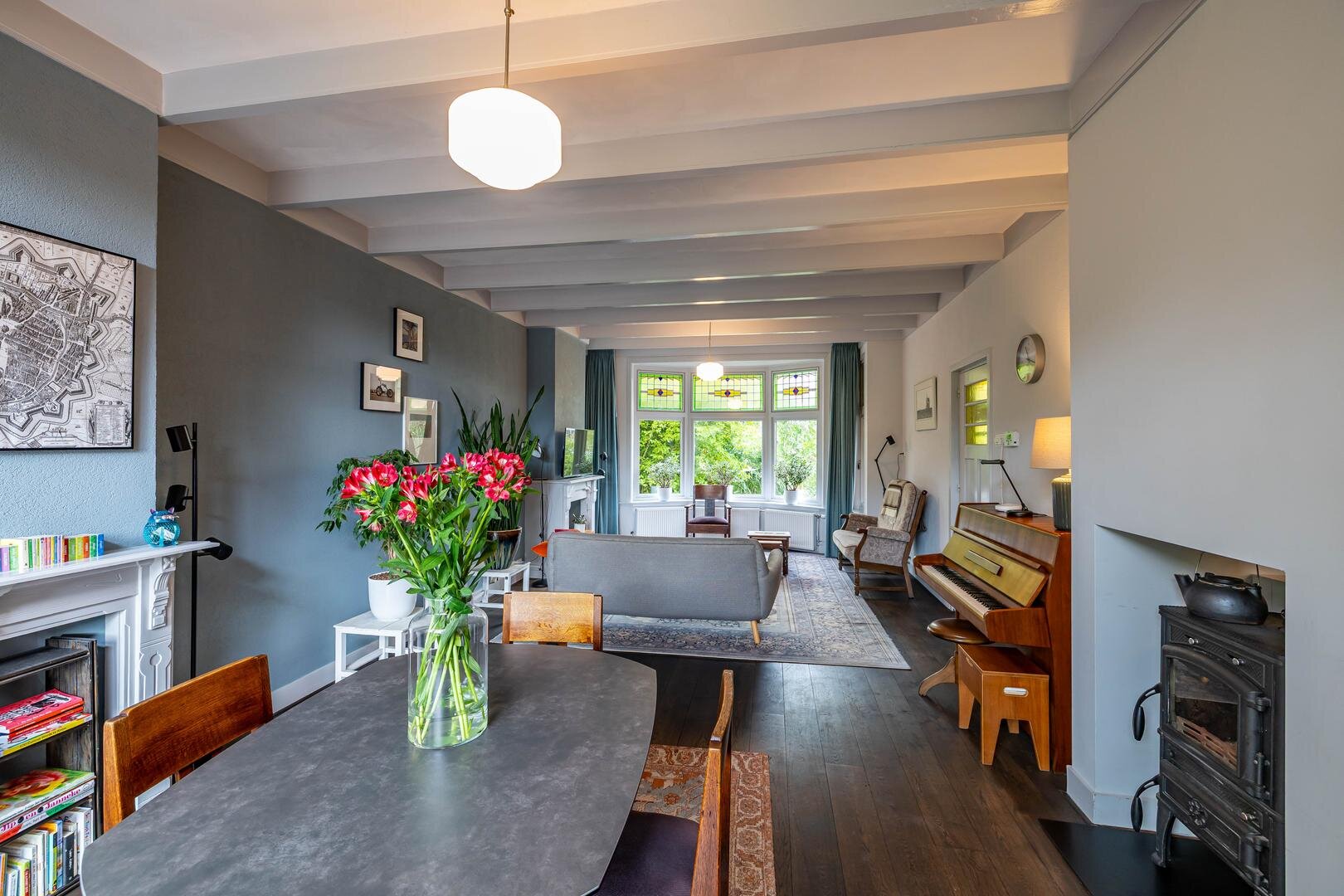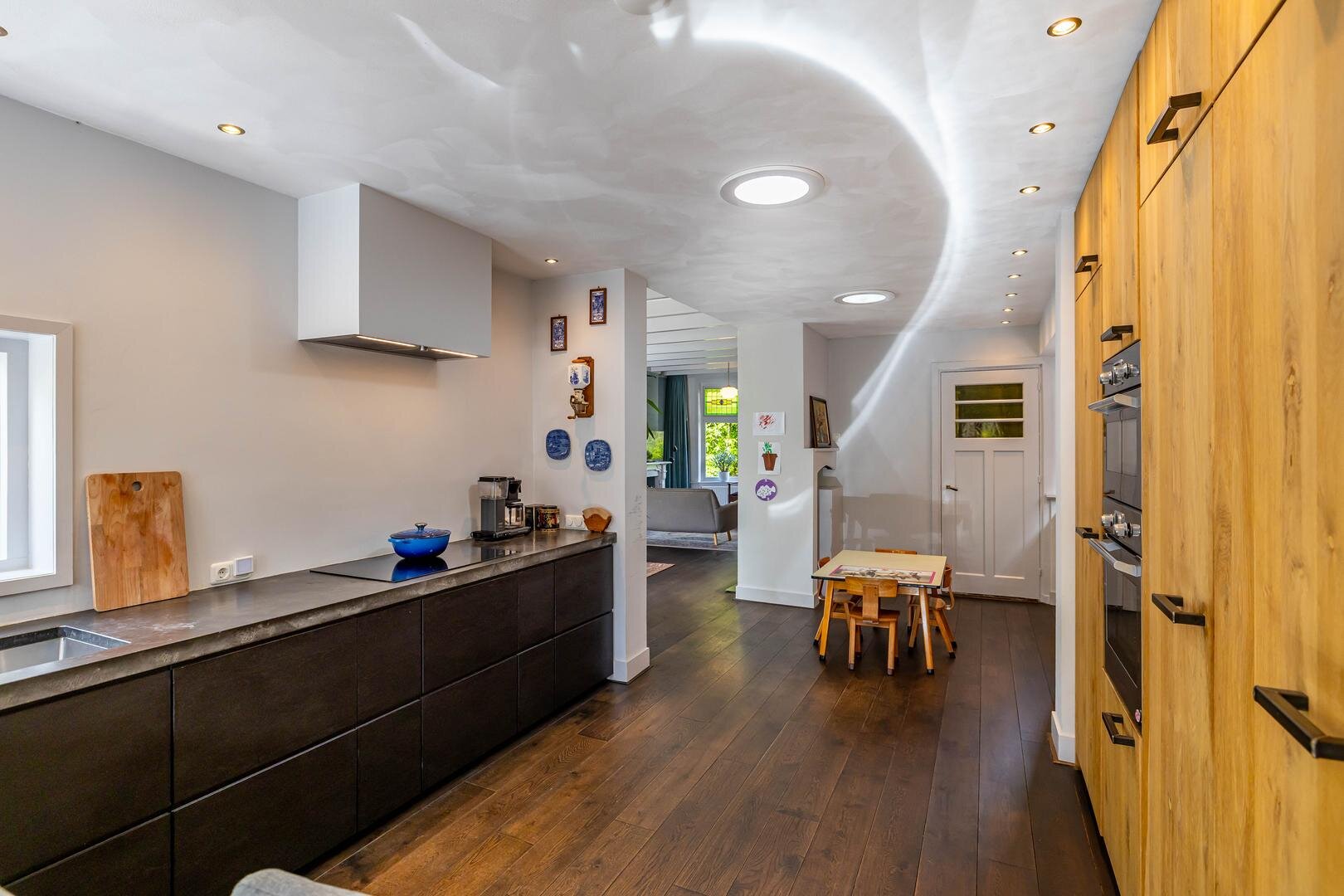 Aan het doorgaande vaarwater van het Damsterdiep ligt dit ruime, vrijstaande woonhuis uit 1928 met vrijstaande houten garage en tuin op het zuiden. Dit huis is wel heel bijzonder, met het karakter van eind jaren '20 en het hedendaagse comfort dankzij de verfijnde modernisering van de afgelopen jaren én de inzet van diverse duurzame maatregelen. Een fijn huis, een warm en liefdevol huis, dat zie je aan alles. Er is met smaak en gevoel voor stijl een nog betere versie gemaakt van het origineel. De authentieke elementen zijn daarbij bewaard gebleven, zoals glas-in-lood ramen, originele schouwen en de hoge balkenplafonds. Kom mee en laat u verrassen.De ligging is bovendien geweldig, aan een autoluw wijkje met zicht over het water en de voorzieningen van de stad Groningen binnen fietsbereik. Ook natuurgebied Kardinge en Noorddijk met haar prachtige molen liggen op loopafstand.Indeling: Entree/ruime hal met grindvloer, waar zich het toilet en de trapopgang naar boven bevinden. De woonkamer, die we vervolgens binnenstappen, brengt je met haar stijlvolle balken en houten vloer zo terug in de tijd – zeker wanneer je een blik werpt door de fraaie glas-in-loodramen van de erker. Tegelijkertijd voel je het comfort van de woning en zie je dat hier kosten noch moeite zijn gespaard om het geheel naar een hoger niveau te tillen. Dat gevoel wordt alleen maar sterker wanneer je richting de eethoek met grote schuifpui kijkt.Daar staat een fijne houtkachel, werkend op de cv, voor die gezellige koudere avonden – maar ook zeker om op energie te besparen, dankzij de koppeling met de verwarming. Vanuit de eethoek kun je naar de tuin, maar je komt hier ook bij de werkelijk prachtige open keuken (uit 2019), met een hoge houten kastenwand van licht eiken aan de ene zijde en een werk- en spoelwand in een donkere tint aan de andere zijde.Een echte eyecatcher van hoge kwaliteit, met een betonnen werkblad en voorzien van alle denkbare apparatuur: inductiekookplaat met afzuigkap, grote vriezer en koelkast, oven, combi-magnetron, Quooker (kokendwaterkraan) + Cube (gefilterd, gekoeld en bruisend water) en vaatwasser. Dankzij de vele raampartijen – ook in de hoek – is er volop lichtinval. Er is optimale bergruimte in de vele kasten en lades, maar ook in de provisiekelder die vanaf hier toegankelijk is. Aan het uiteinde van de keuken kun je plaatsnemen op een van de barkrukken, meekijken in de keuken of genieten van het zicht op de tuin.Eerste verdieping: Overloop, slaapkamer aan de voorzijde van ca. 14 m² met zicht op het water en een ruime kastenwand. De badkamer is ca. 5 m² – eenvoudig, maar functioneel – met een douchecabine, tweede toilet, vaste wastafel, designradiator en zelfs een ligbad. De twee andere slaapkamers zijn ca. 8 m² en 7 m² groot en liggen aan de achterzijde van de woning. De schuine kap geeft de kamers een knusse uitstraling, en de parketvloer op deze verdieping onderstreept dat.Tweede verdieping: Overloop met volop lichtinval dankzij de tripple glas dakramen. Op deze verdieping is nog een slaapkamer van ca. 7 m² bereikbaar, met een eigen douche, wastafel en toilet (sani-broyeur). Een efficiënte en lichtovergoten ruimte. Er ligt een mooie houten vloer, en het geheel is keurig afgewerkt. Aan de andere zijde is nog een fijne werkhoek bereikbaar, vanwaar je opnieuw een mooi uitzicht over het water hebt. Deze verdieping is in 2022 volledig vernieuwd en geïsoleerd. De ramen zijn voorzien van elektrisch bedienbare screens, net als de ramen aan de zuidzijde op de etages hier beneden.Achter het huis ligt een ruime, onderhoudsvriendelijke achtertuin van ca. 128 m², waar zon gegarandeerd is zodra hij schijnt – want de tuin ligt op het zuiden. Hier kun je dus echt genieten van het buitenleven, zonder al te veel te hoeven tuinieren. De houten garage is vrijstaand en bereikbaar via de mandelige weg.* met een heerlijk uitzicht over het water, zo richting het weiland met stadsmarkering.